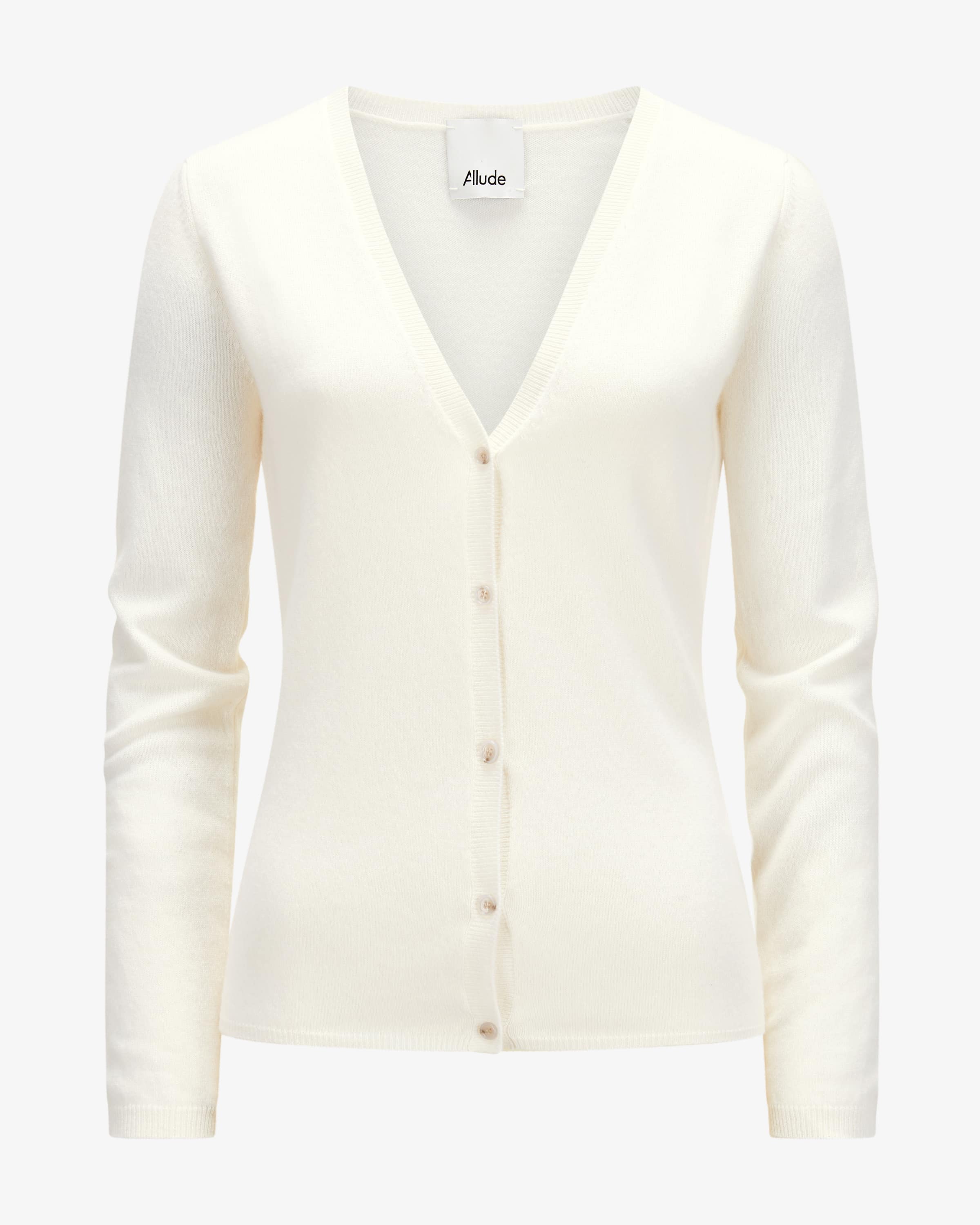 Cardigan for women from Allude in off-white. The Munich-based company Allude stands for fashion that radiates self-confidence and timeless individuality. Made from high-quality cashmere wool, this style impresses with its soft and light feel light feel, while the fine knit design creates a high-quality essential. creates.