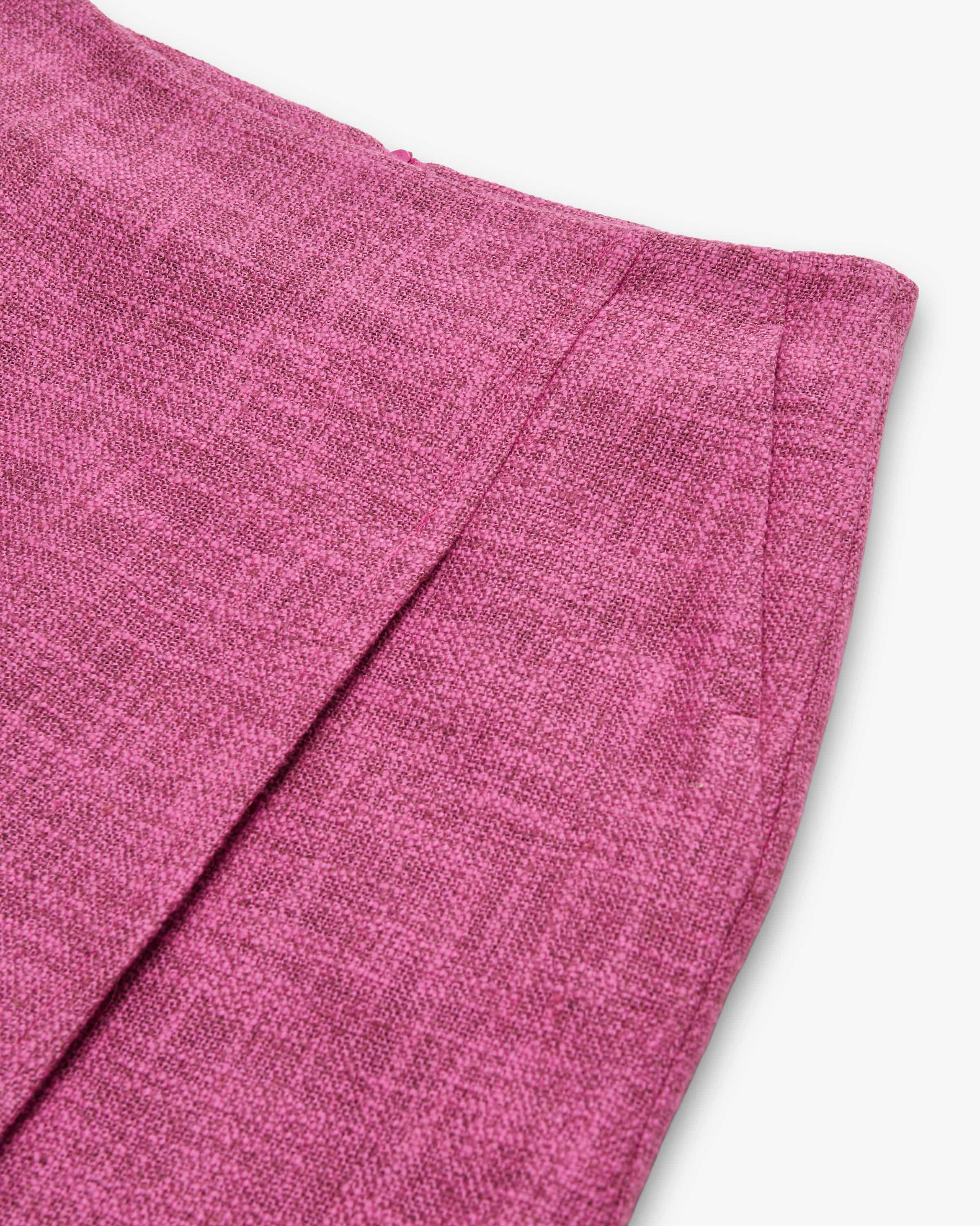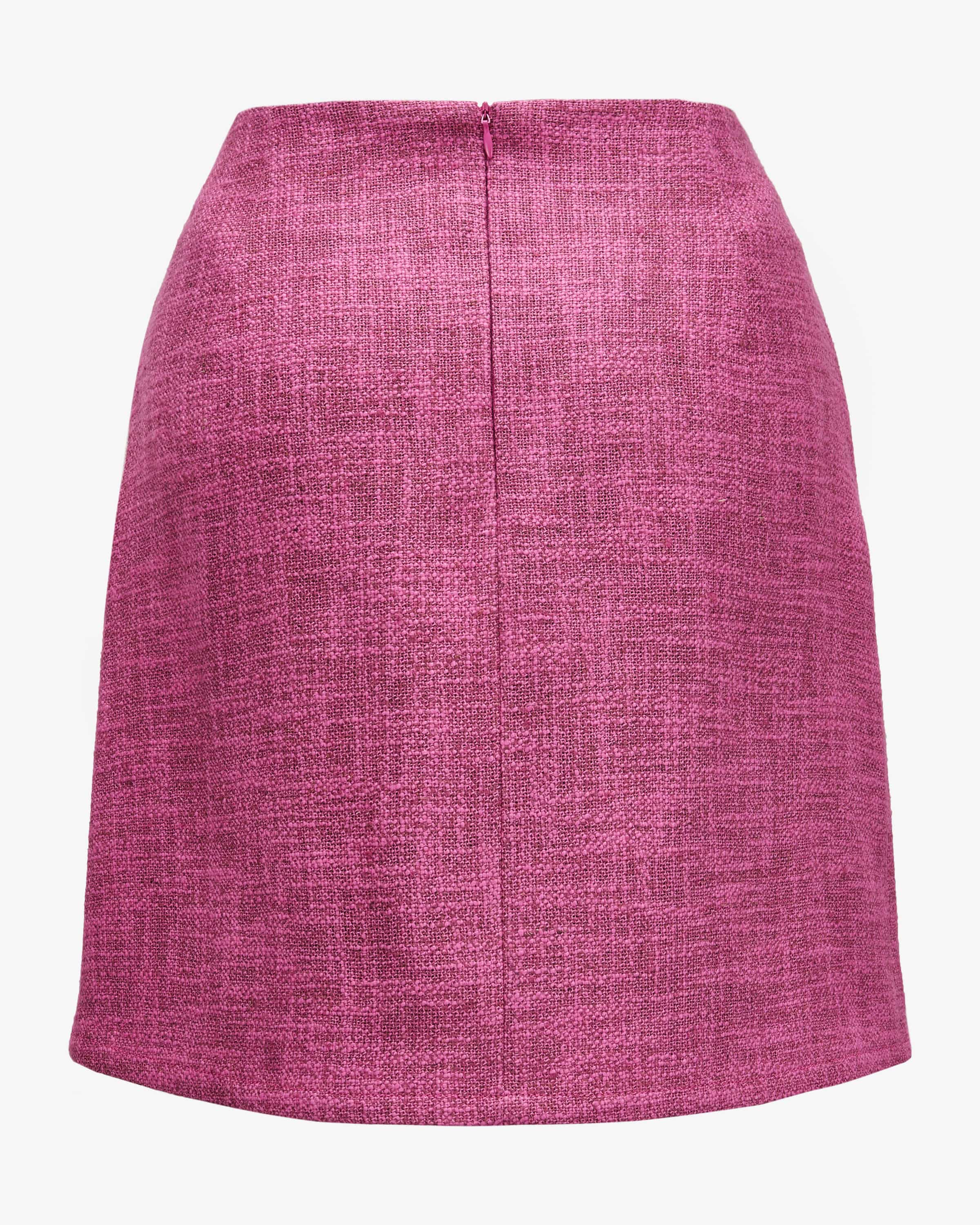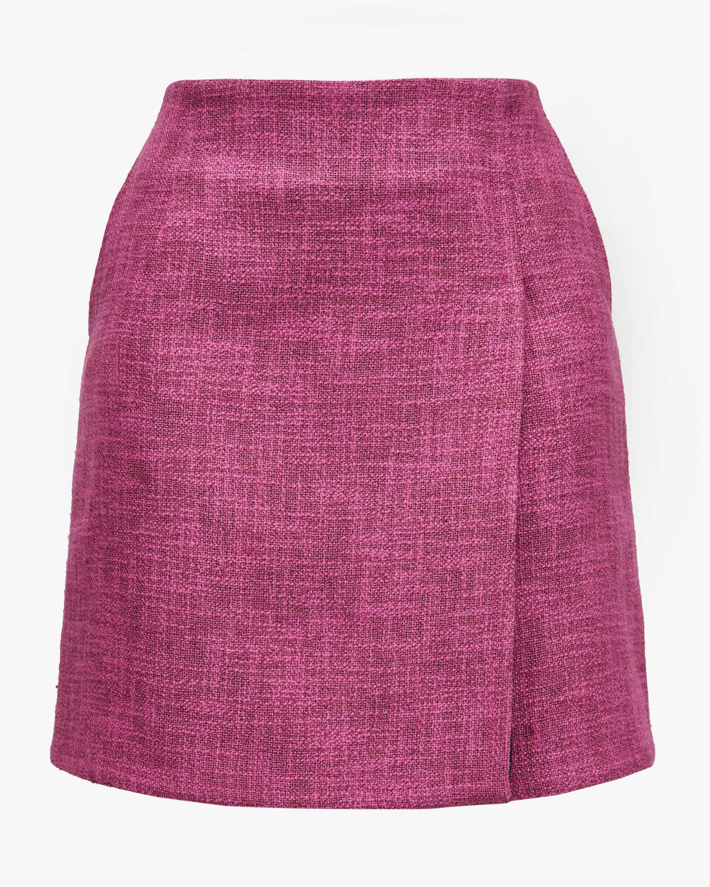 Mini skirt for women from Odeeh in pink. The model made from a high-quality hemp-cotton cotton blend becomes an elegant eye-catcher thanks to the structured tweed look and the wrap elegant eye-catcher. Together with the matching blazer jacket, you get a feminine feminine two-piece look with power character.