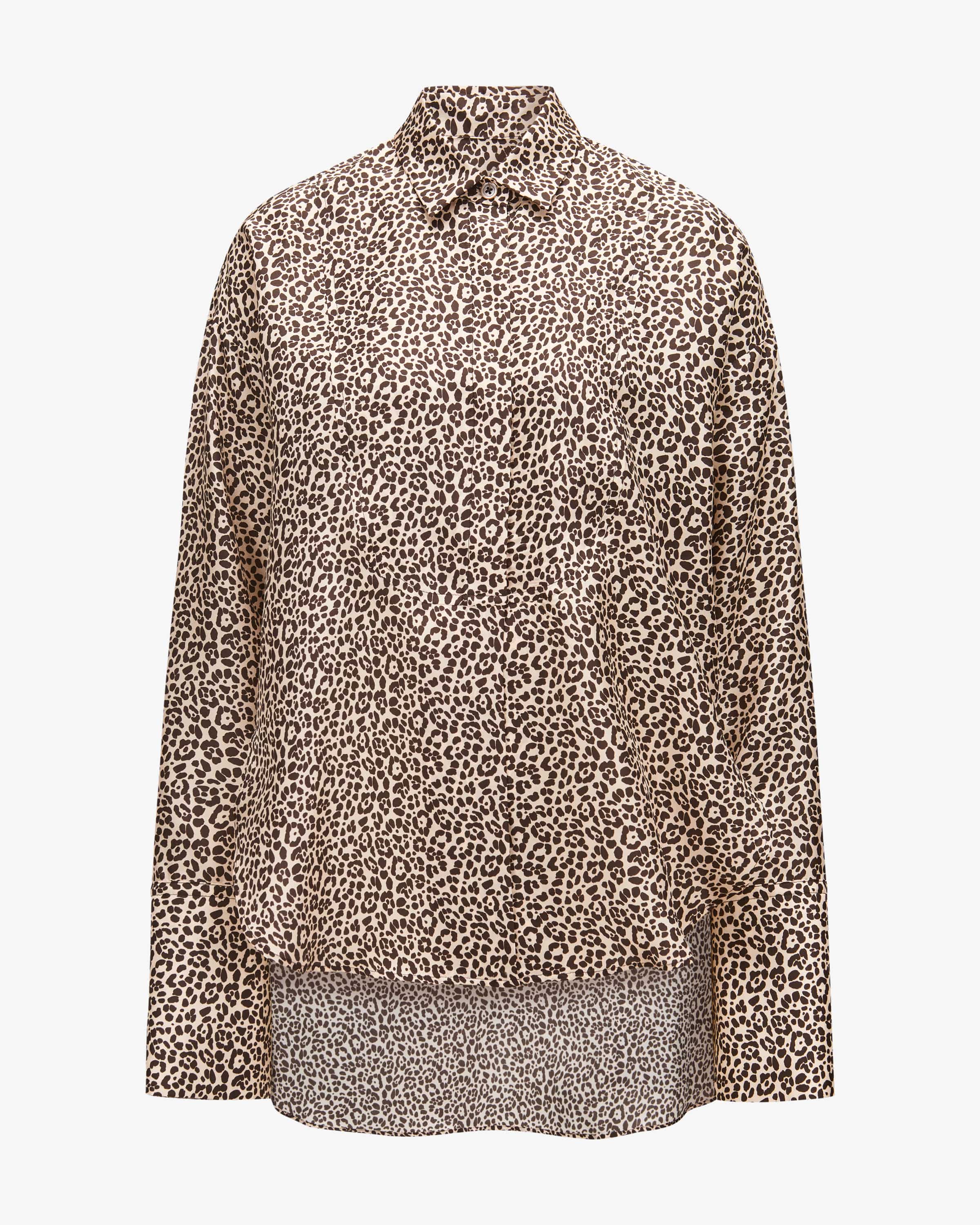 Silk blouse for women from Odeeh in sand and dark chocolate. The German designer duo behind Odeeh combines precision craftsmanship with expressive prints and prints and couture flair - made in Germany. This model in high-quality silk silk quality also impresses with its special cut, while the leopard design creates a modern create a modern companion that can be combined in a variety of ways.