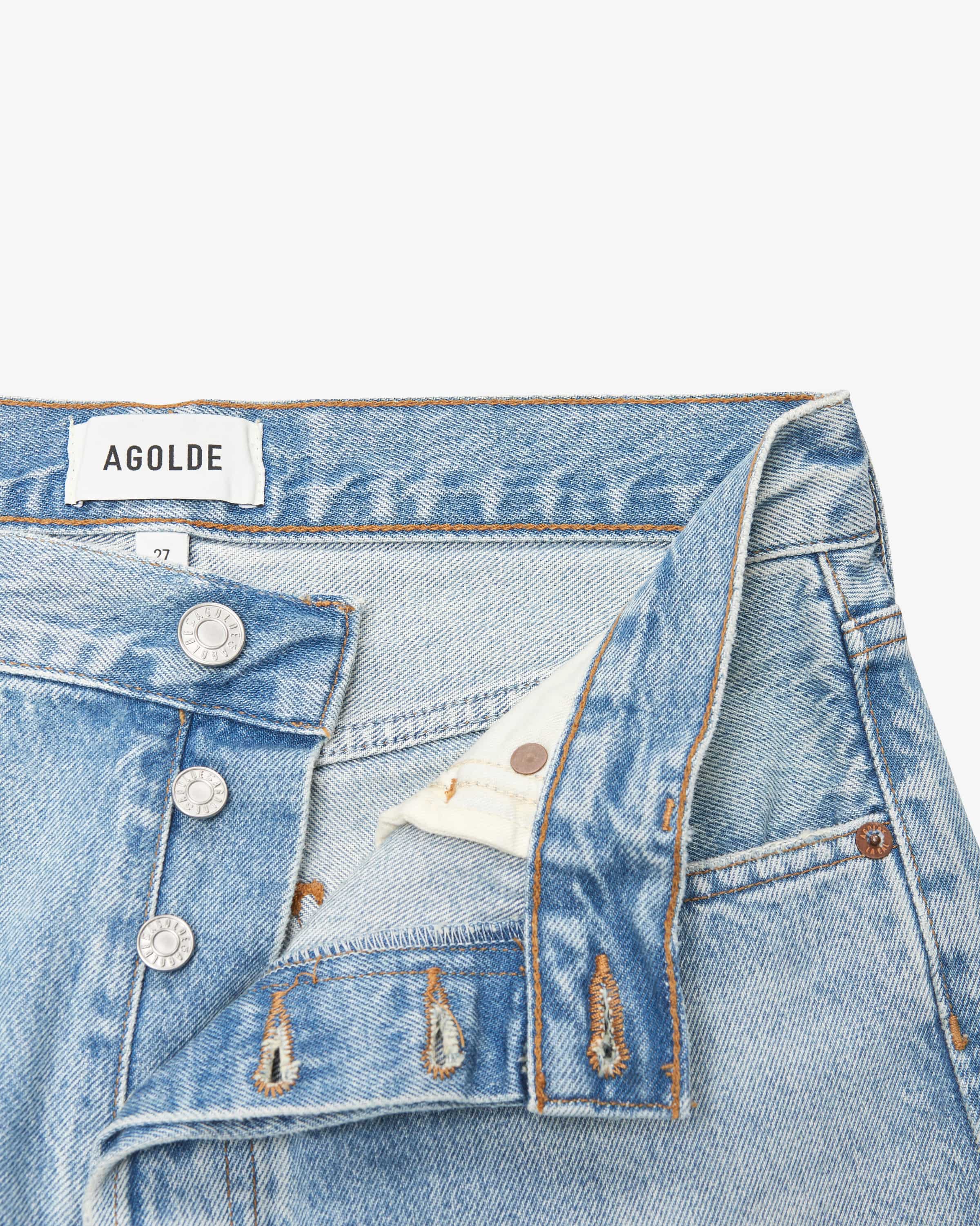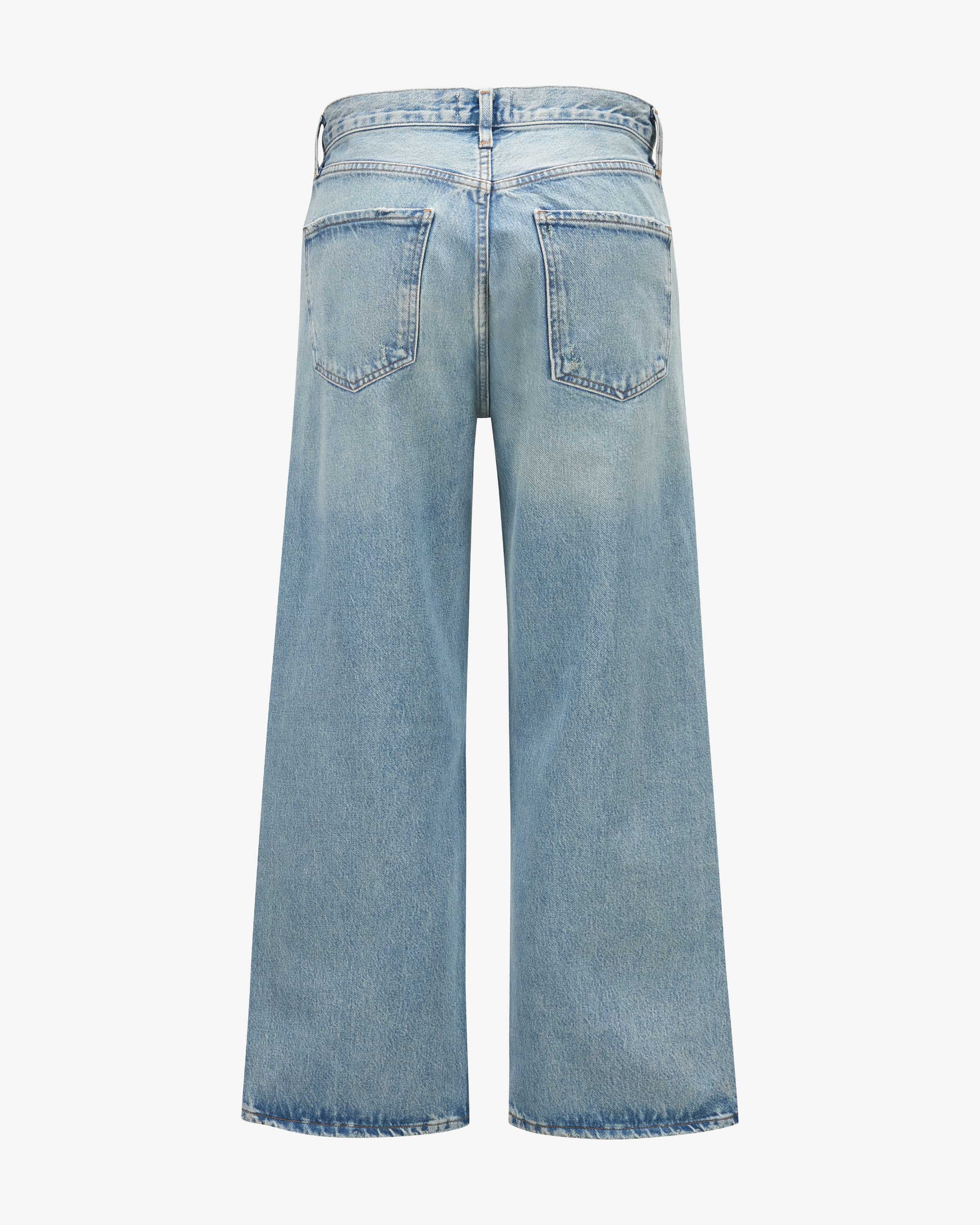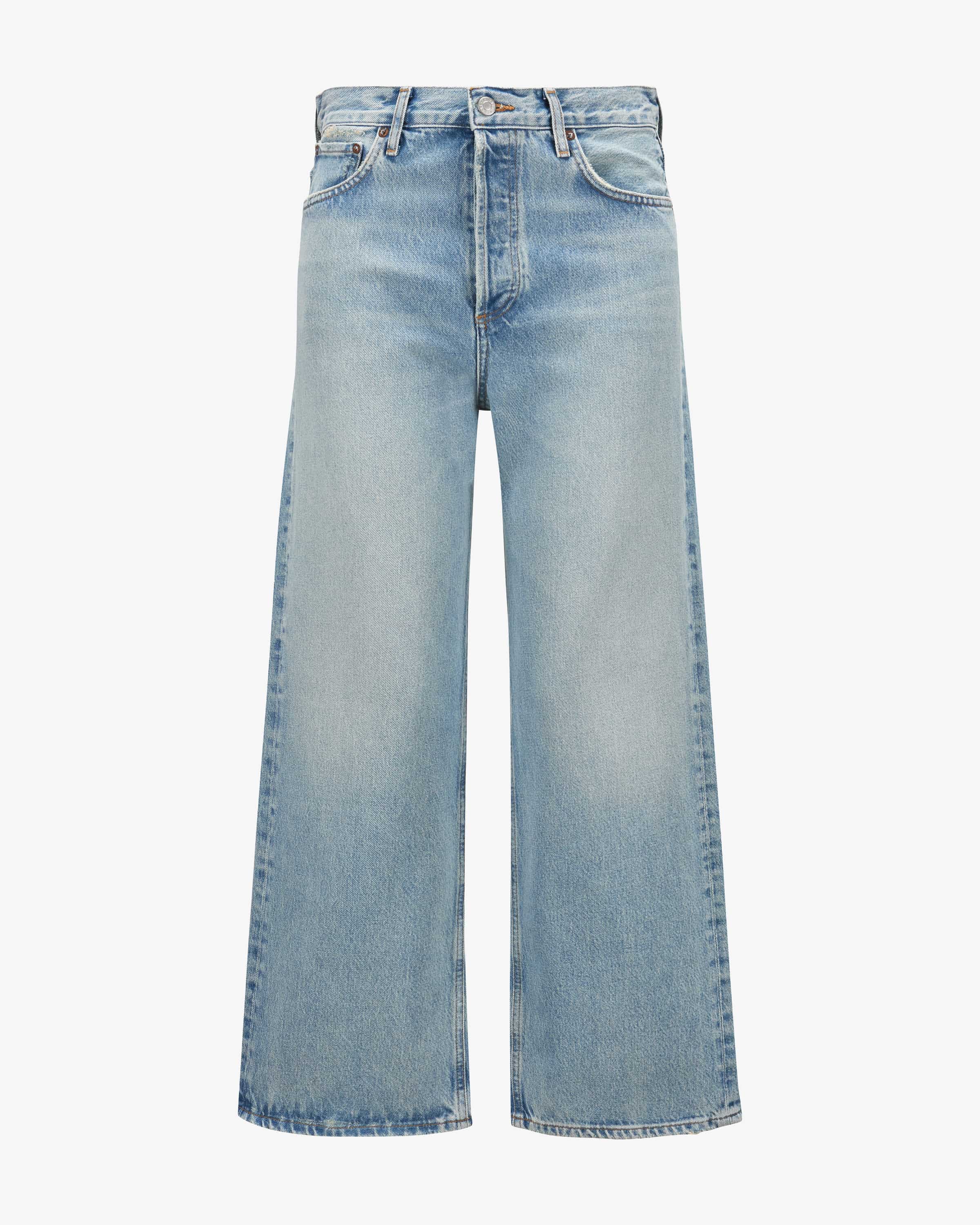 Ren High Rise Wide Leg 7/8 jeans for women by Agolde in light blue. Thanks to the high waistband and shortened leg length, the model is a fashionable favorite with a feminine fashionable favorite in a feminine silhouette, while modern used details make the create the perfect streetwear favorite for your closet.