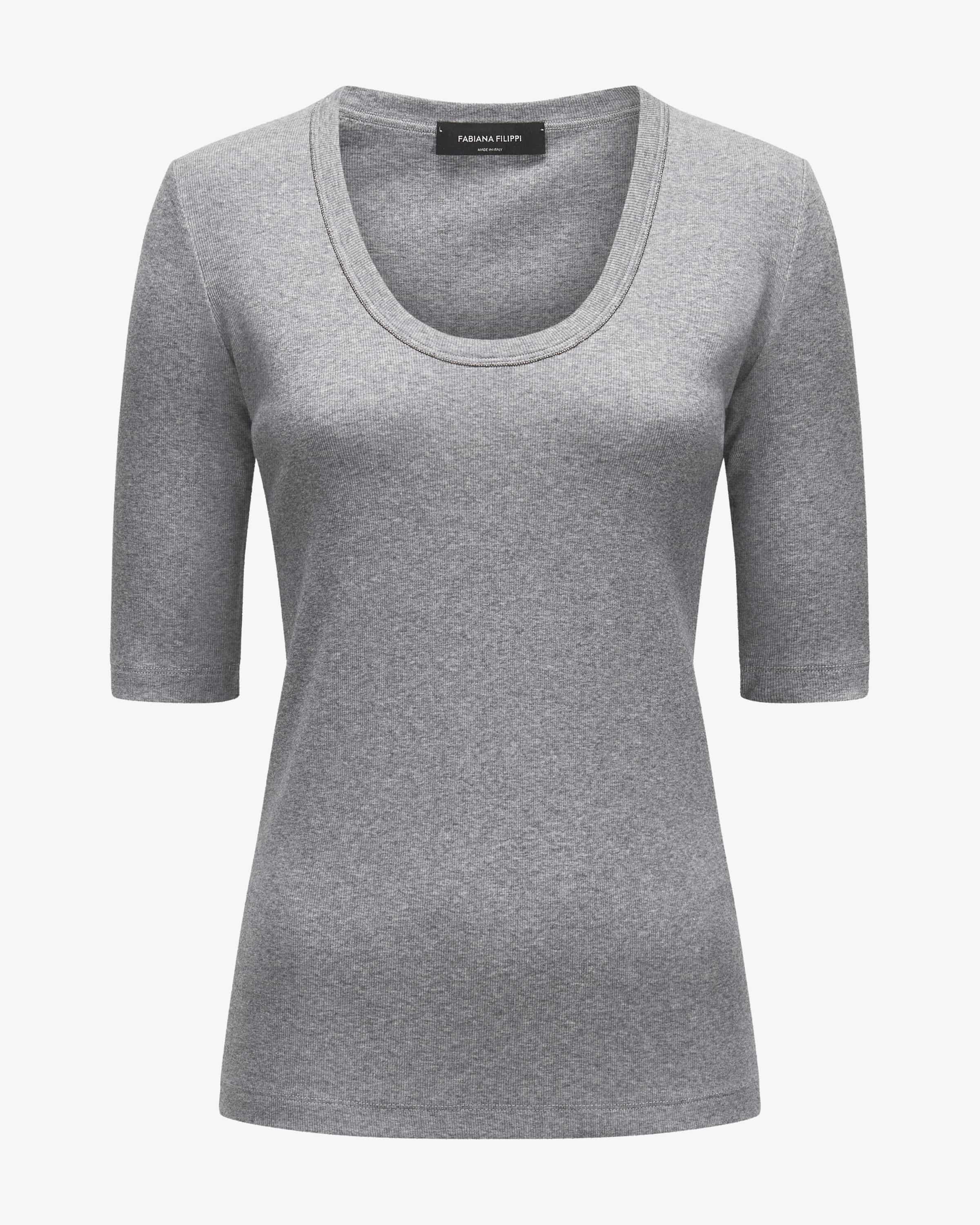T-shirt for women from Fabiana Filippi in gray. Made from stretchy cotton cotton fabrication impresses with its fashionable rib-knit quality and is skilfully skilfully finished off by the iridescent chain appliqué.