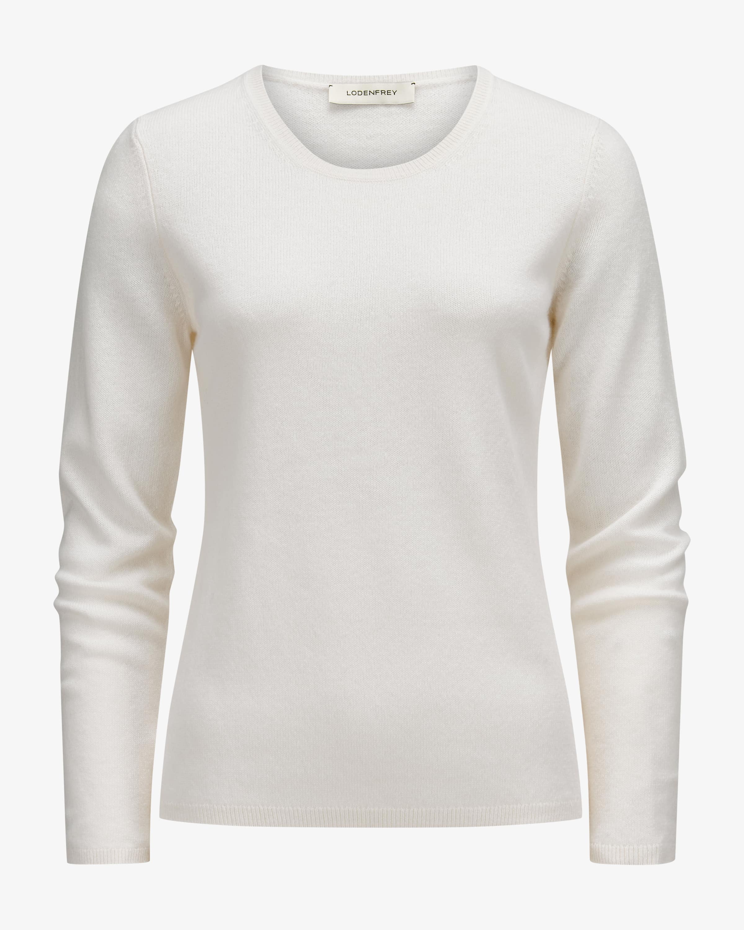 Cashmere sweater for women from LODENFREY in cream. The high-quality cashmere quality impresses with a particularly soft feel, while the simple design creates a design creates a versatile basic for modern country looks.