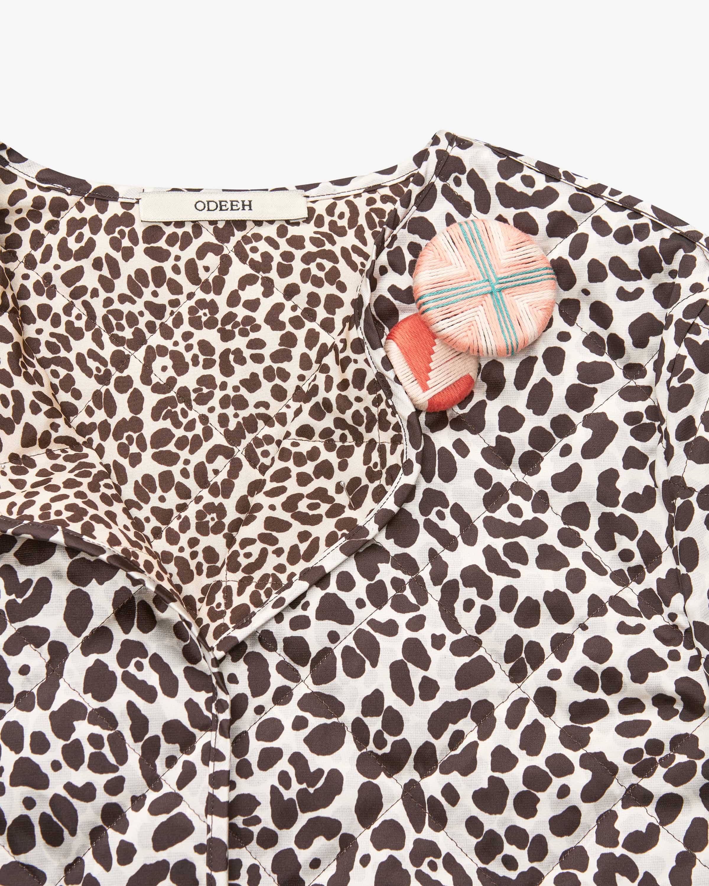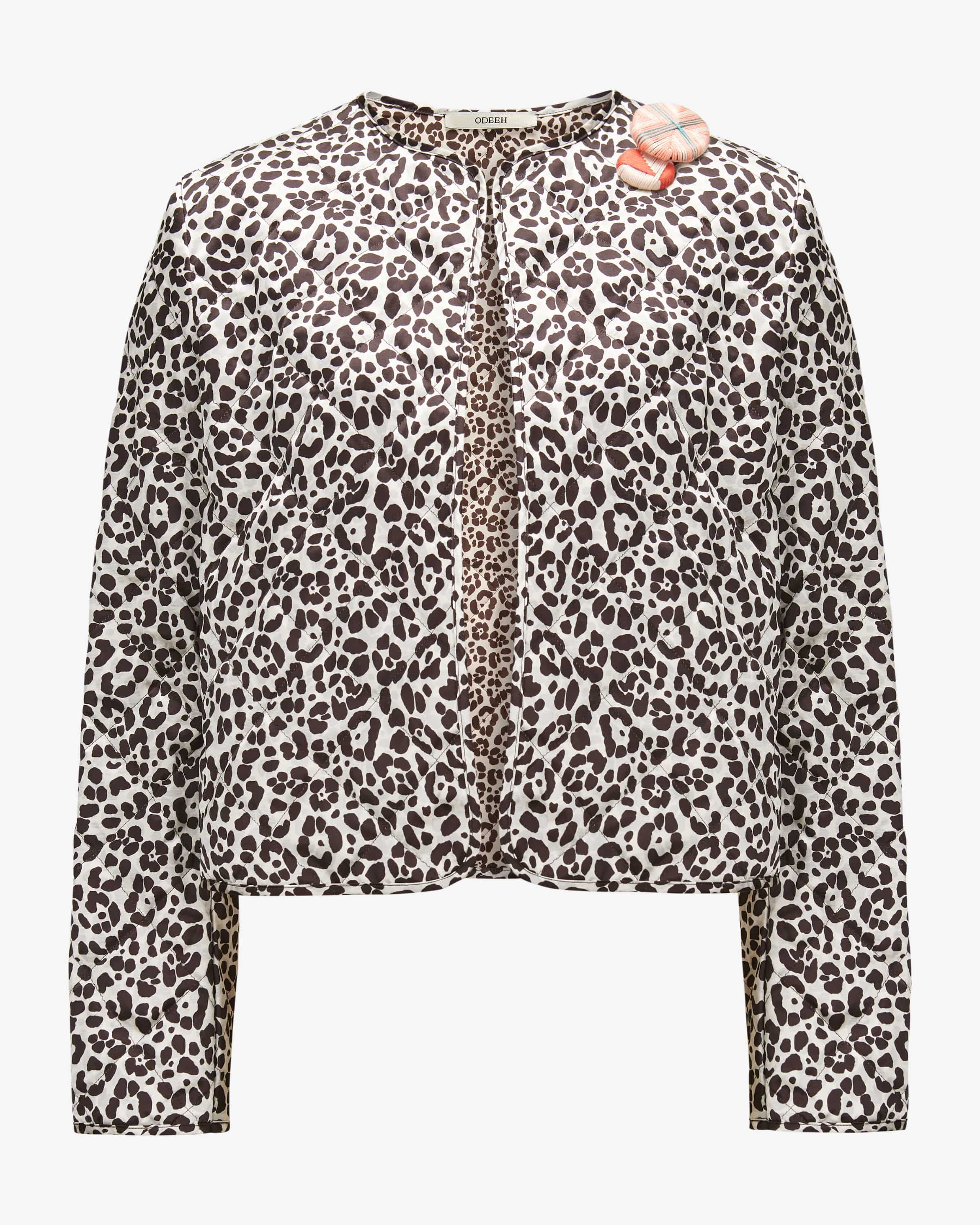 Silk quilted jacket for women from Odeeh in cream and dark chocolate. The German designer duo behind Odeeh combines precision craftsmanship with expressive prints and prints and couture flair - made in Germany. This model in high-quality silk silk quality also impresses with its cropped fit and clean cut, while the leo design and detachable pins create a modern companion that can be that can be combined in a variety of ways.