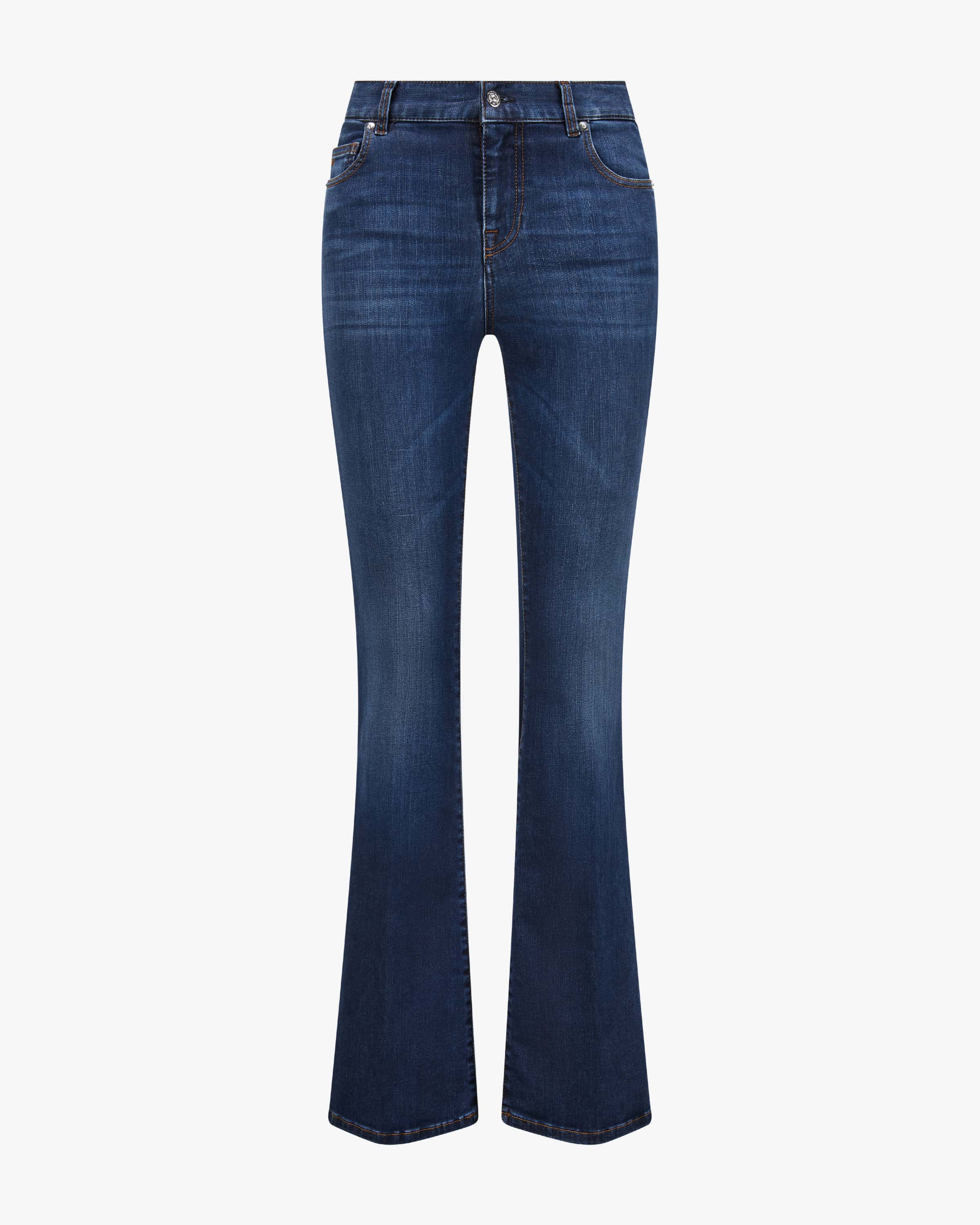Ameli jeans for women from nine:inthe:morning in dark blue. The model with flared leg model has a casual look with classic denim details and a subtle details and a subtle washed look, while the stretchy cotton fabrication ensures comfortable for a comfortable fit with a push-up effect.