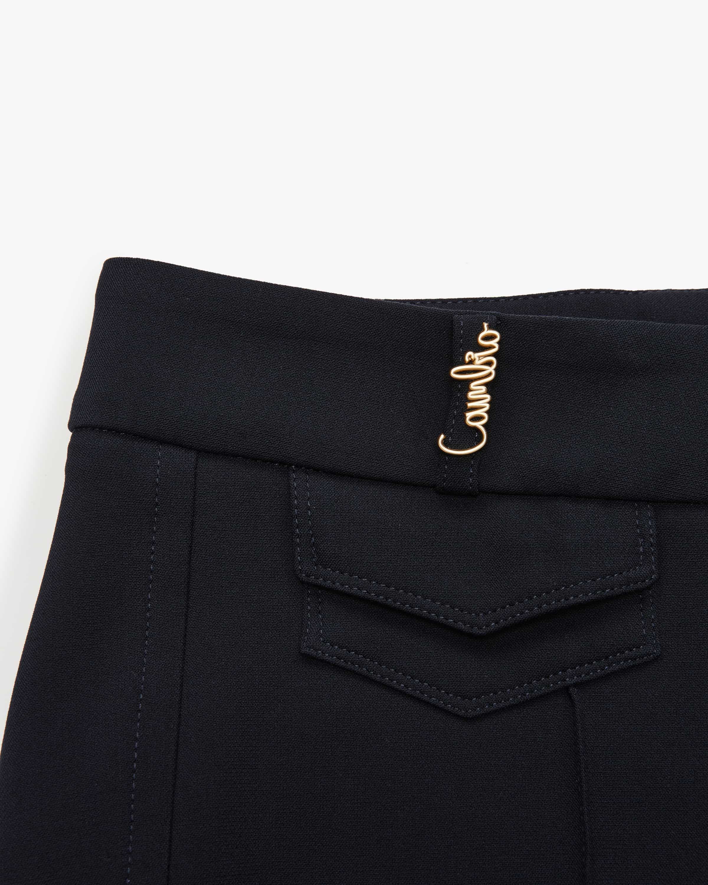 Fawn Flap Pocket Fashion Fit trousers for women from Cambio in navy. The premium label from Germany is known for its perfect fit, fashionable cuts and cuts and high quality. This model also stands out thanks to the flared leg and the stitched creases in a feminine, elegant look, while the small pockets small pockets and the gold-colored logo detail on the belt loop complete the look with a special touch. complete the look with a special touch.