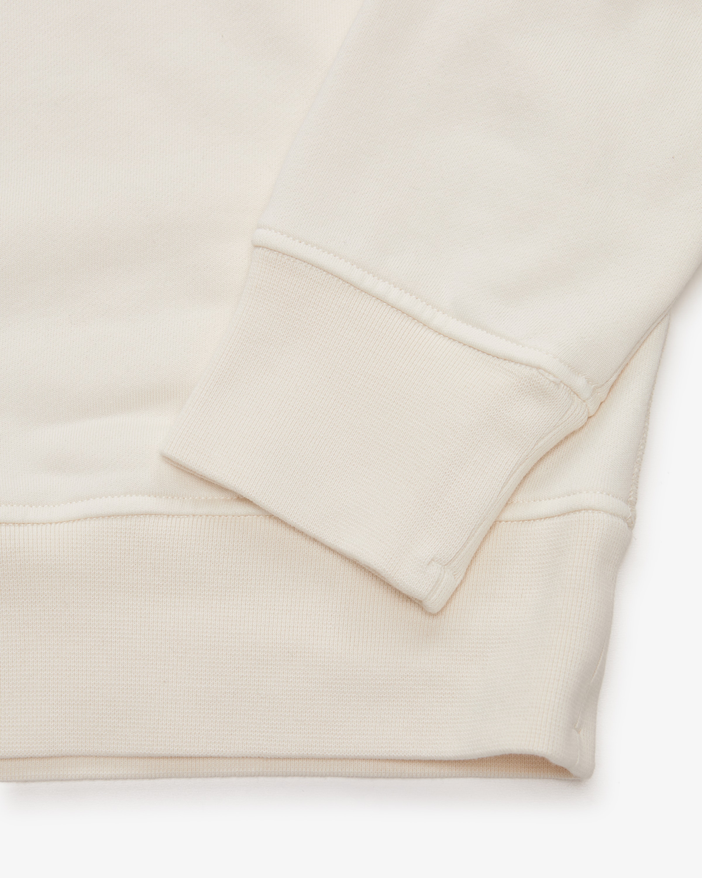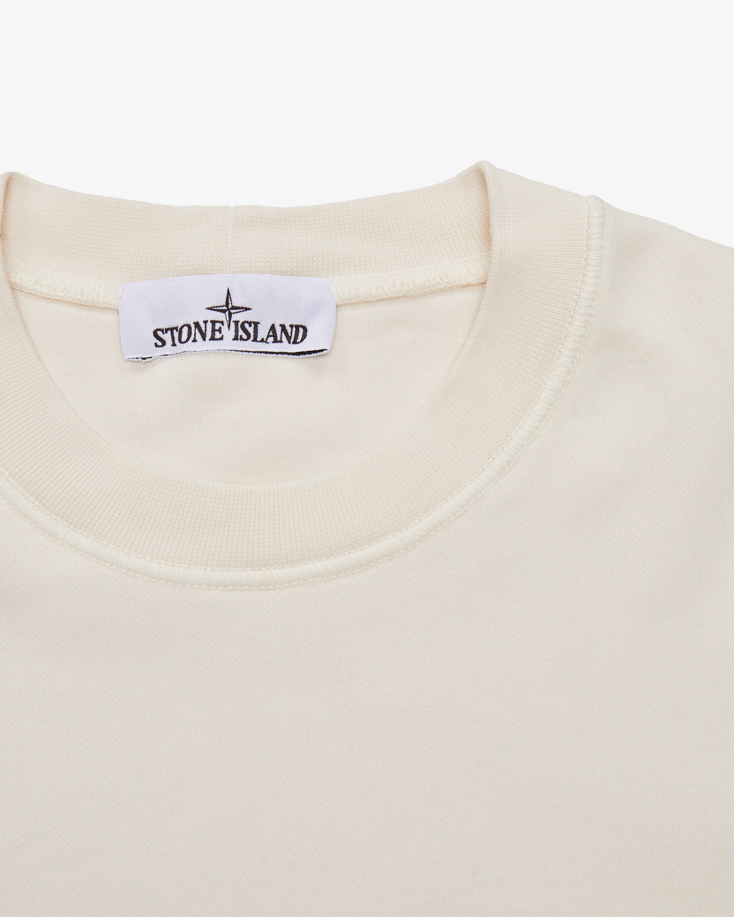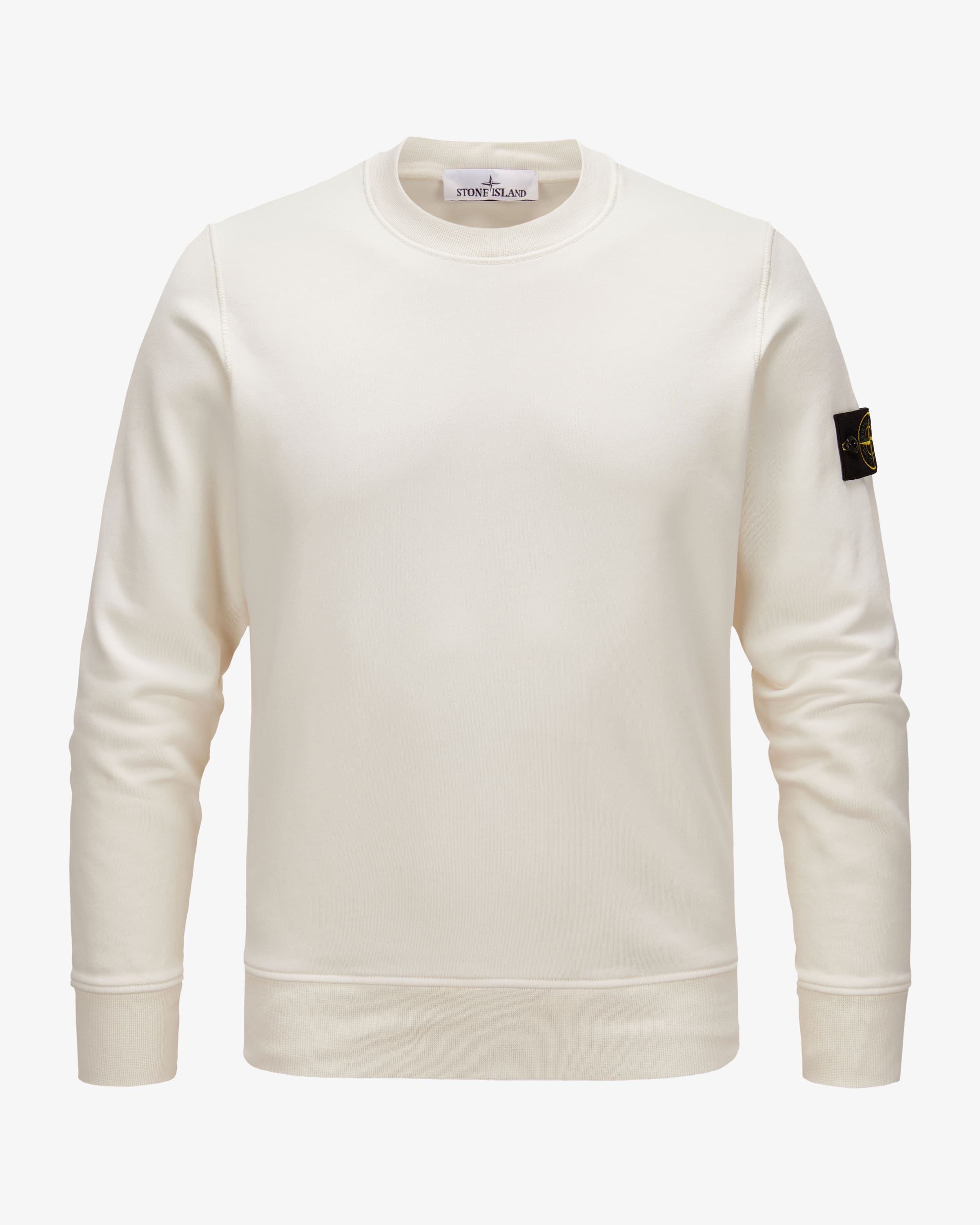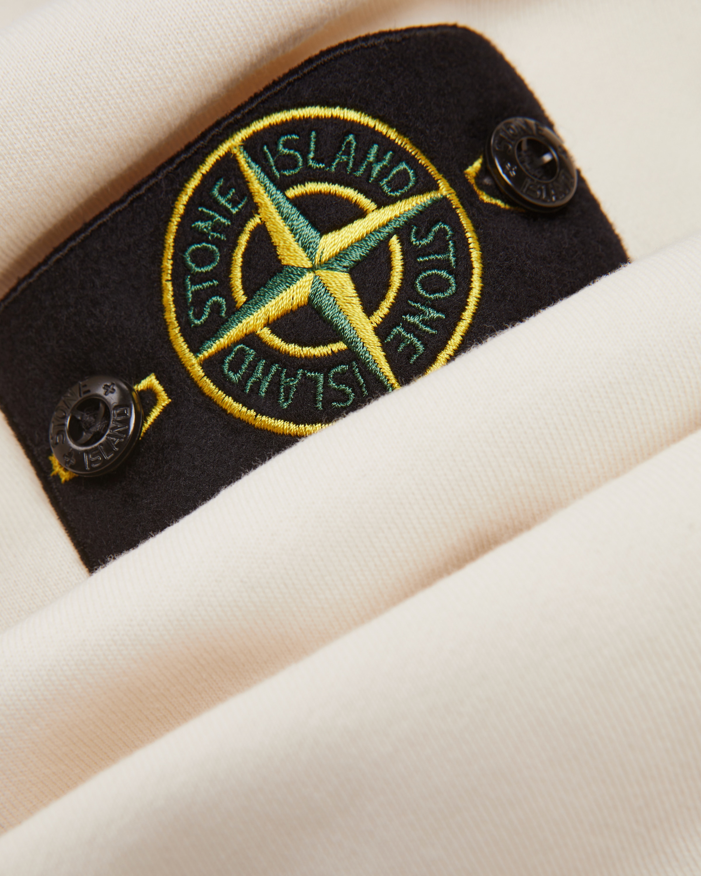 Sweatshirt for men from Stone Island in cream. Stone Island has stood for innovative for innovative material technologies and functional design with a clear, recognizable aesthetic, recognizable aesthetics. While the wide cut and classic sweat fabric made from organic cotton create a comfortable essential for casual looks. casual looks, the detachable logo badge lends a label-typical character. character.