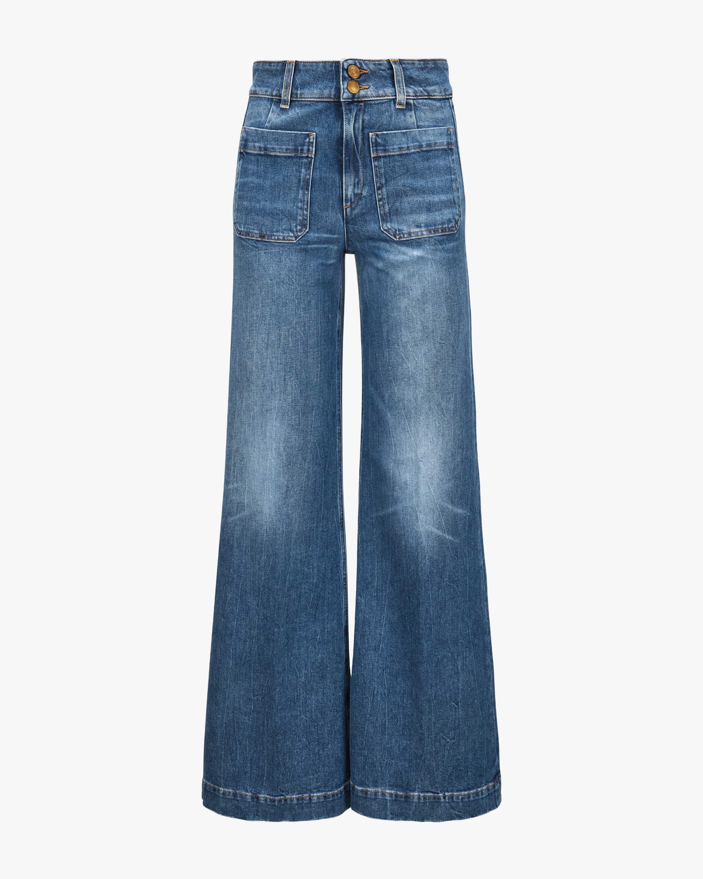 Jane jeans for women from Seafarer in navy. The model impresses thanks to the cotton fabric with comfortable wearing comfort, while the washed effect and flared fit effect and the flared fit round off the overall look in a fashionable way. At the same time, original dividing seams and patch pockets give a sporty touch. sporty touch.