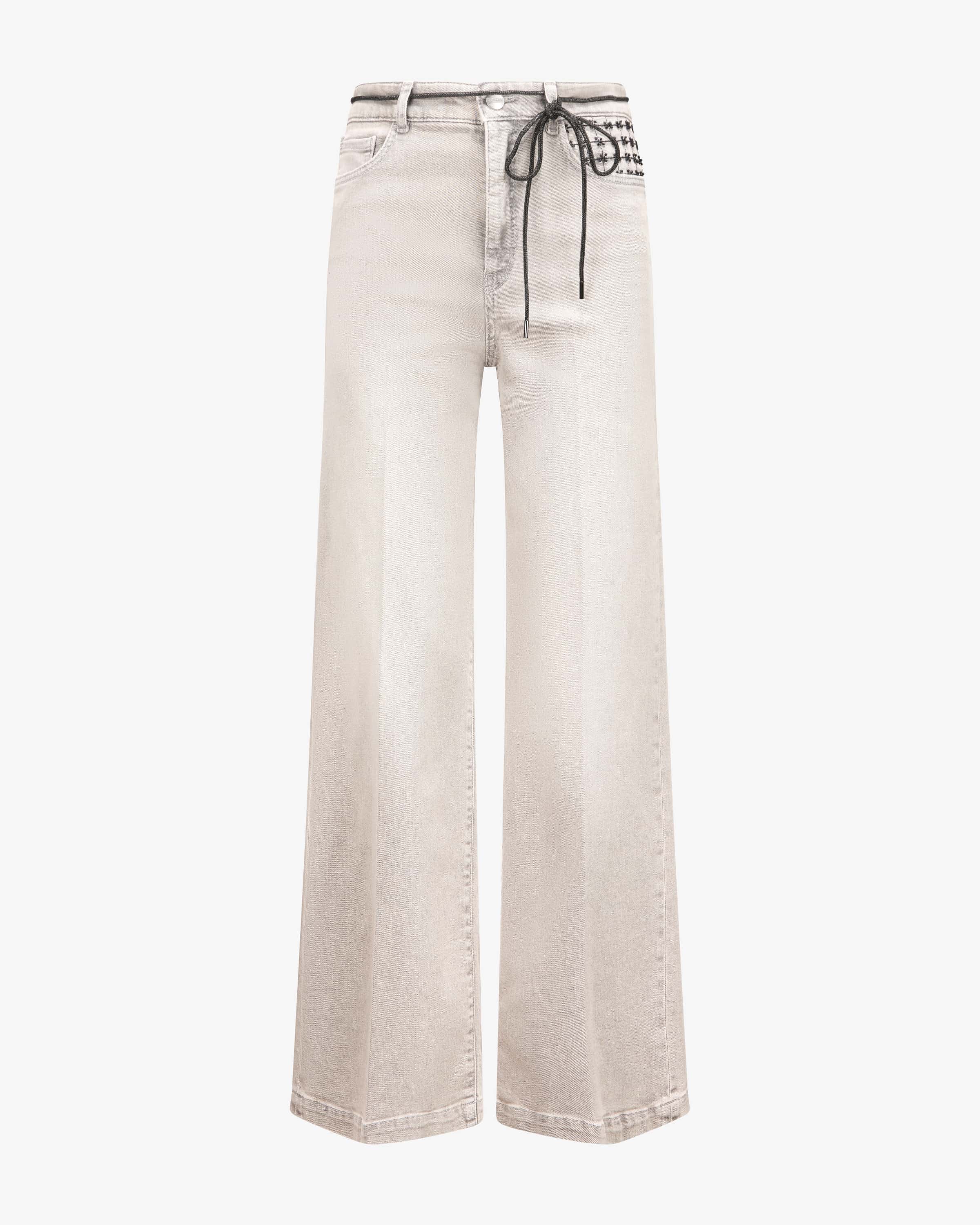 Warri wide fit high waist jeans for women from Marc Cain in light gray. The model in a wide fit scores highly thanks to its stretchy cotton blend, while the contrasting embroidery details add a feminine touch.