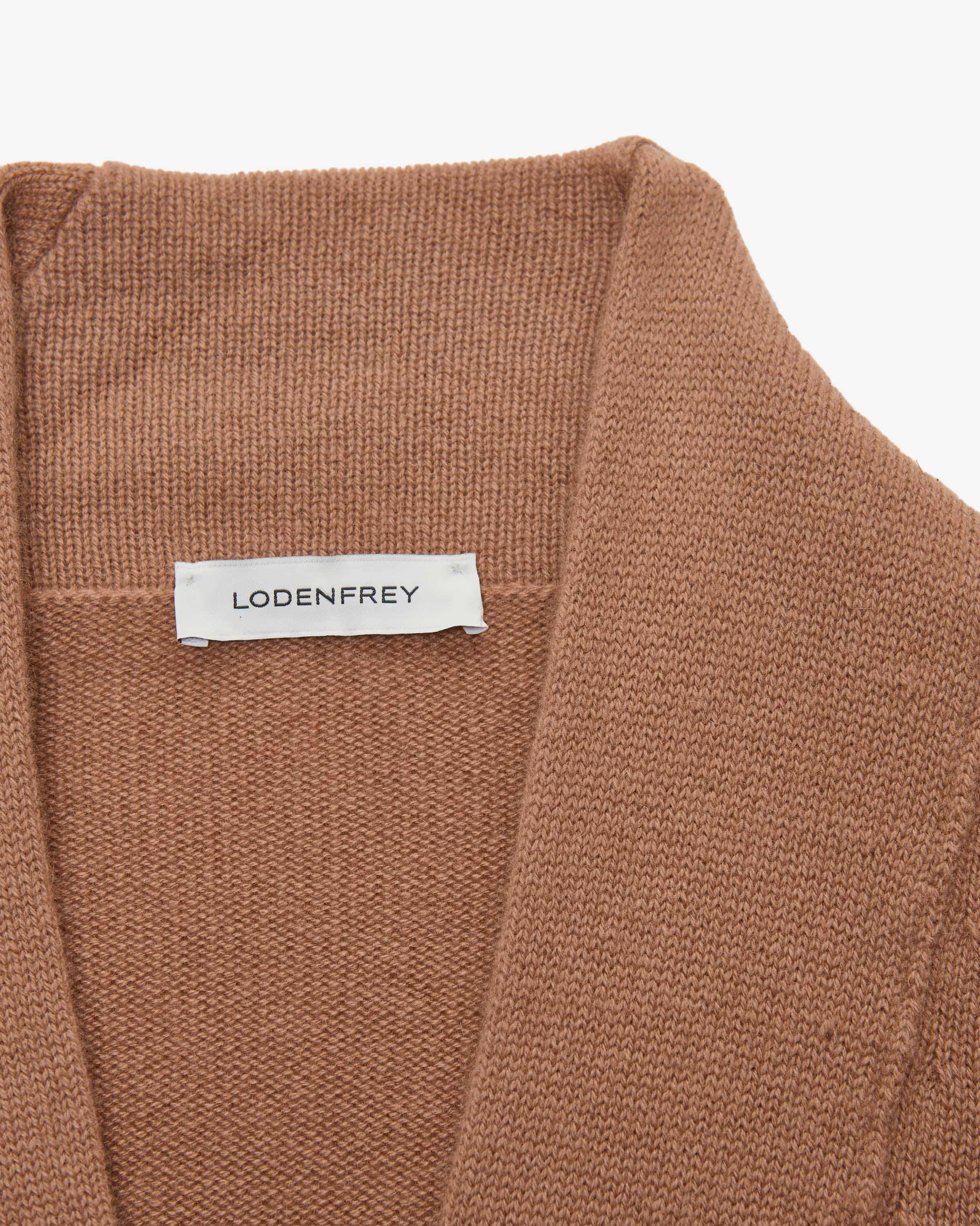 Cashmere cardigan for women from LODENFREY in hazelnut. The model made from fine cashmere wool, the casual design with a soft feel makes it a comfortable knitwear comfortable knitwear essential for at home or on the go.
