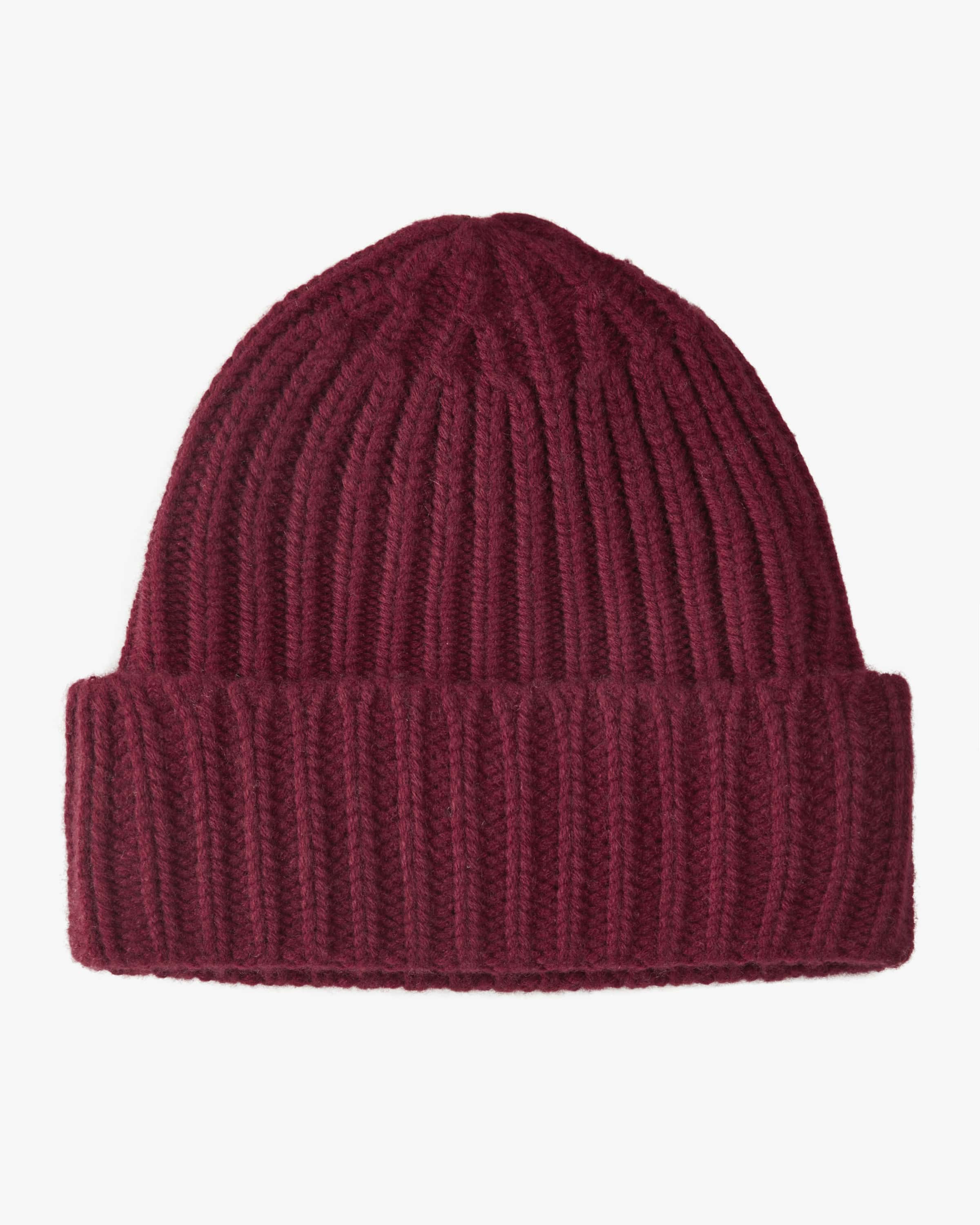 Cashmere hat for women from OFF & CO in bordeaux. The model scores points thanks to the pure cashmere processing with a soft feel, while the classic rib knit design creates a ribbed knit design creates a timeless companion for chilly days.