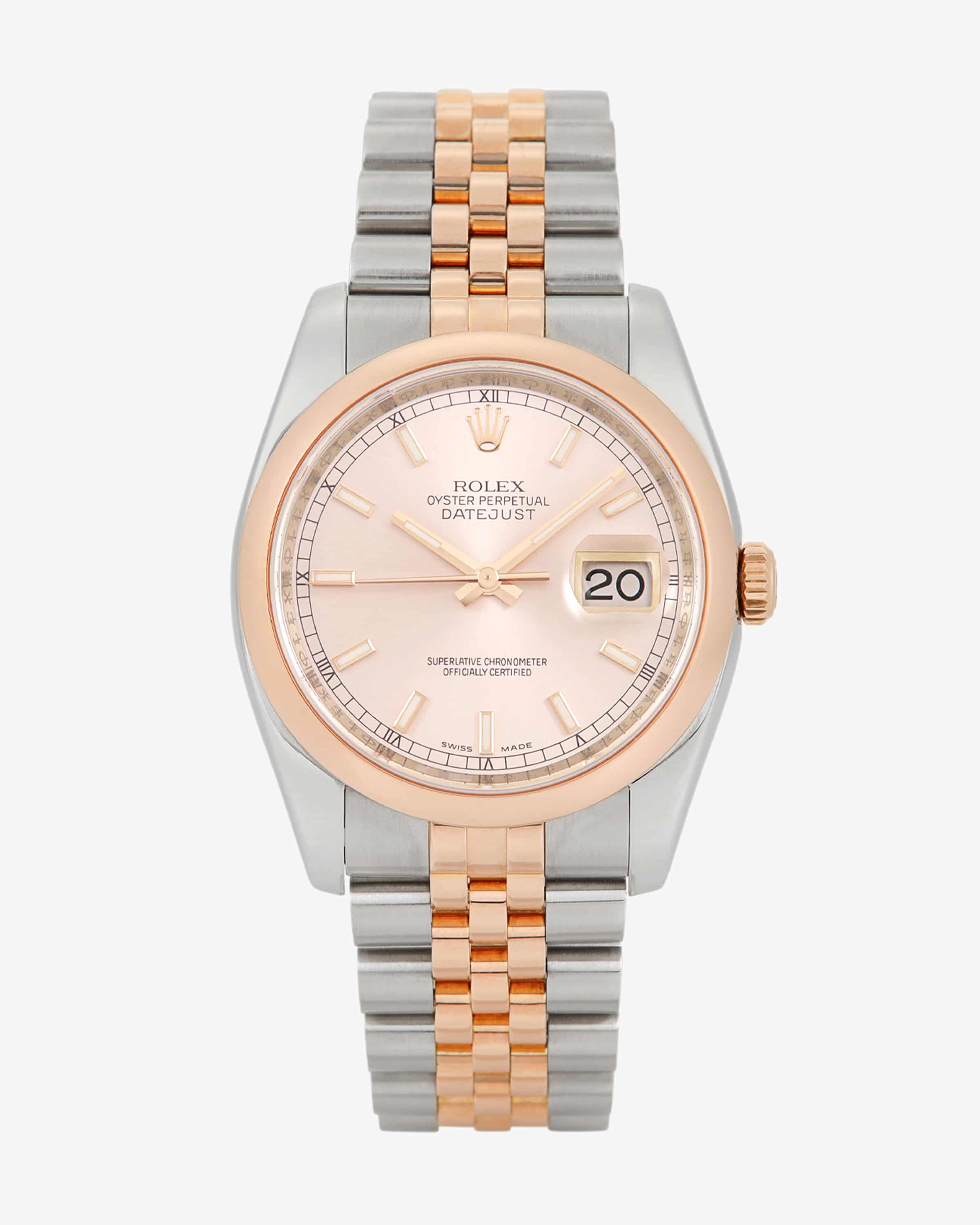 Rolex Datejust Vintage watch from World of Time in rose gold and silver. Since 2003 Meertz World of Time has been presenting high-quality, second-hand watches that have been and expertly refurbished. The model in fashionable rose gold presents itself as a stylish and elegant favorite, while the iconic Jubilé Jubilé strap creates a genuine collector's item.