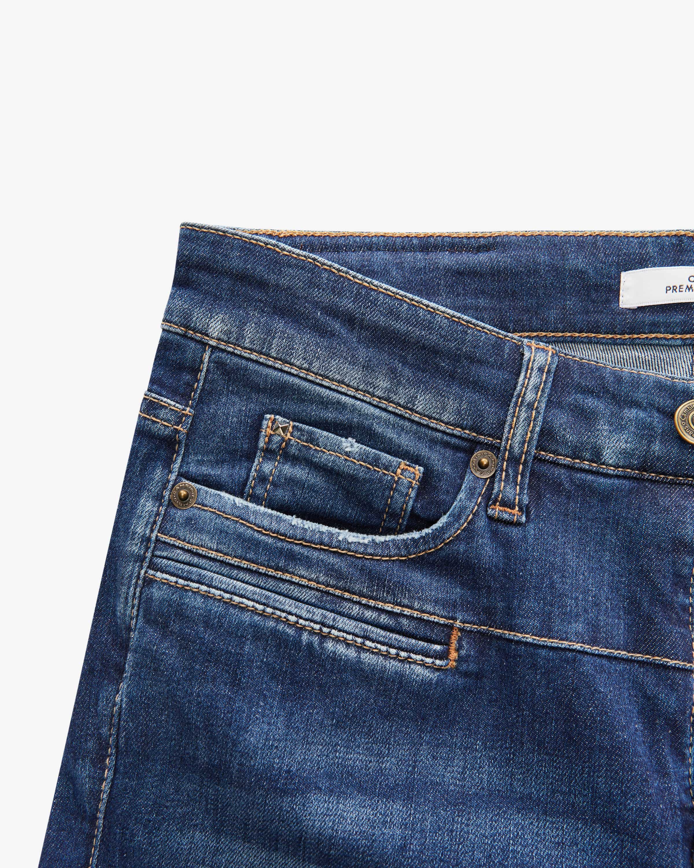 Pearlie jeans for women from Cambio in blue. This model in a slim fit thanks to the stretchy cotton fabric is a comfortable and fashionable favorite that fashionable favorite, which is given a fashionable twist by the refined dividing seams. twist thanks to the refined dividing seams.
