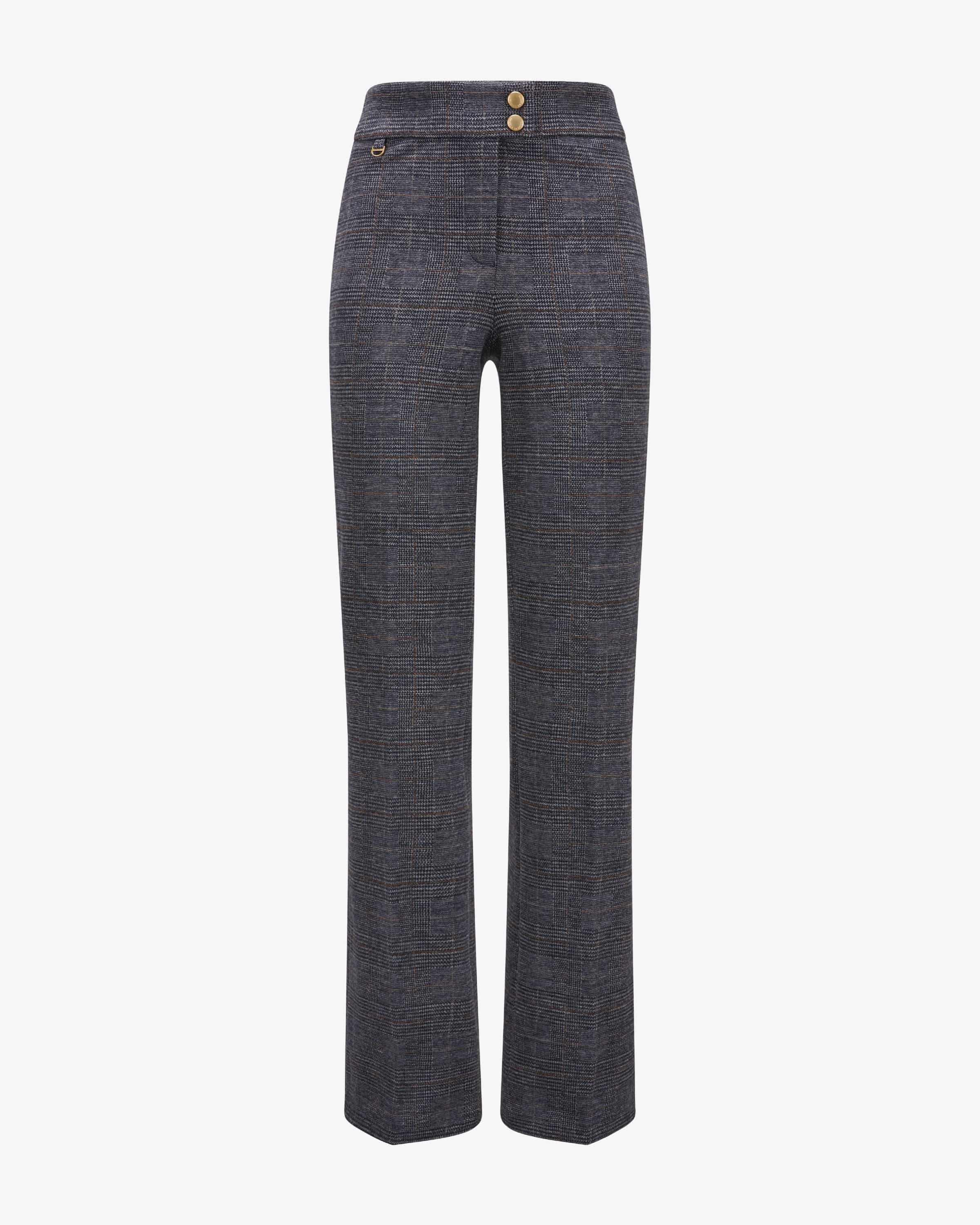 Phellie trousers for women from Pamela Henson in navy, brown and cream. High-quality workmanship and fashionable design characterize the models from the women's label. Also These elasticated trousers also impress thanks to their particularly soft feel and flared leg in a feminine and elegant look. The classic glencheck pattern rounds off the look with equestrian vibes.