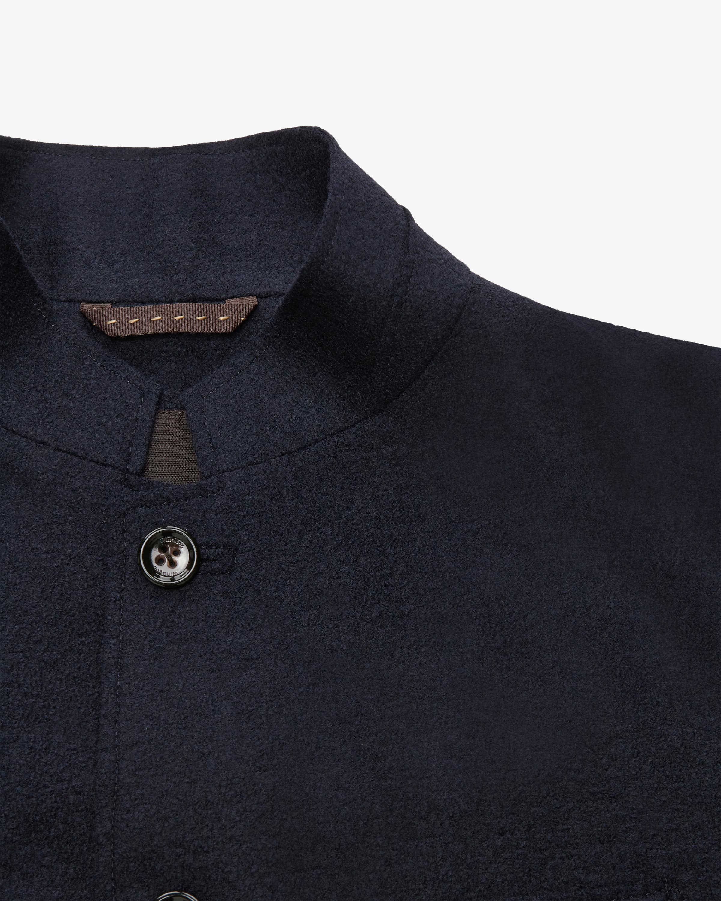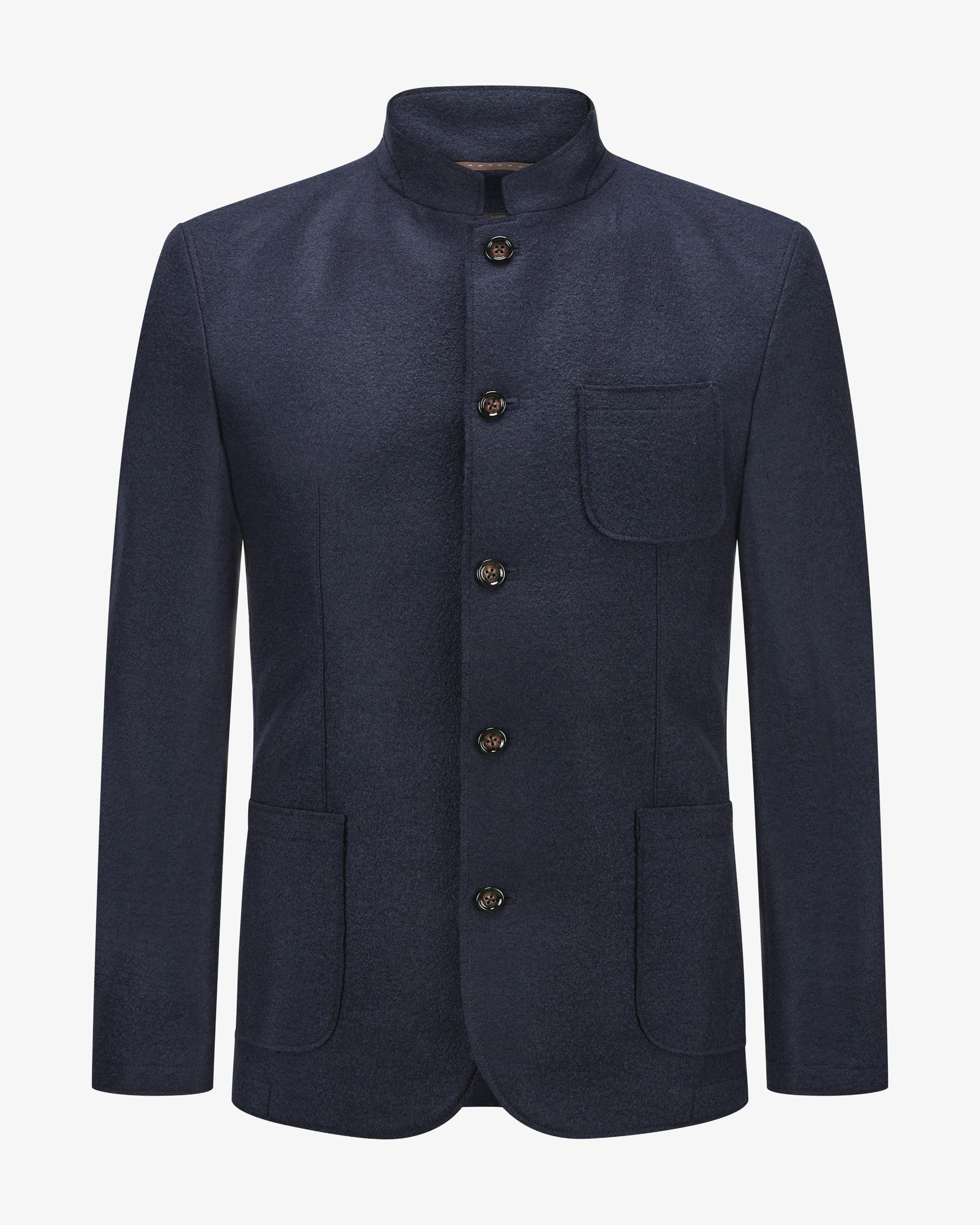Tesso jacket for men by $stopword_1087$ in navy. The unlined stand-up collar model is a modern casual companion with a light and soft feel thanks to the pure wool and soft feel - a stylish companion for casual office looks or when traveling. or when traveling.
