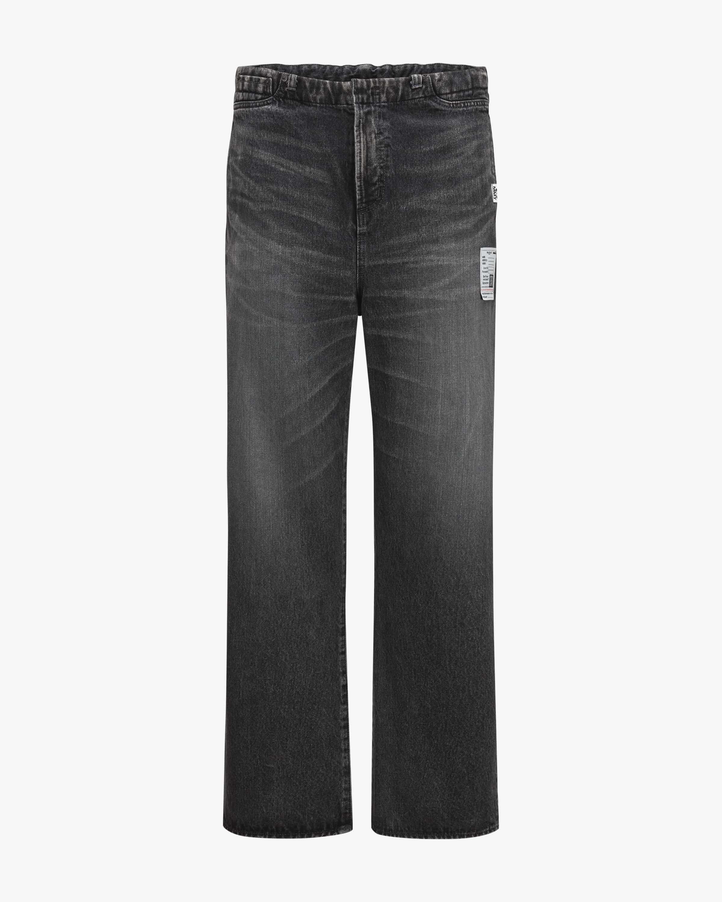 Jeans for men from Mihara Yasuhiro in black. The Japanese designer is known for avant-garde footwear & deconstructed streetwear with sculptural elements. This model also presents itself thanks to the casual cut in combination with the deconstructed waistband, this model is also a fashionable streetwear favorite. The robust cotton fabric with striking washed details also skilfully rounds off the look. skilfully round off the look.