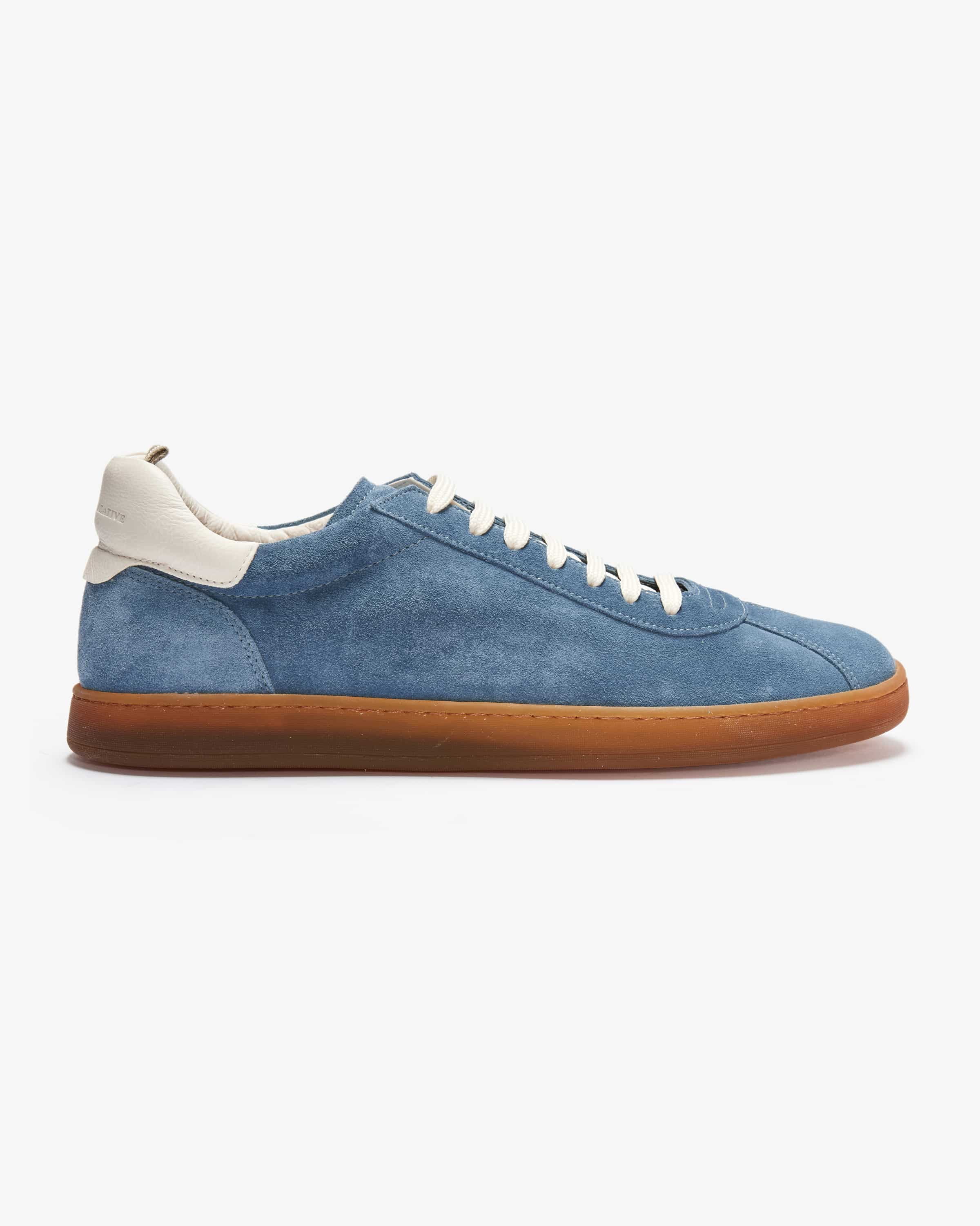 Halo sneakers for men from Officine Creative in blue and off-white. Officine Creative is an Italian shoe label with a handcrafted touch & vintage finish - made in Le Marche. While the soft suede leather quality is both both haptically and visually, the sporty retro silhouette creates a fashionable everyday fashionable everyday companion.