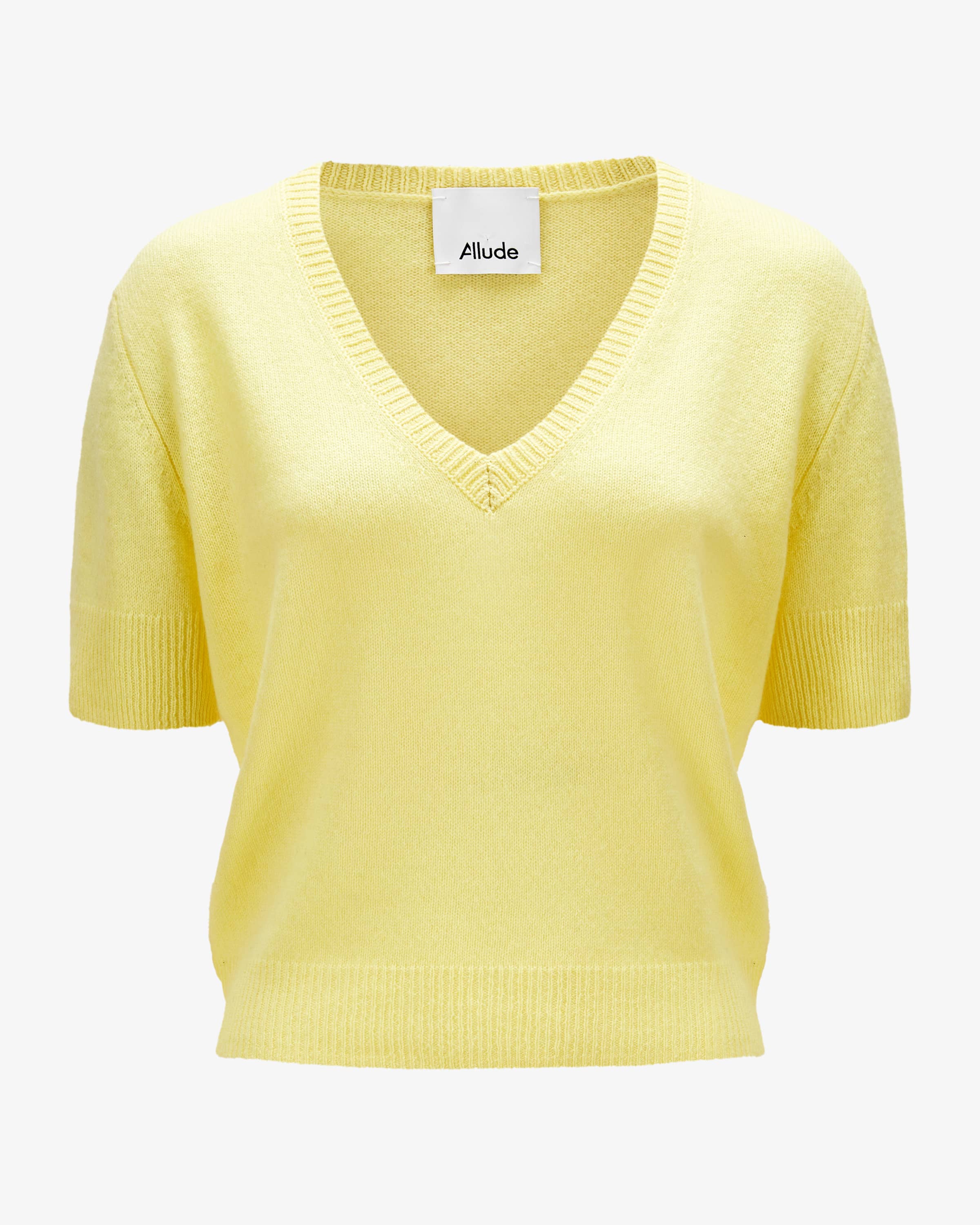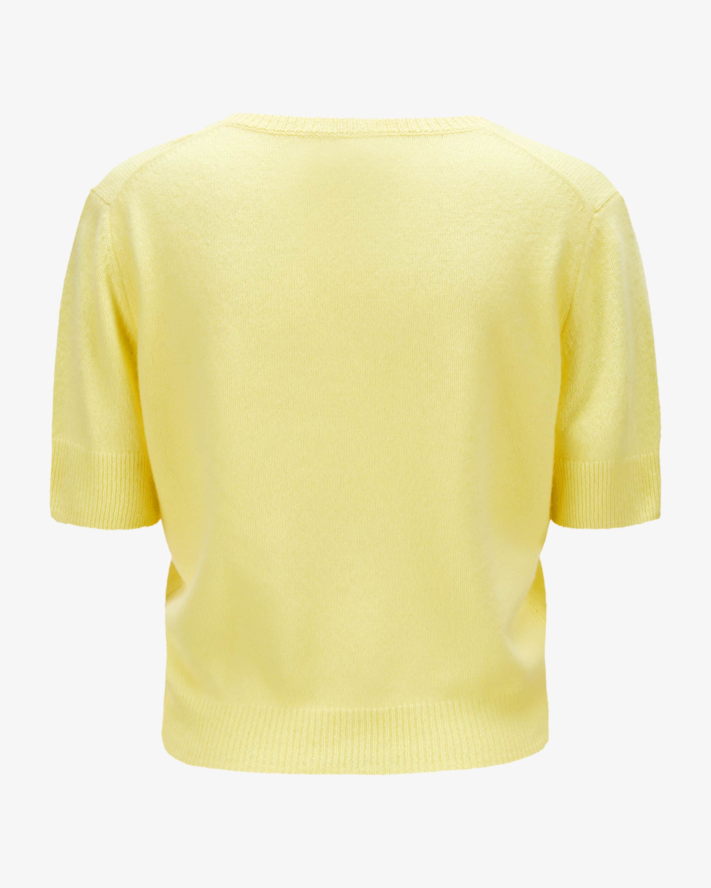 Knitted shirt for women from Allude in lemon. The Munich label was founded in 1993 by Andrea and Christian Karg and is known for luxurious knitwear made from fine cashmere. fine cashmere. Thanks to the pure cashmere processing, this model also has a a light and particularly soft feel with a semi-transparent look, while the wide wide cut in a slightly cropped silhouette gives it a casual character. gives it a casual character.