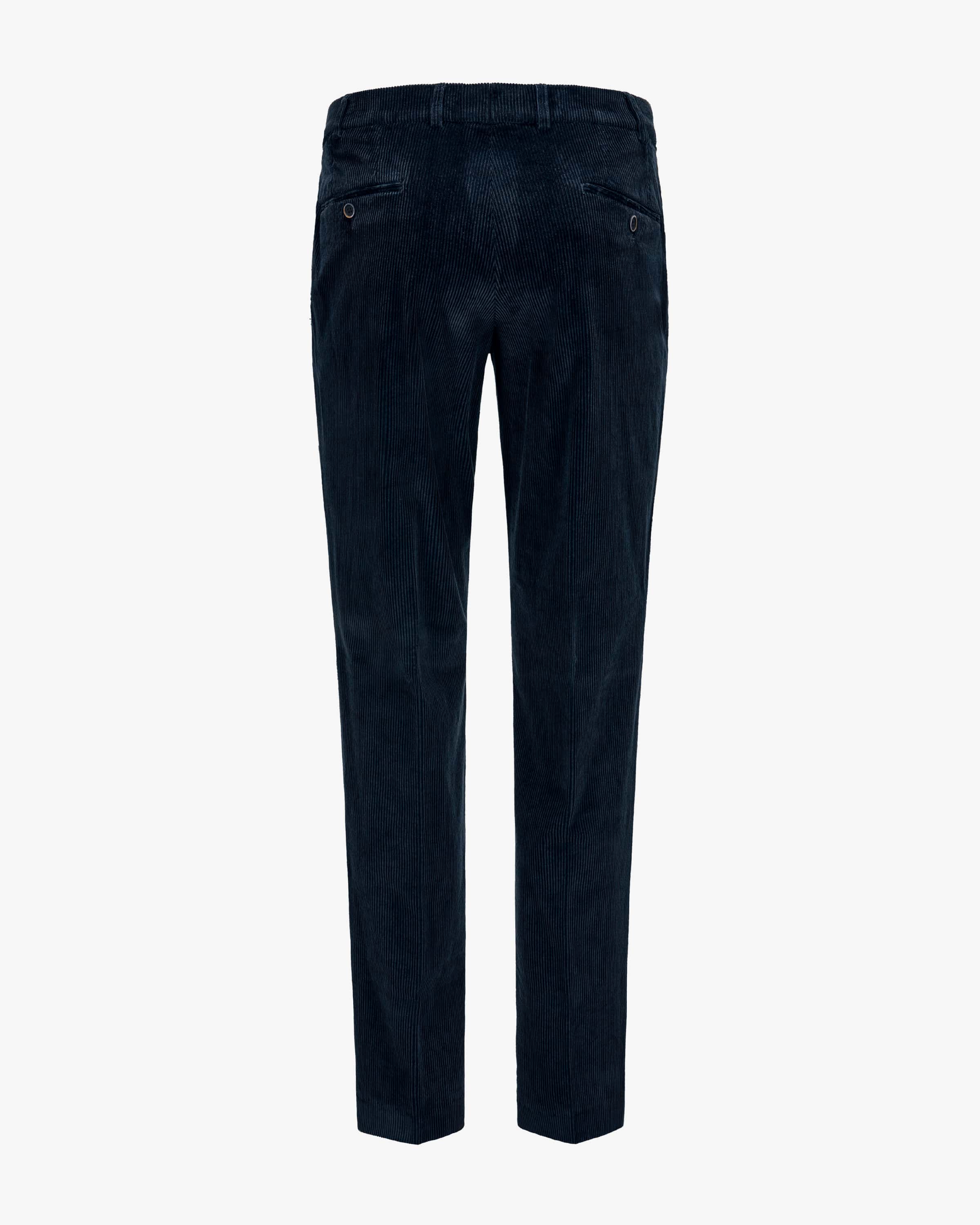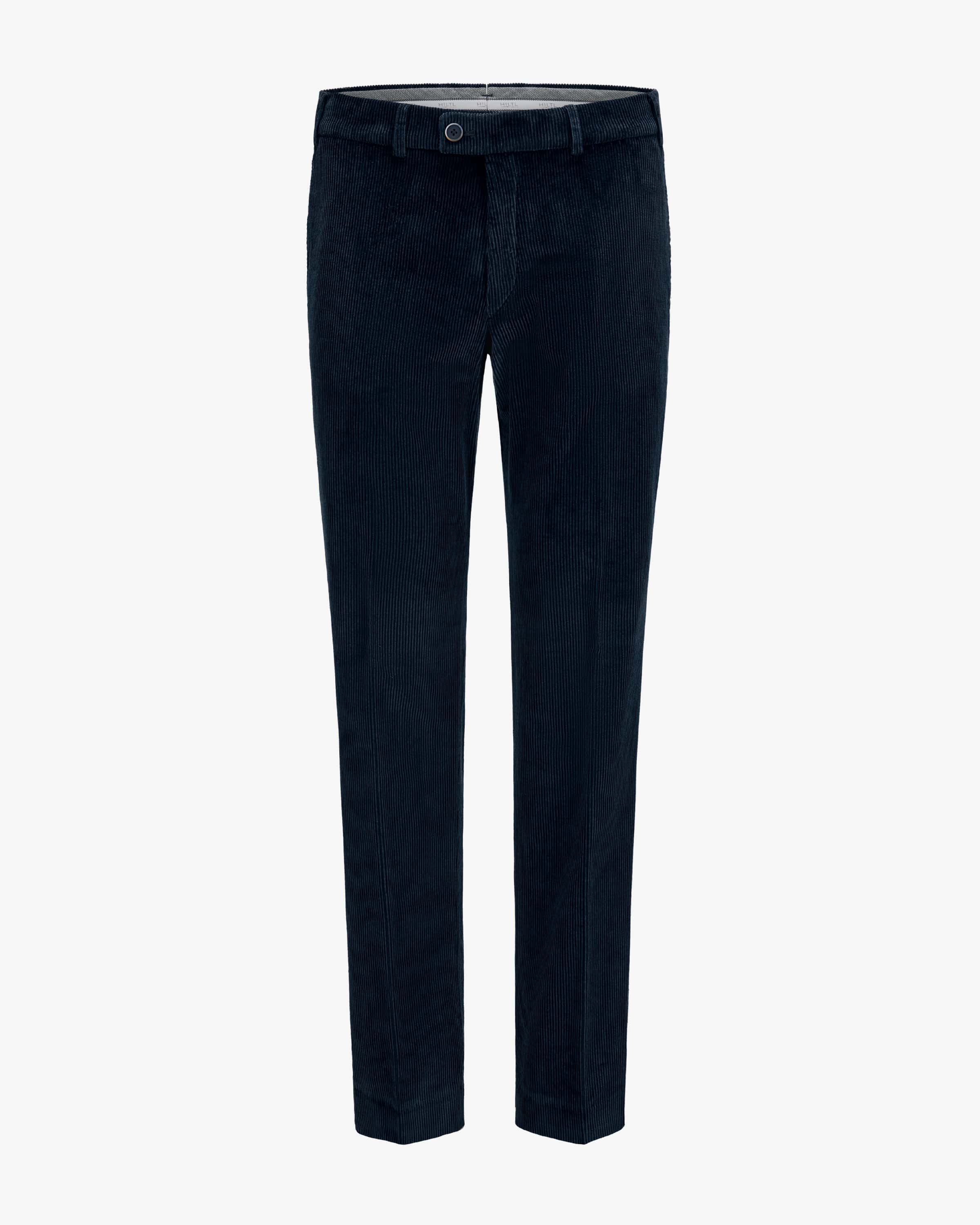 Corduroy trousers for men from Hiltl in navy. The fashionable corduroy design contrasts the casual cut harmoniously, while the soft cotton blend makes the model cotton blend makes it comfortable to wear.