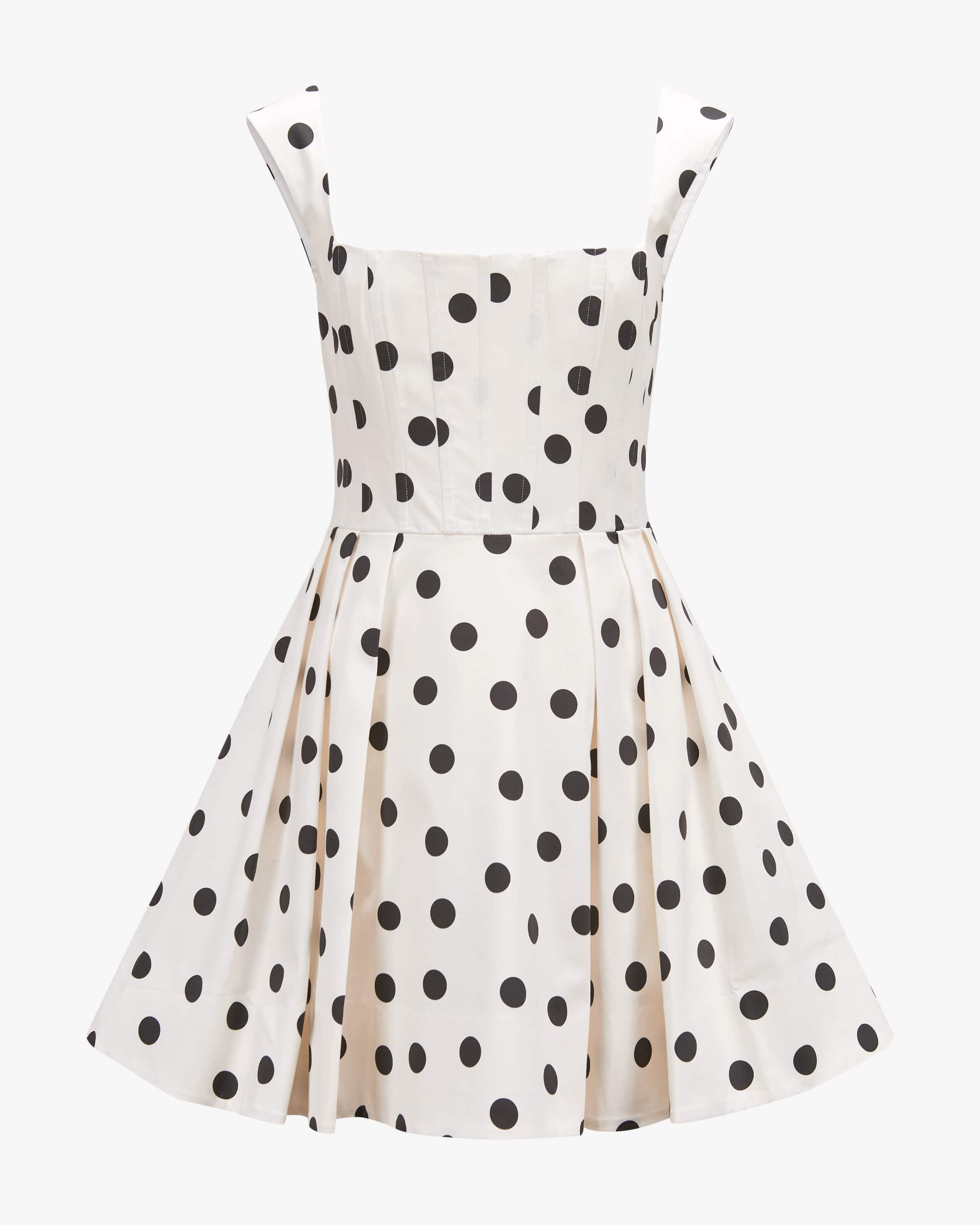 Maisie mini dress for women from Rebecca Vallance in white and black. The Australian brand stands for structured dresses with feminine power - red carpet Carpet-ready with a modern touch. This model also impresses with its feminine polka dot print and 50s vibes, while the fitted silhouette with figure-shaping boning creates a fashionable style.