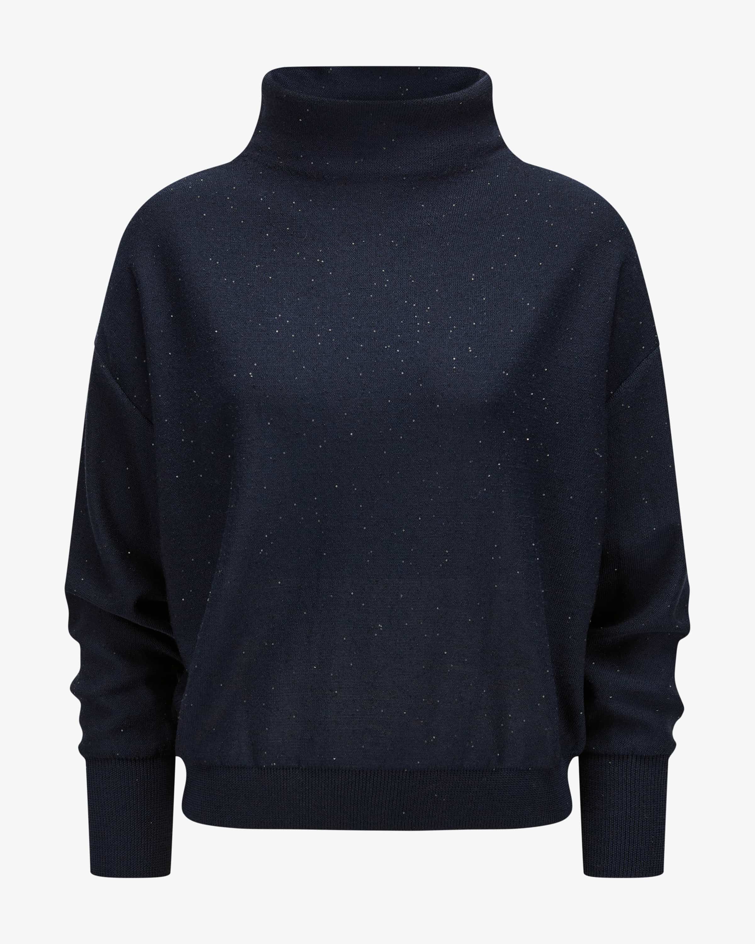 Pullover for women from Hemisphere in midnight blue. This model in a high-quality merino wool blend impresses with its comfortable wearing comfort, while the tonal sequin sequin design sets feminine accents.