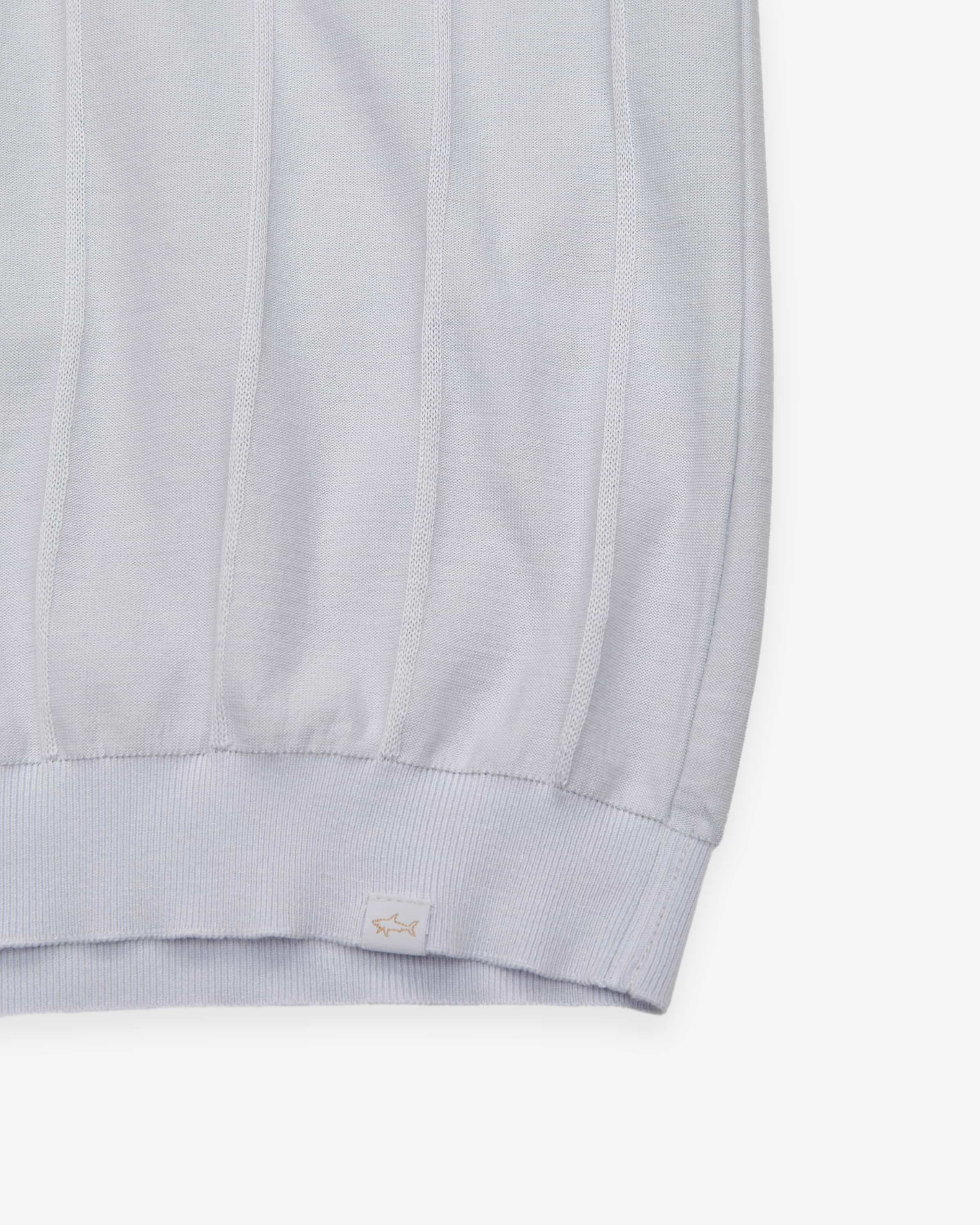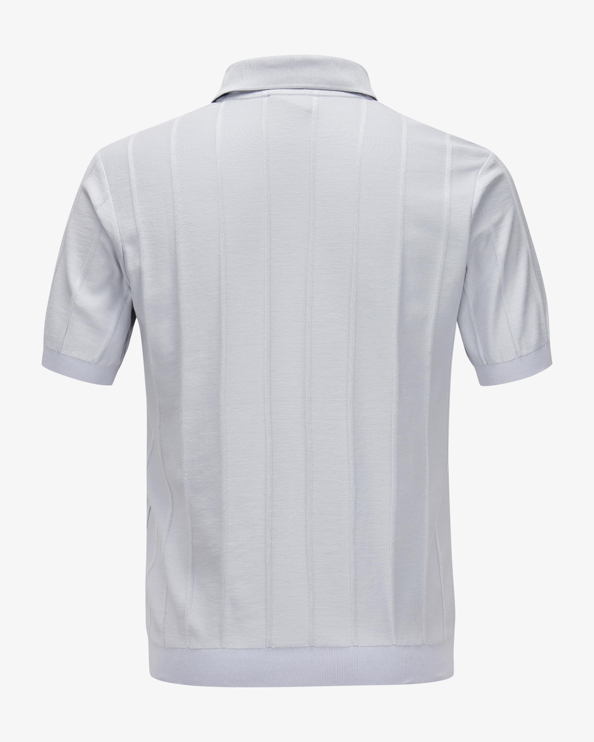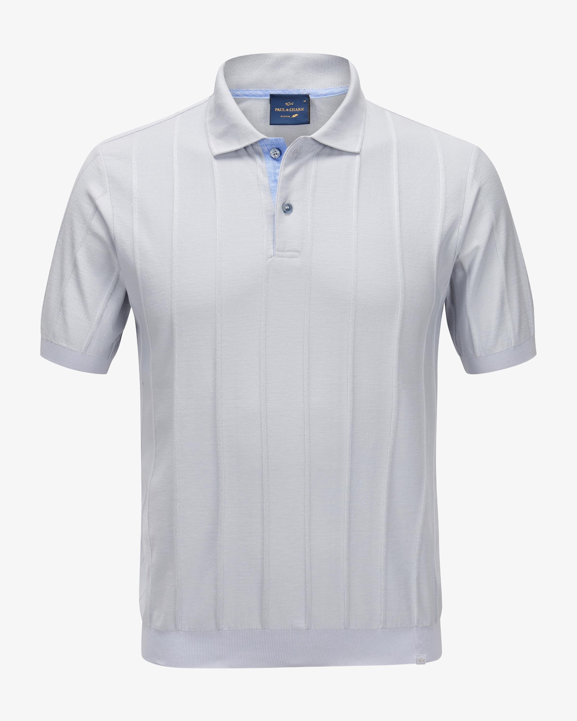 Knitted polo shirt for men from Paul & Shark in ice blue. Thanks to the use of thanks to the use of lightweight Giza cotton in a fine knit quality, the pleasant, soft feel, while the knitted stripe accents add a modern touch. touch.