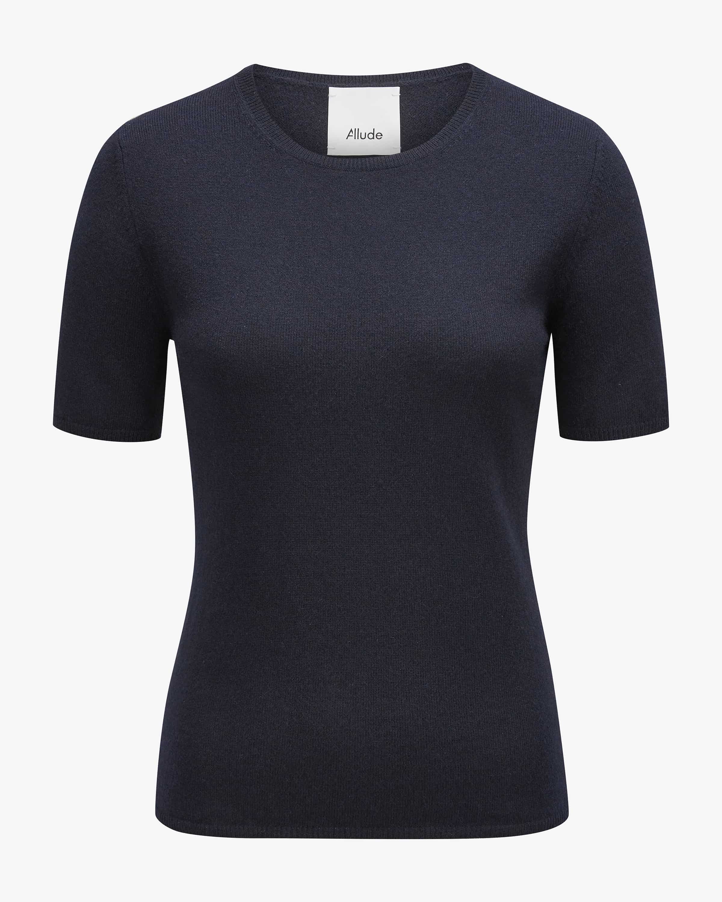 Cashmere knit shirt for women from Allude in navy. The Munich-based company Allude stands for fashion that exudes self-confidence and timeless individuality. and timeless individuality. Made from luxurious cashmere wool, this style impresses with its particularly soft feel and a light knitted feel. The clean design with a tailored silhouette creates a feminine basic with a timeless character. character.