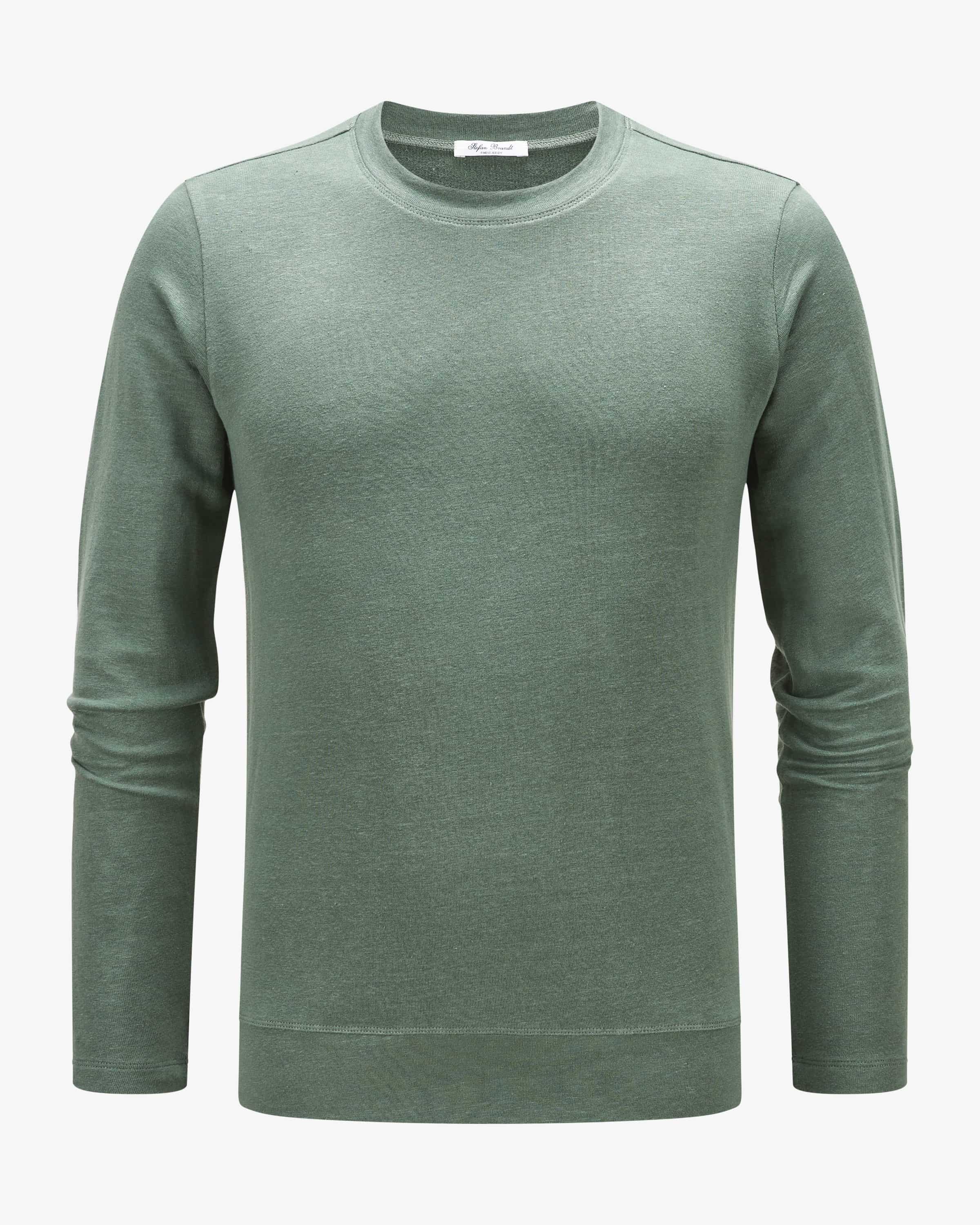 Edwin sweatshirt for men by Stefan Brandt in green. Stefan Brandt is a German luxury label for purist jersey and knitwear fashion - handcrafted precise, uncompromisingly elegant. This model is also presented in a classic, timeless timeless design, while the high-quality linen blend promises a comfortable promises a comfortable feel.
