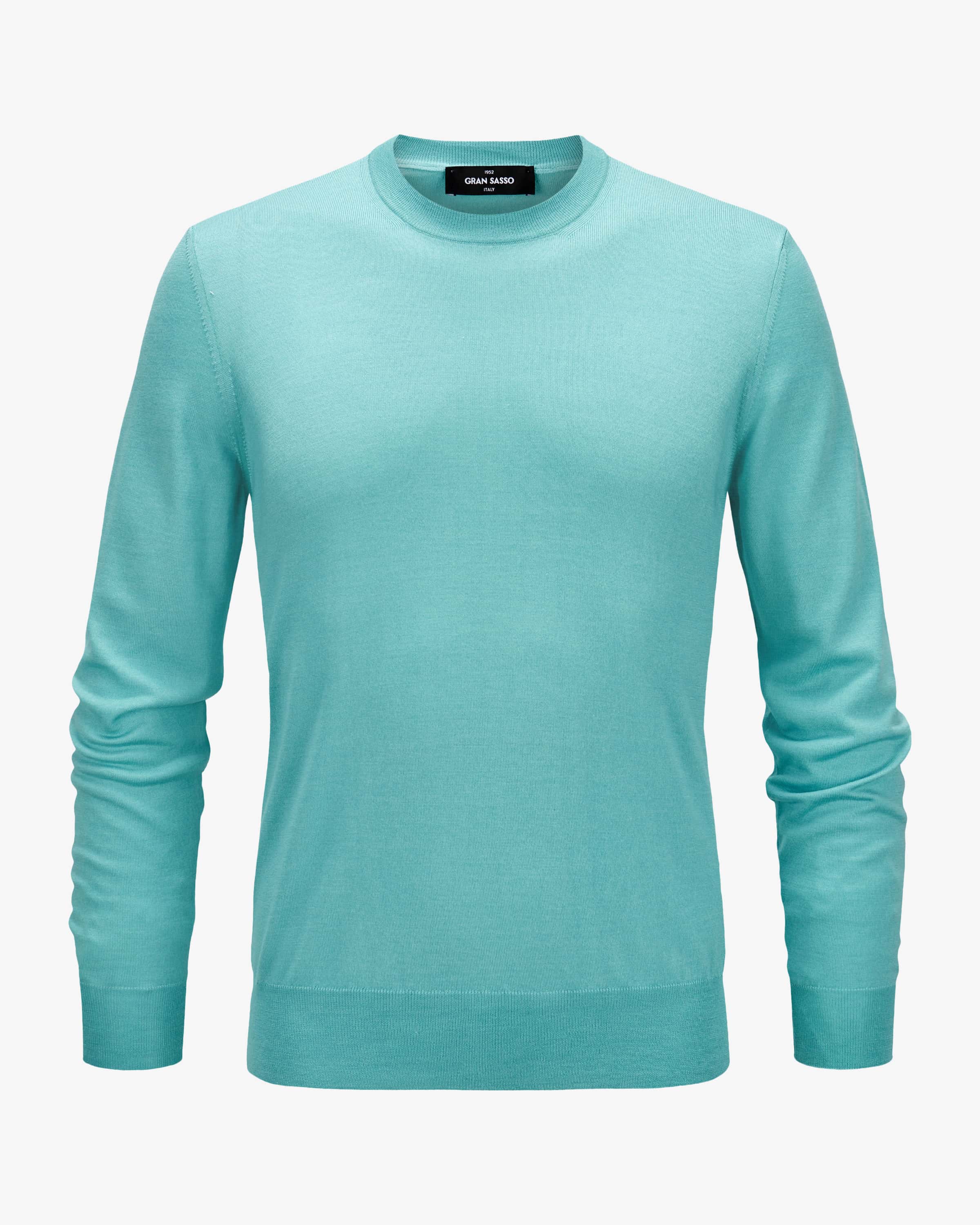 Sweater for men from Gran Sasso in turquoise. With a focus on materials and materials and workmanship that meet the highest quality standards, the label has specialized specializes in high-quality sweaters that bring a touch of Italian charm to your wardrobe. your closet. The finely knitted model is impressive thanks to high-quality virgin wool and cashmere blend with a touch of silk for a light and soft feel. soft feel. Combined with the classic design, it makes a great casual essential.