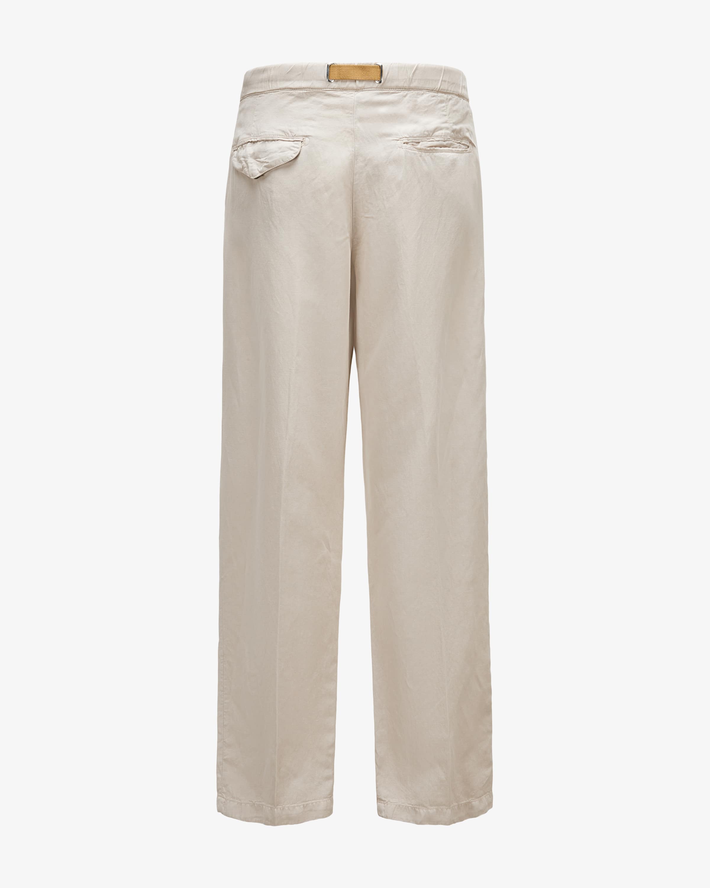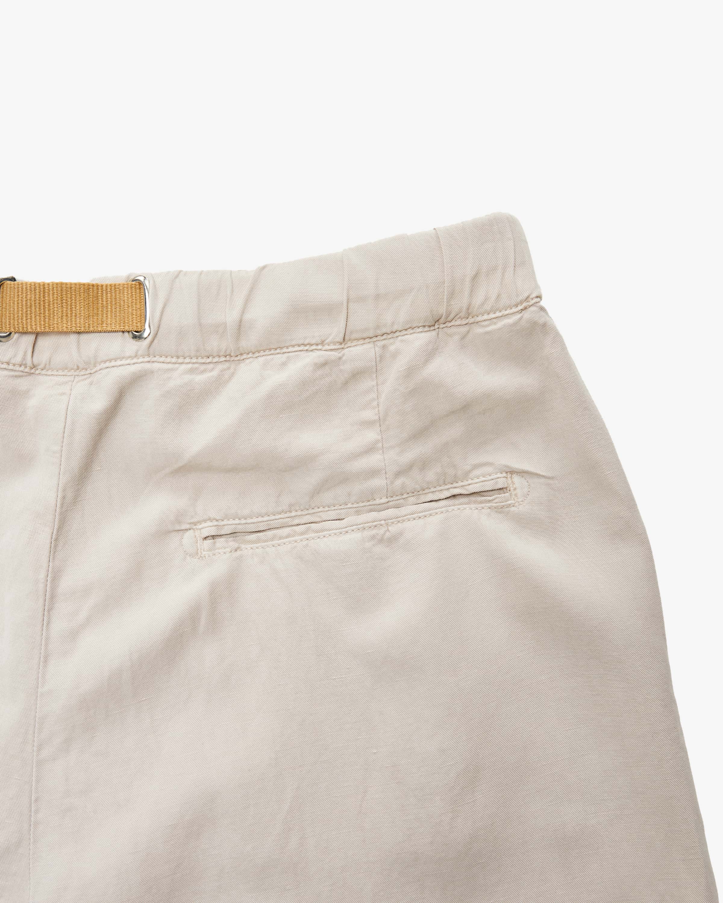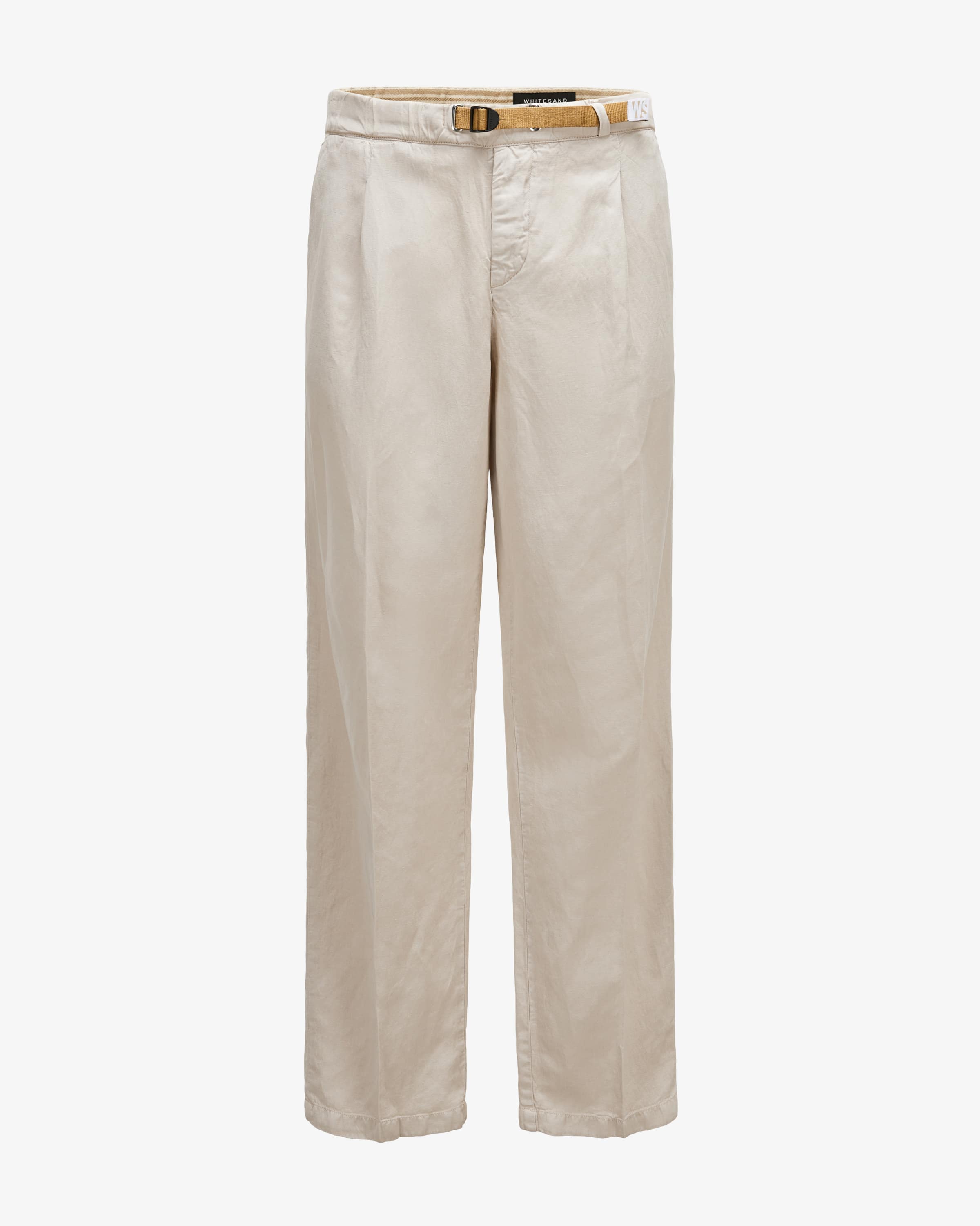 Alex trousers for men from White Sand in stone. Made in Italy - The cropped model made from a lightweight and cooling lyocell/linen blend presents itself in a casual cut with a slightly tapered leg, while the integrated belt with logo details and logo details and pleats add fashionable accents. Perfect for stylish everyday looks without compromising on comfort.