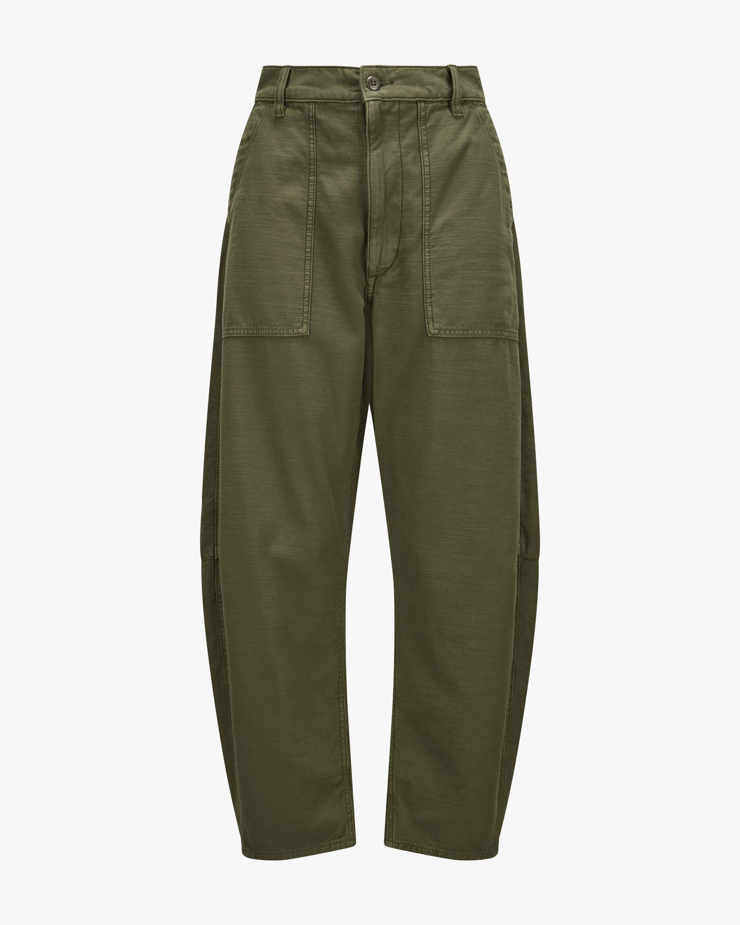 7/8 trousers for women from Polo Ralph Lauren in olive. The model impresses with high-quality cotton fabric, which guarantees comfortable moments of wear, while the wide barrel-leg silhouette with large patch pockets rounds off the look in a fashionably casual look.