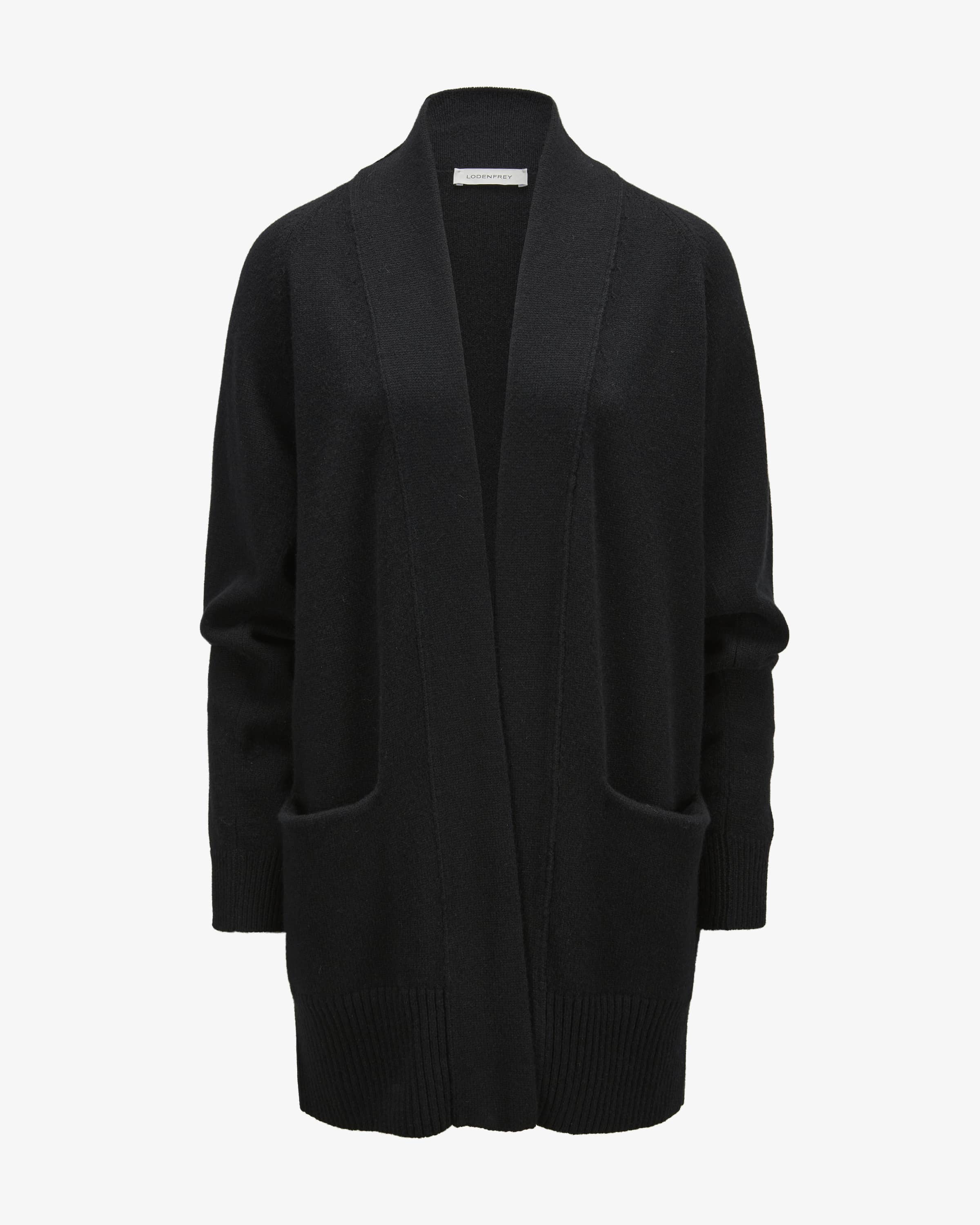 Cashmere cardigan for women from LODENFREY in black. The model made from fine cashmere wool, the casual design with a soft feel makes it a comfortable knitwear comfortable knitwear essential for at home or on the go.