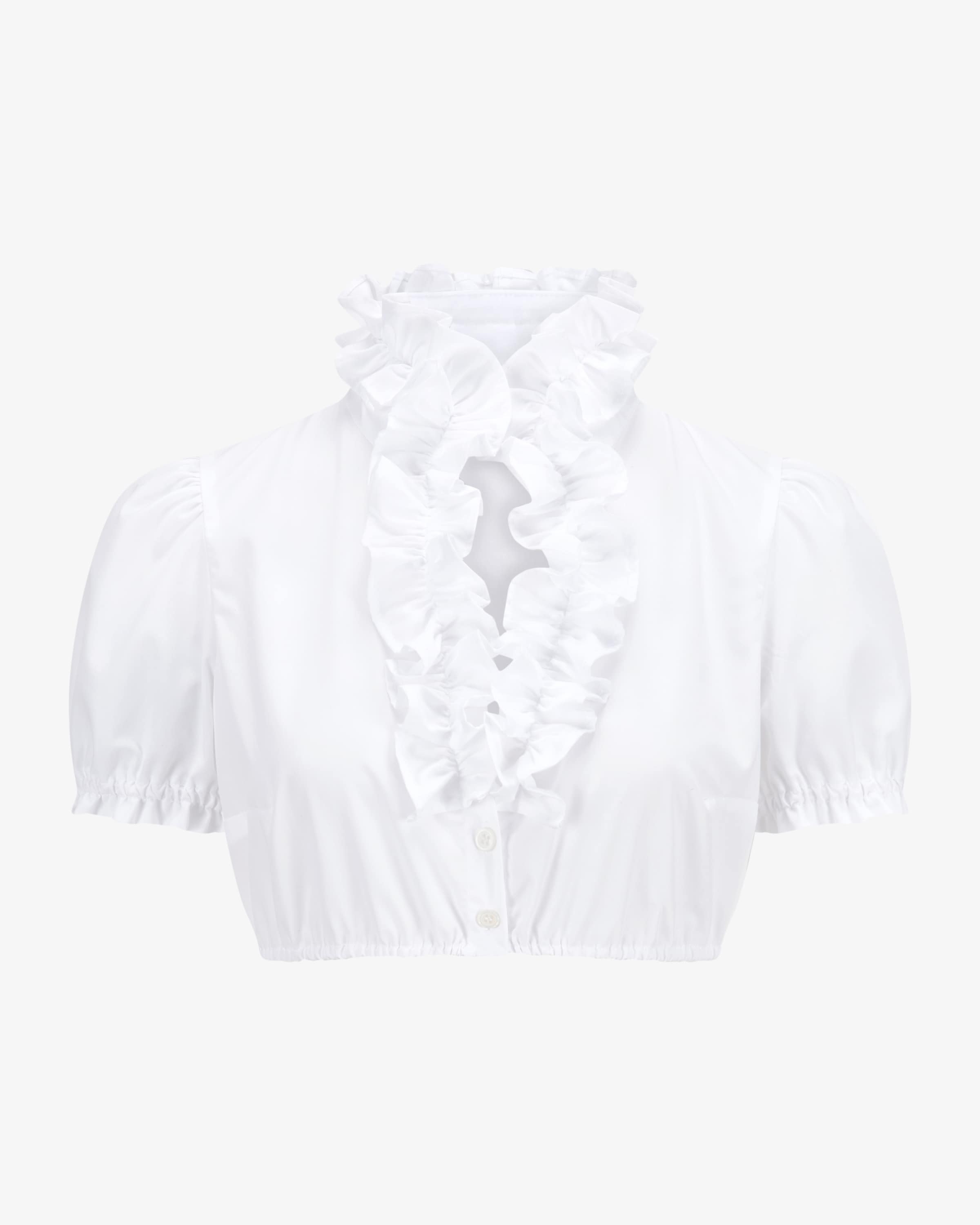 Cecilia dirndl blouse for women from Susanne Spatt in white. Made in Austria - Thanks to the high-quality cotton this model, which is made in Austria, impresses with special feminine ruffle accents and creates a sophisticated traditional look.
