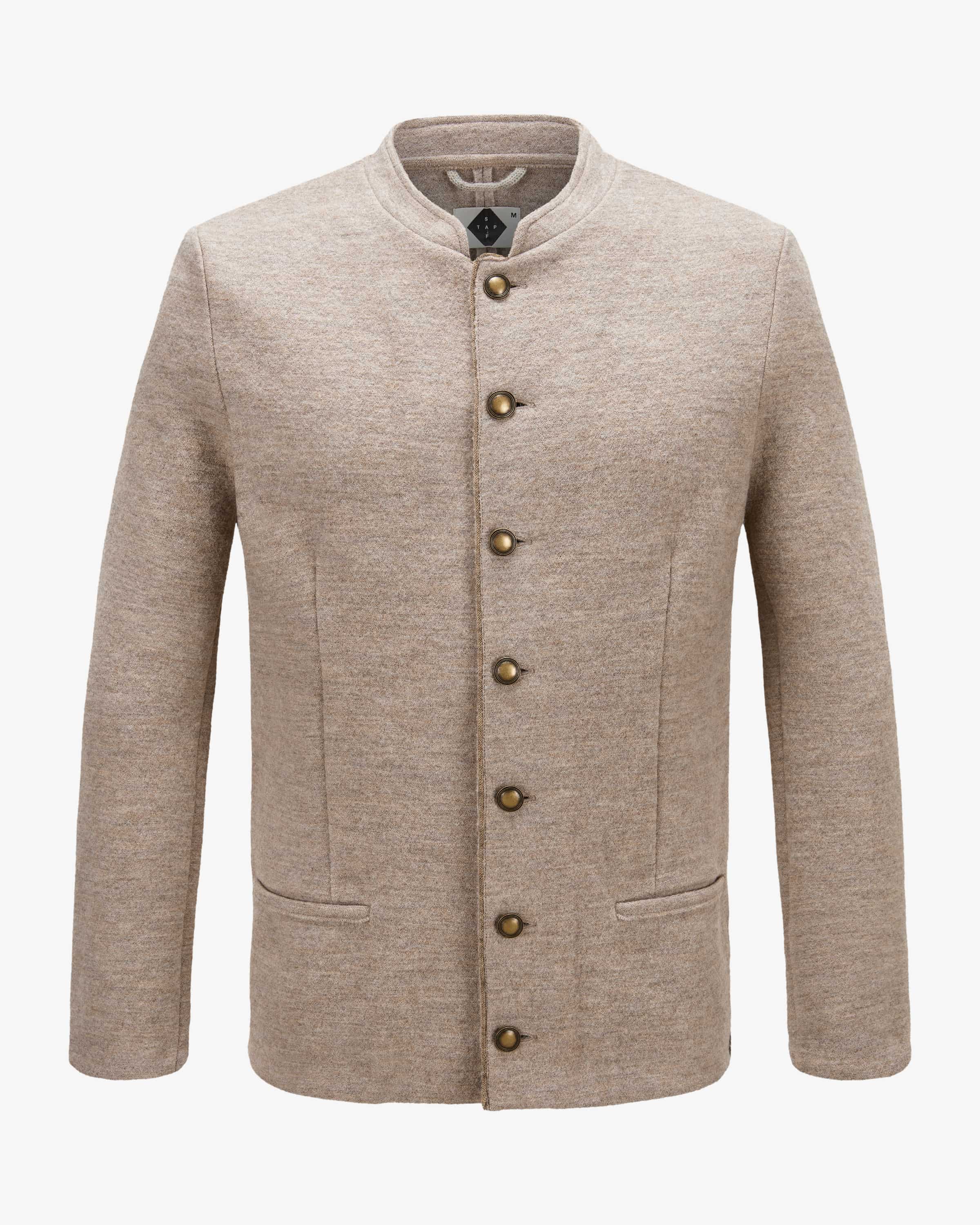 Baltus traditional jacket for men by Stapf in beige. The Austrian label is synonymous with woven and knitted fashion - ecologically produced, functional and timeless. This model impresses with its high-quality virgin wool fabrication in a mottled look, while the rustic metal buttons stylishly complete the traditional look. complete the traditional look. At the same time, the typical label logo appliqué rounds off the overall look harmoniously.