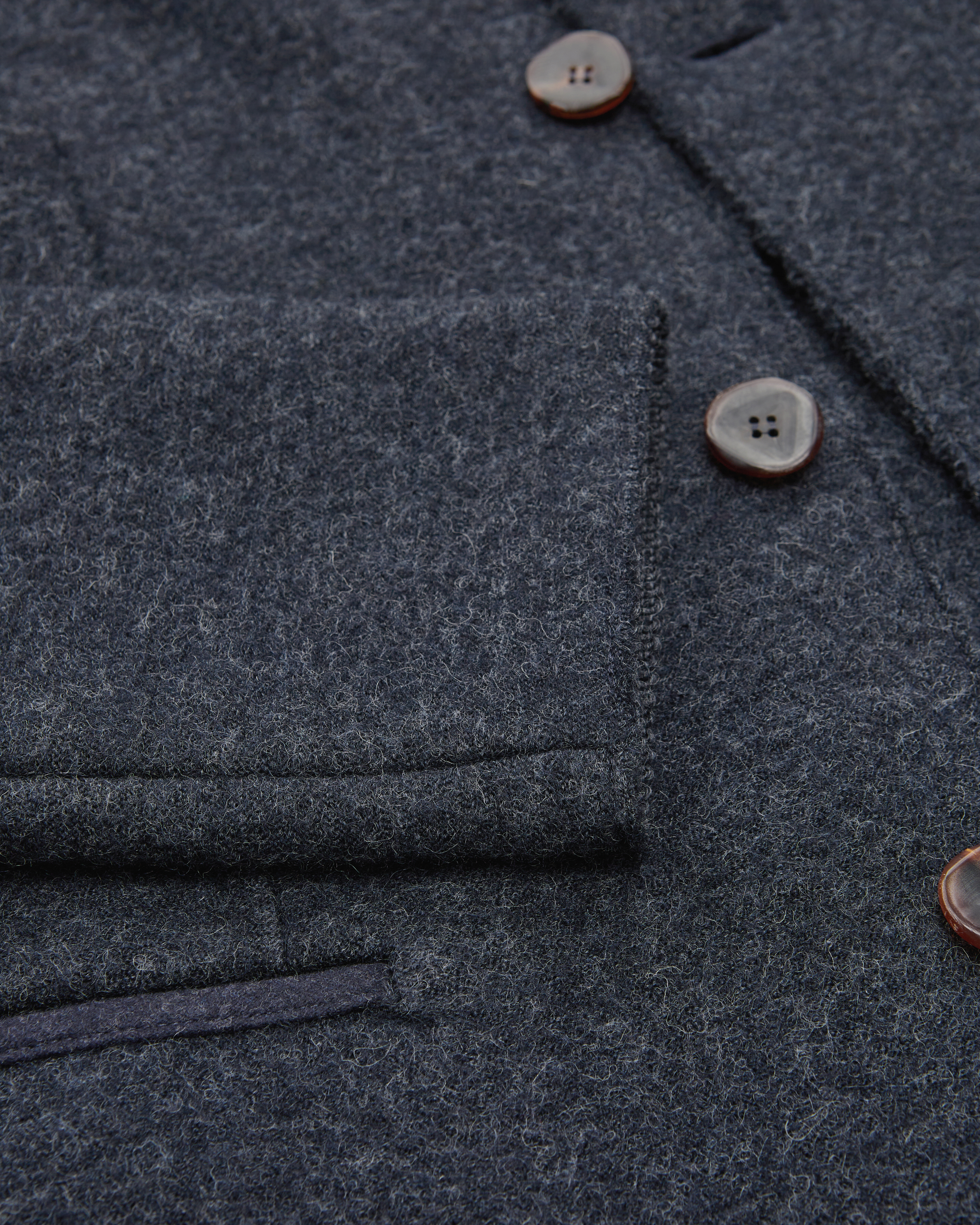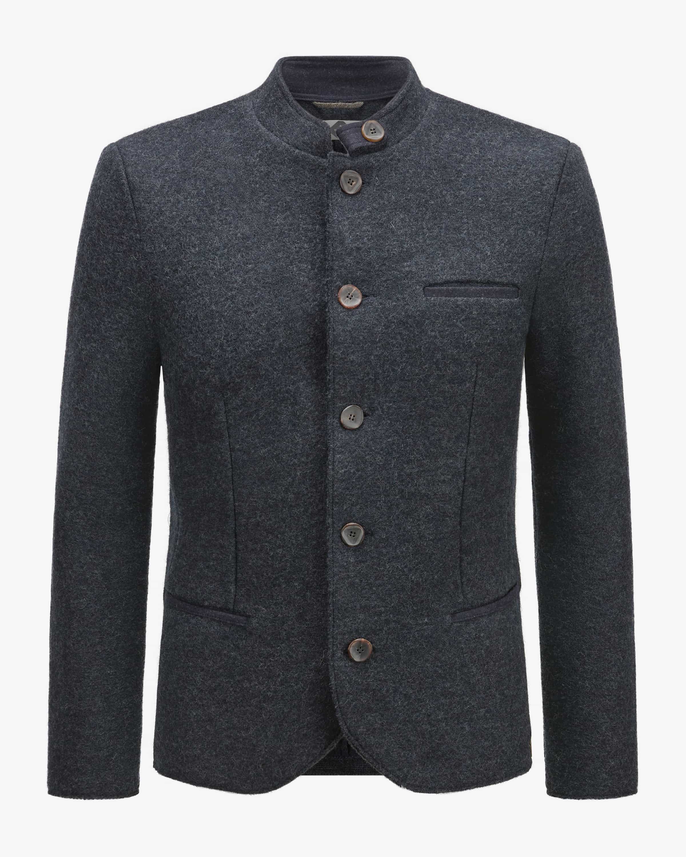 Bastl traditional jacket for men from Stapf in midnight blue. The fitted model impresses with its high-quality virgin wool blend with a pleasant feel, while rustic details rustic details and horn buttons skilfully complete the traditional look. At the same time the label's signature logo appliqué harmoniously rounds off the overall look.