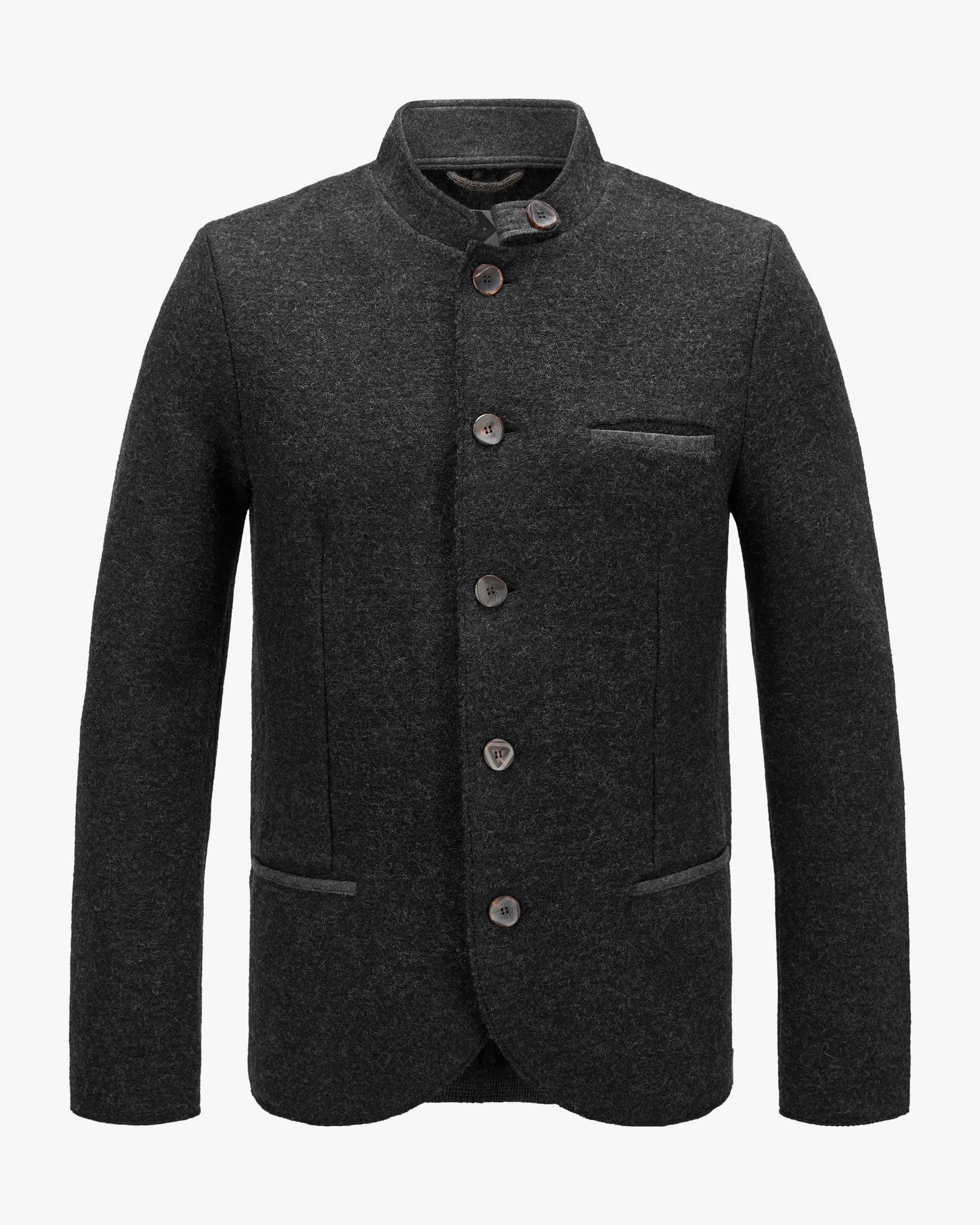 Bastl traditional jacket for men from Stapf in anthracite. The fitted model impresses with its high-quality virgin wool blend with a pleasant feel, while rustic details rustic details and horn buttons skilfully complete the traditional look. At the same time the label's signature logo appliqué harmoniously rounds off the overall look.