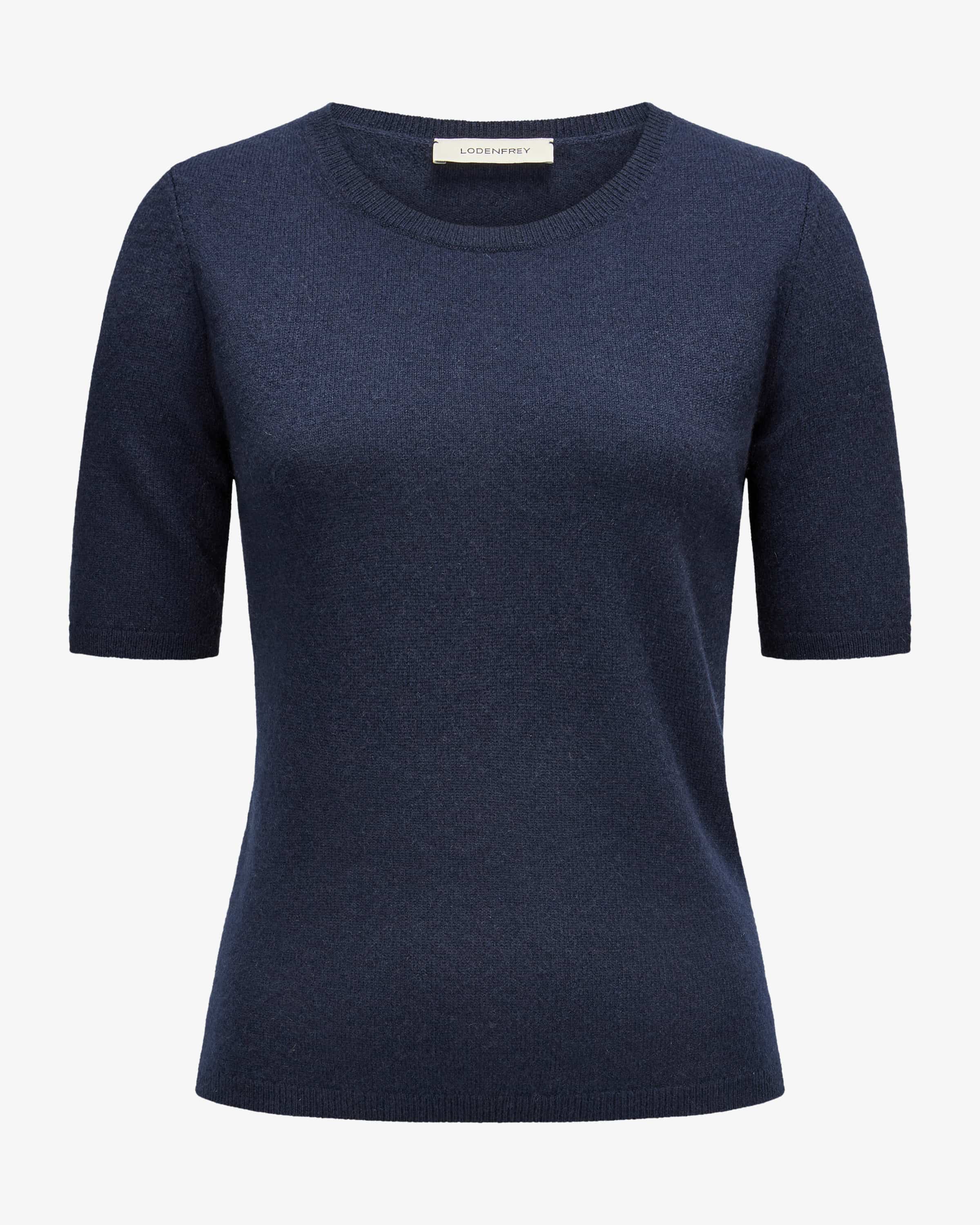 Cashmere knit shirt for women from LODENFREY in navy. The high-quality cashmere quality impresses with a particularly soft feel, while the simple design creates a design creates a versatile basic for modern country looks.