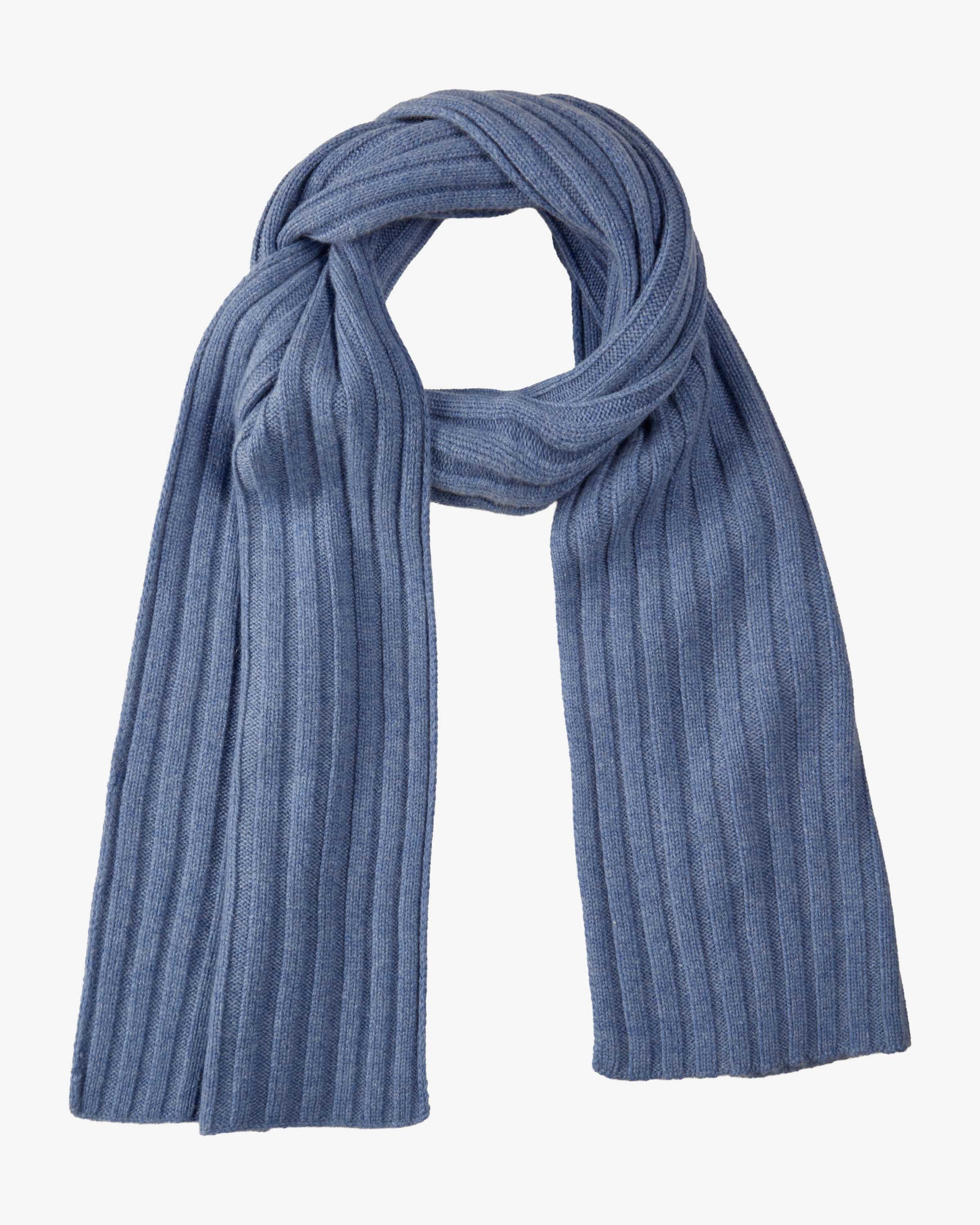 Cashmere scarf for men from LODENFREY in blue. Thanks to the high-quality cashmere the clean model impresses with its particularly soft feel, while the combination of the combination of a coarse rib-knit look and rolled hems creates a casual overall look, making it the perfect casual companion.