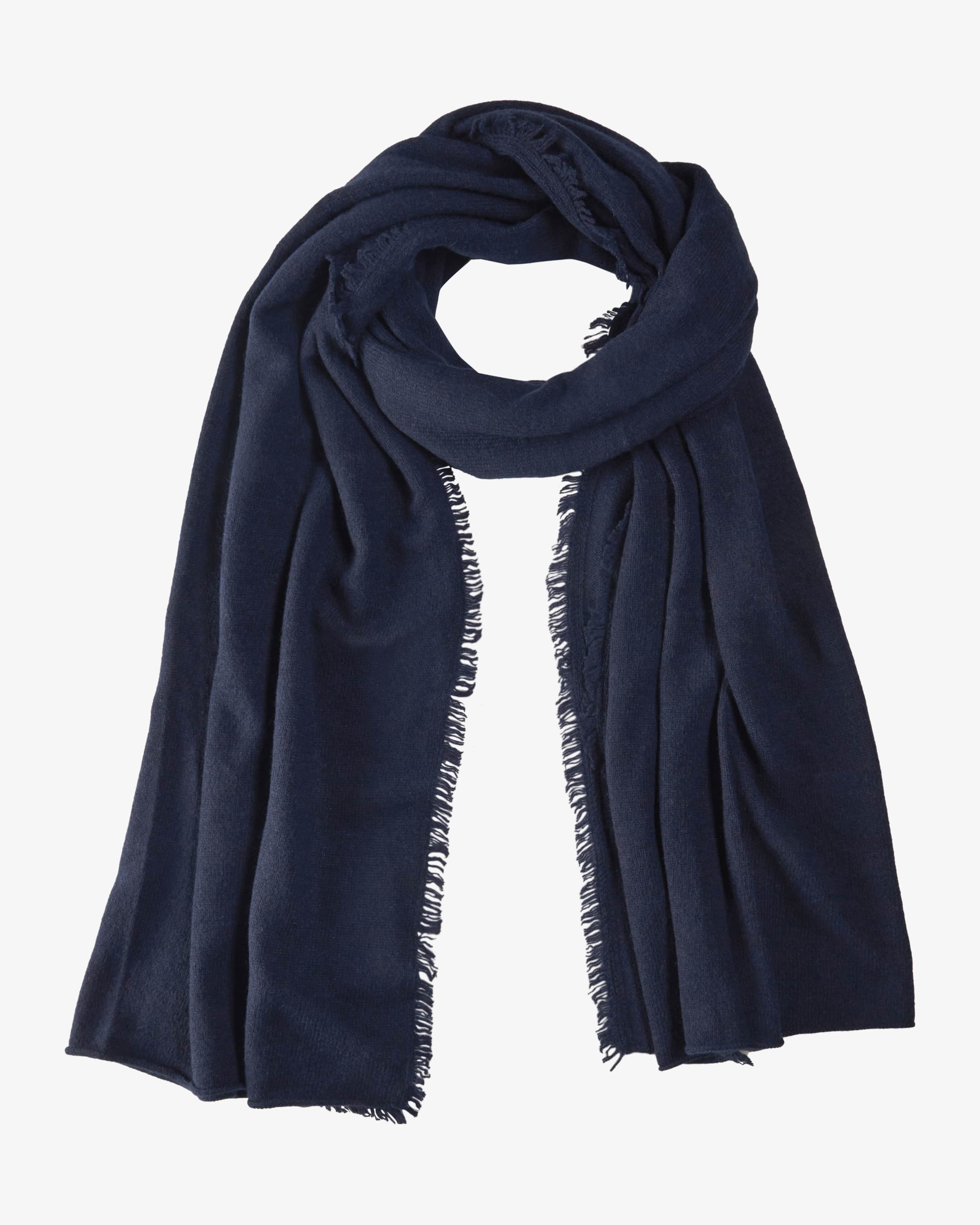 Cashmere scarf for women from OFF & CO in navy. Thanks to the high-quality high-quality cashmere fabric with a pleasantly soft feel, while the minimalist minimalist design with fringed details creates a timeless companion for cold days. days.