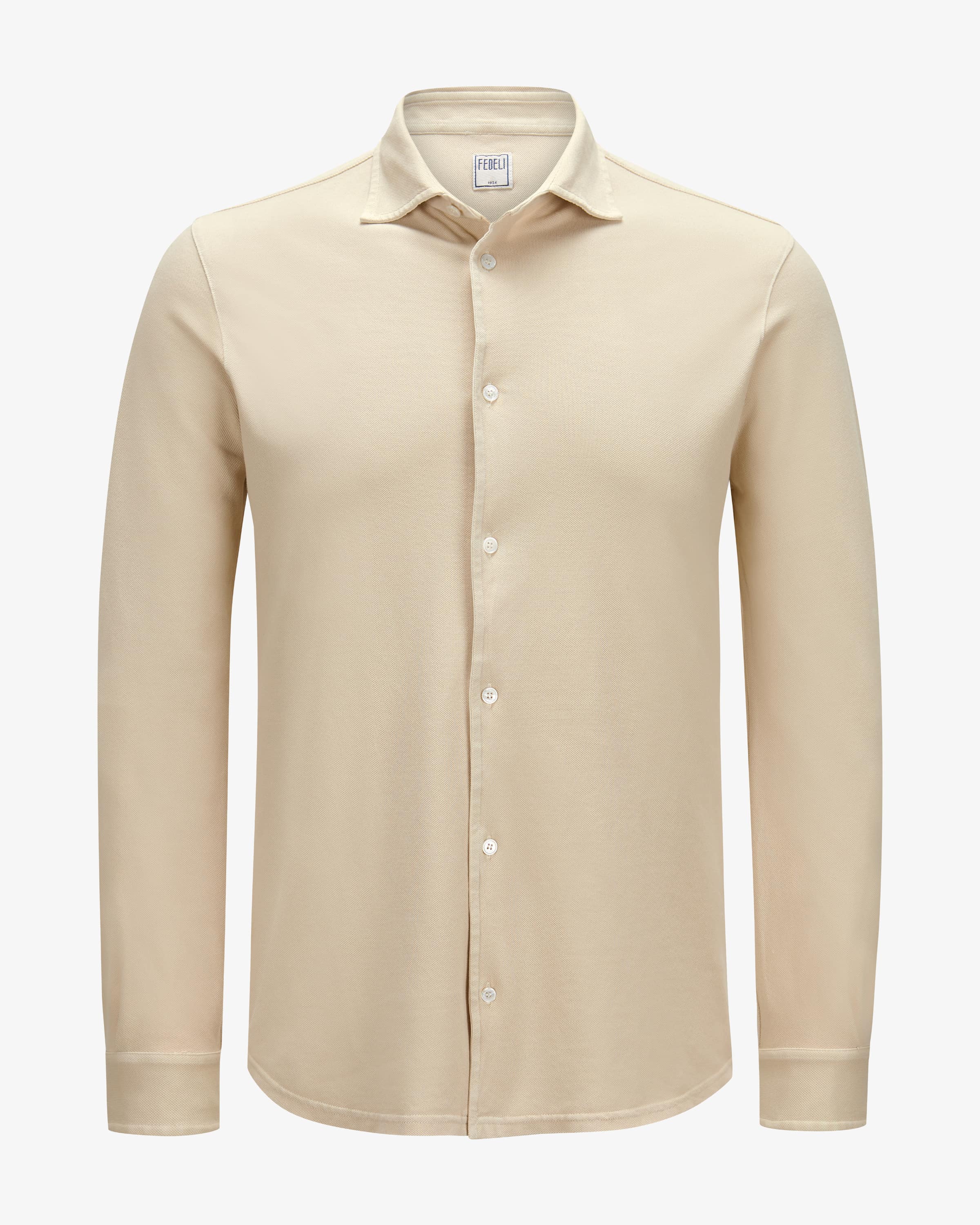 Steve ML casual shirt for men from Fedeli in cream. Timeless and casual at the same time this model features classic polo details and high-quality piqué fabric made from sustainable piqué fabric made from sustainable Giza cotton, while mother-of-pearl-colored buttons add the finishing touch.