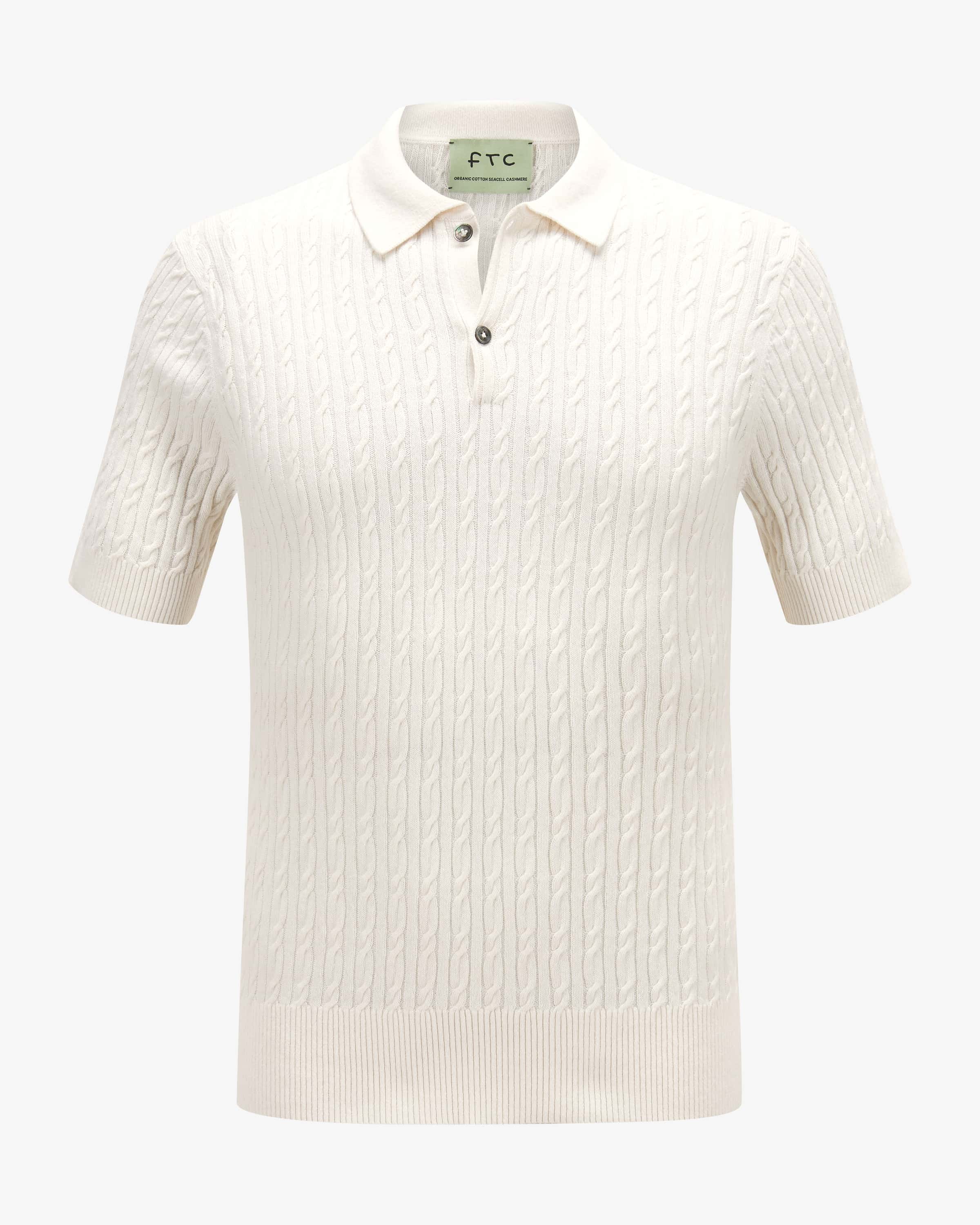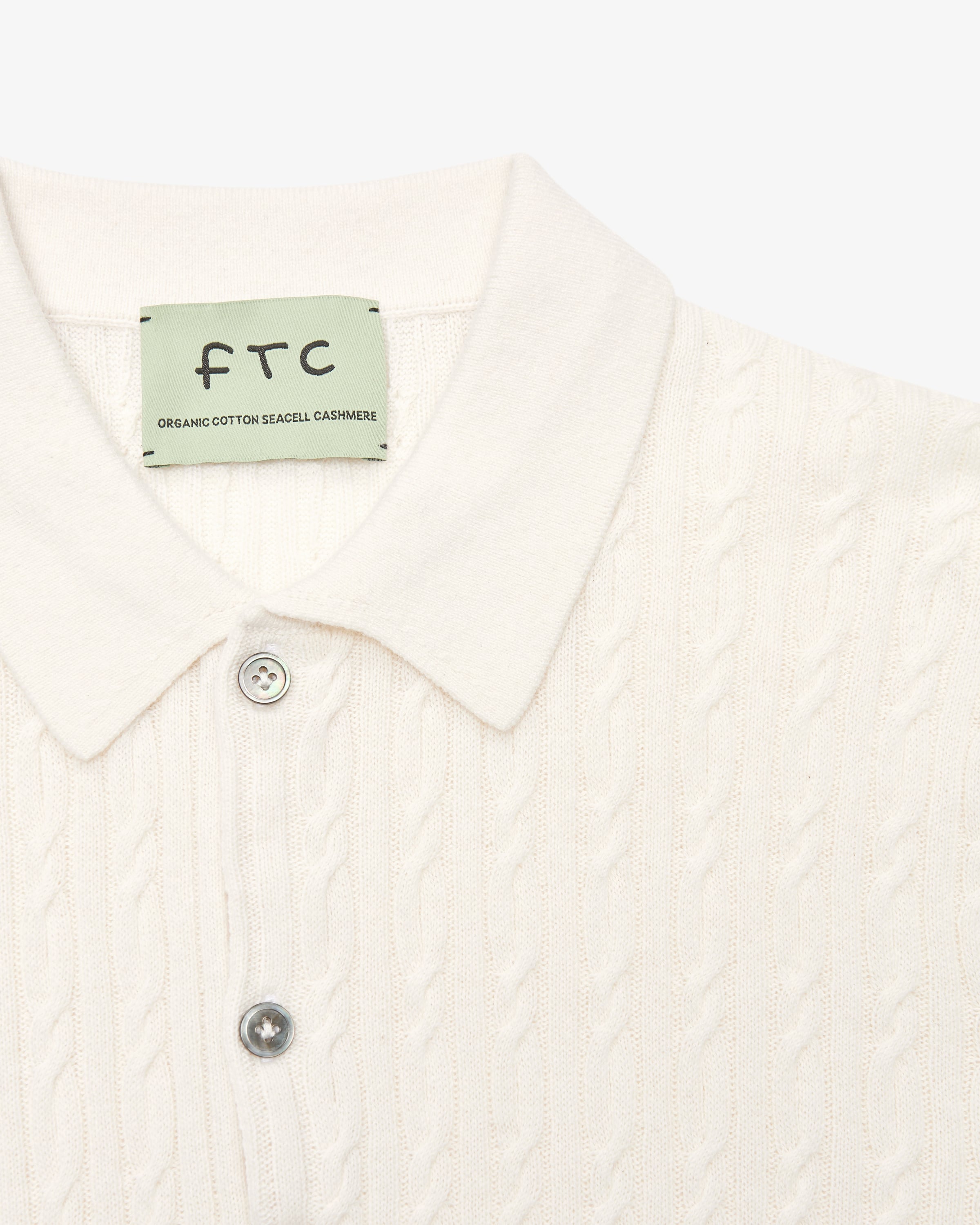 Knitted polo for men from FTC in off-white. The cable knit pattern, the soft cotton cotton blend and the polo design create a versatile everyday everyday companion with a sense of style and a particularly soft feel.