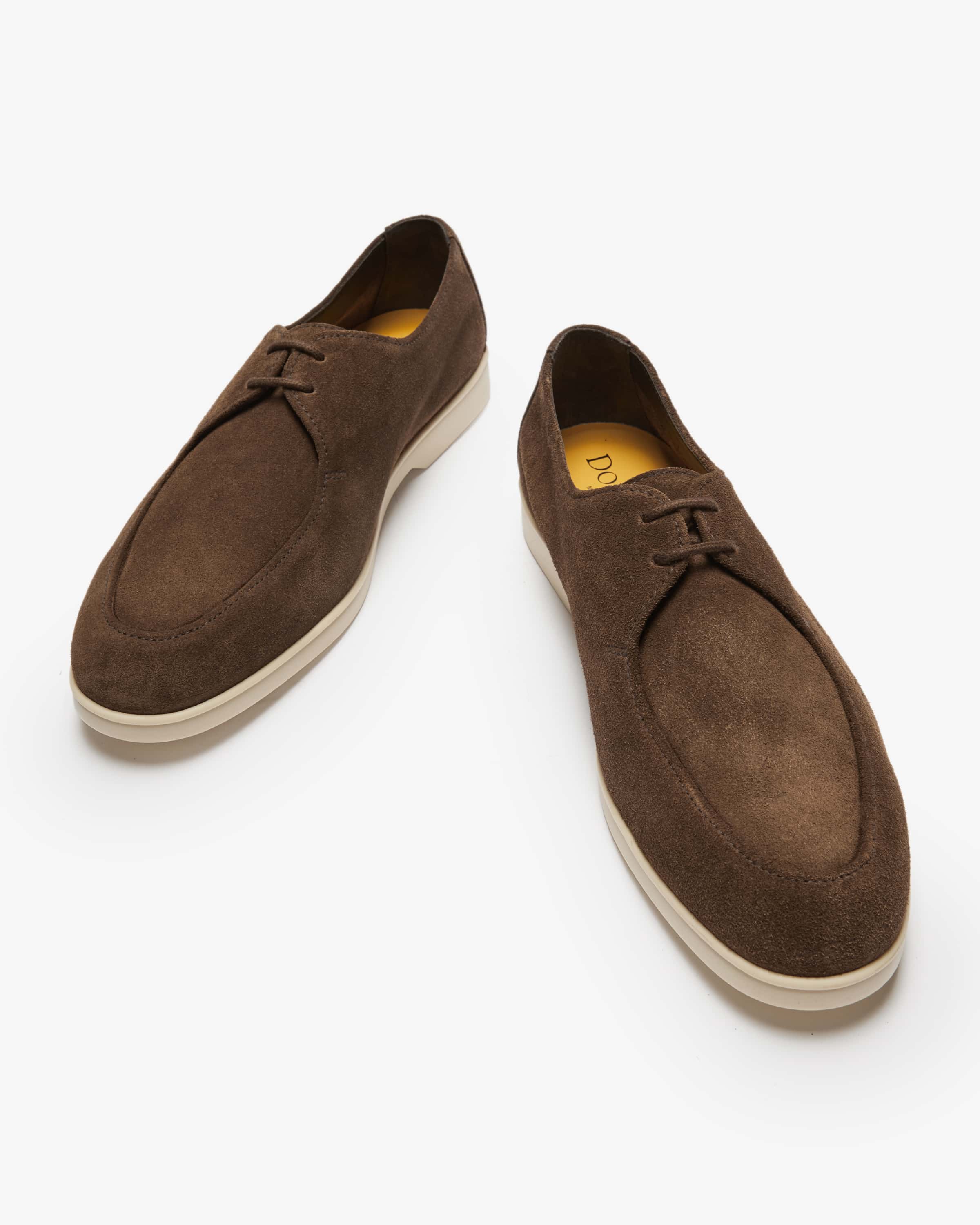 Derby shoes for men by Doucals in brown. Mario Giannini founded the shoe label in 1973 shoe label, which combines traditional Italian shoemaking with modern design. design. Thanks to the combination of soft suede and rubber soles, the suede and rubber sole, this model is a comfortable business or casual companion with style. companion with style. The timeless Derby silhouette with decorative stitching adds the the finishing touch.