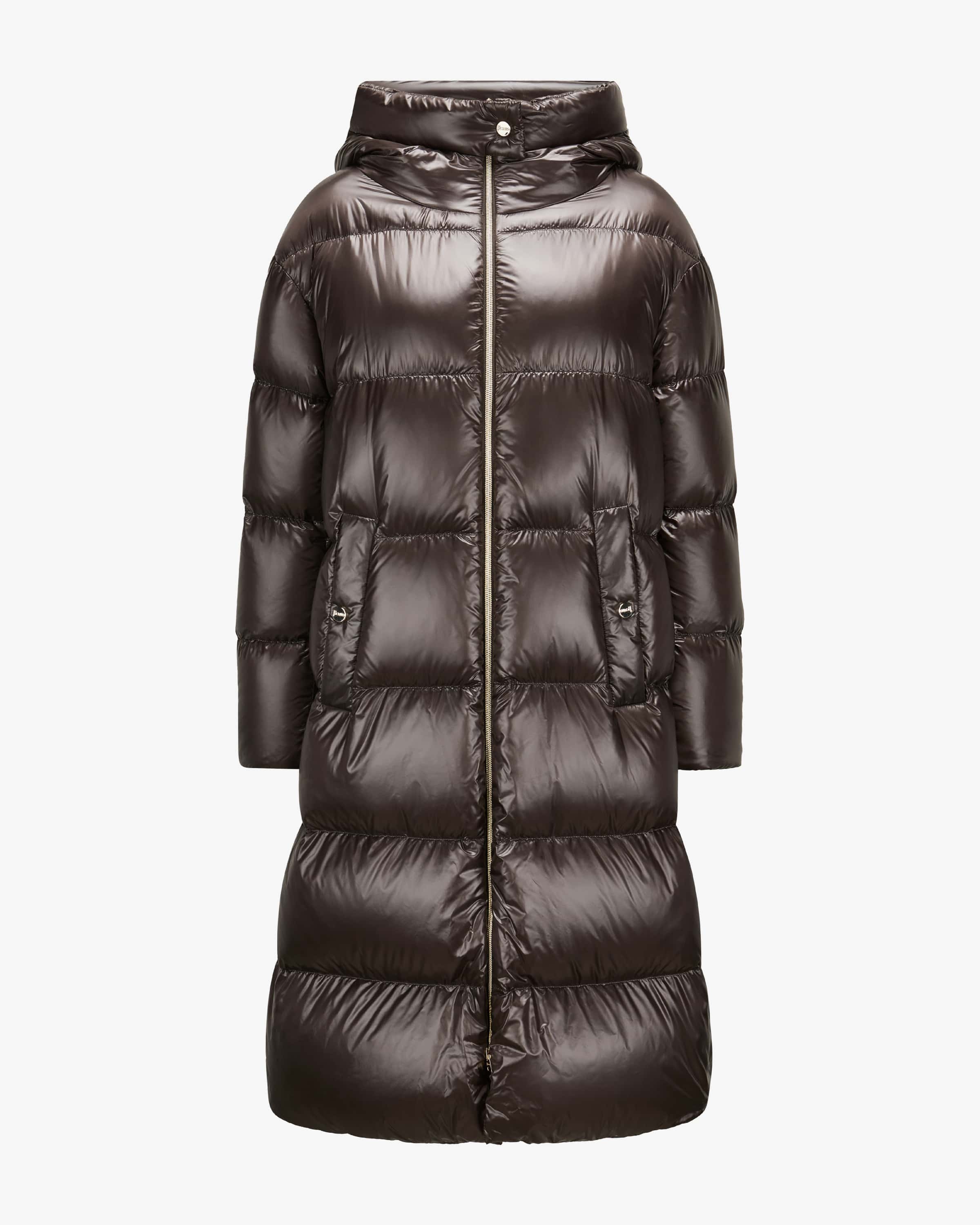 Down coat for women from Herno in Dark Chocolate. The Italian premium label label has been known for years for its particularly lightweight down jackets, which impress with their timeless, sporty designs. This elongated model also impresses with an iridescent quilted look and high-quality down and feather filling that ensures pleasantly warm wearing moments.