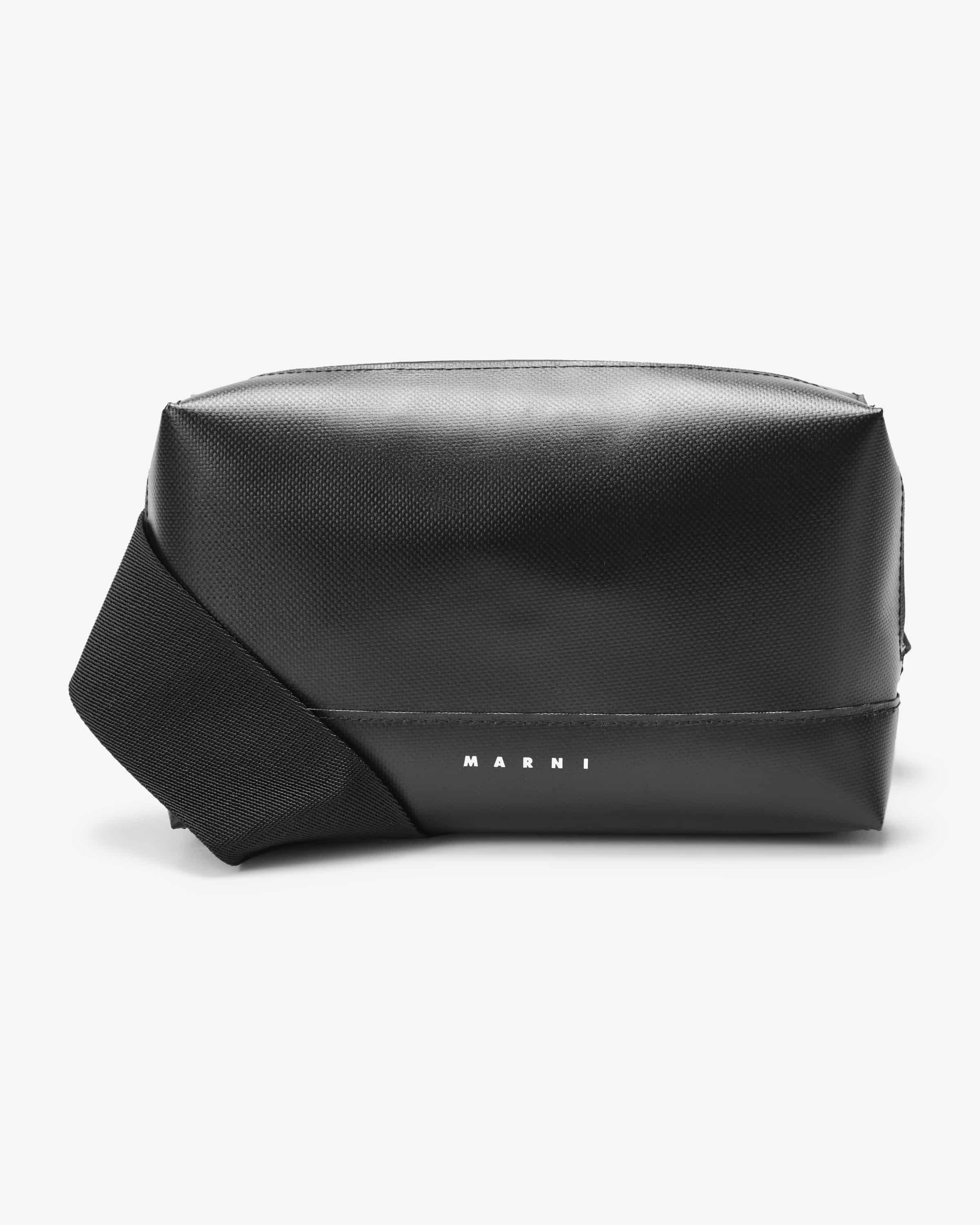 Fanny pack for men from Marni in black. A Milanese fashion house with maximalist approach - with color, print & experimentation as a stylistic device. The model impresses thanks to its casual design as a versatile companion for everyday everyday life and outings, while the adjustable strap and contrasting logo lettering logo lettering add that certain something.