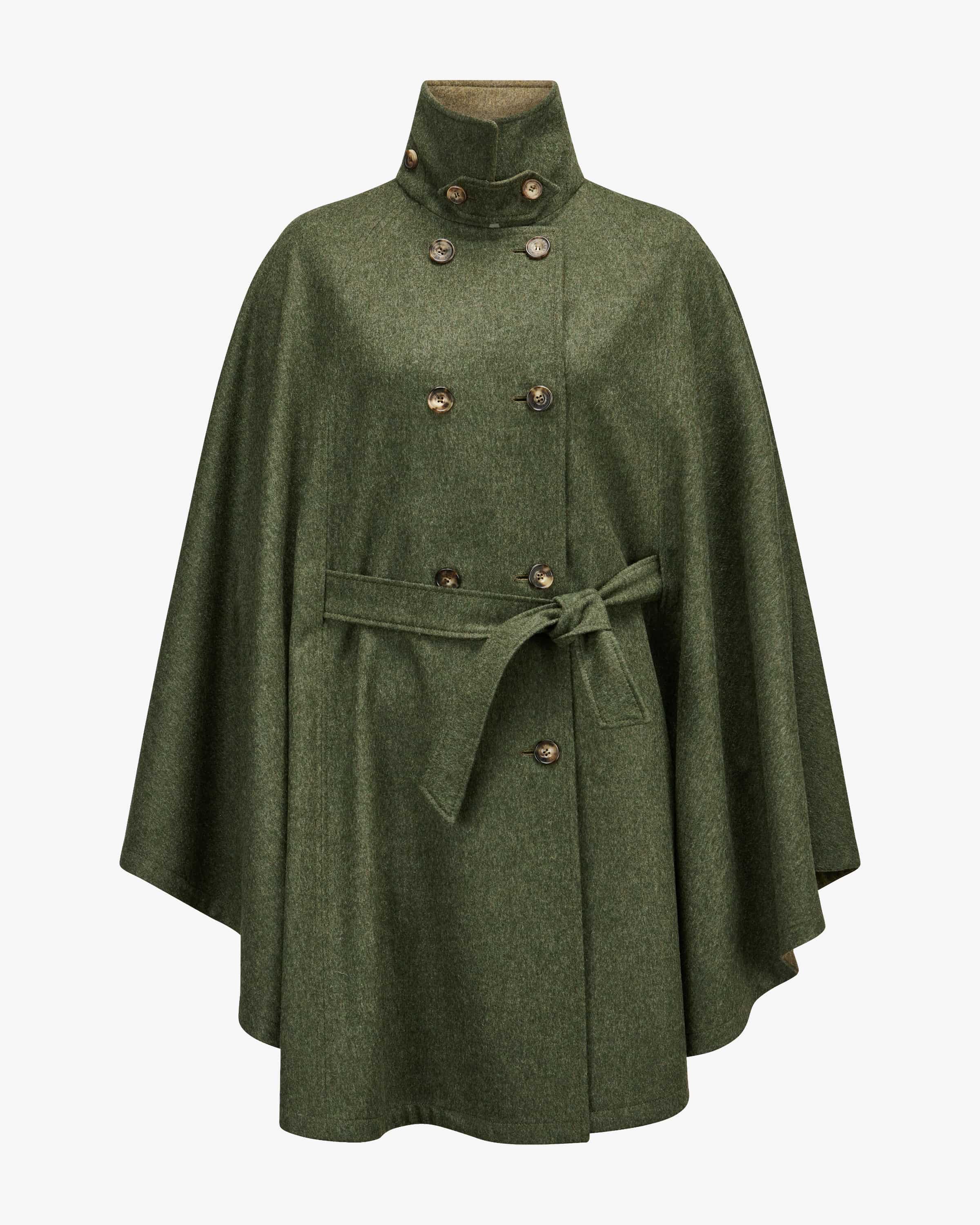 Franziska wool cape for women from Habsburg in moss green. The model presents itself in a simple design thanks to discreet details, making it the perfect companion for traditional for traditional costume looks, while the high-quality virgin wool fabric ensures pleasant wearing moments.