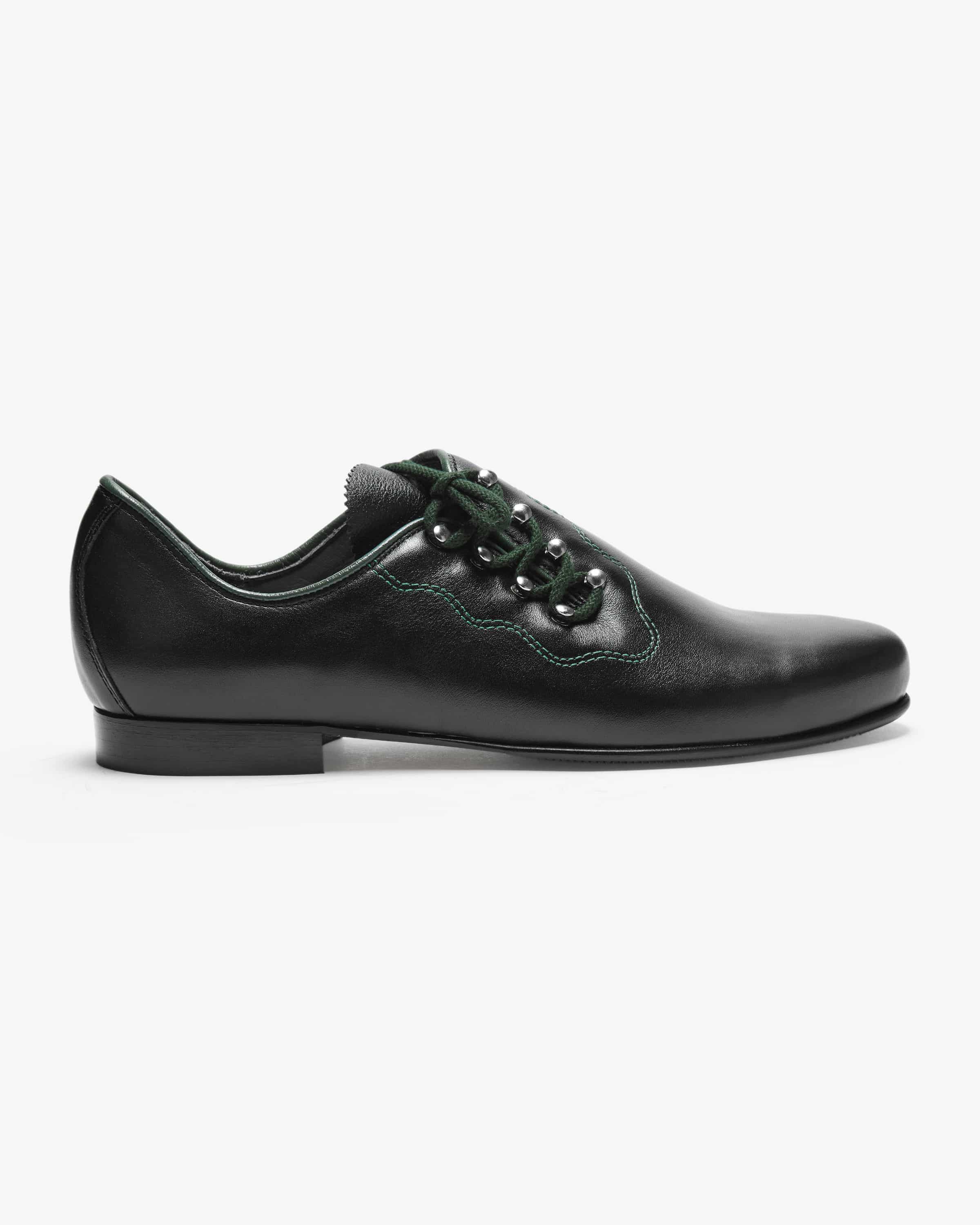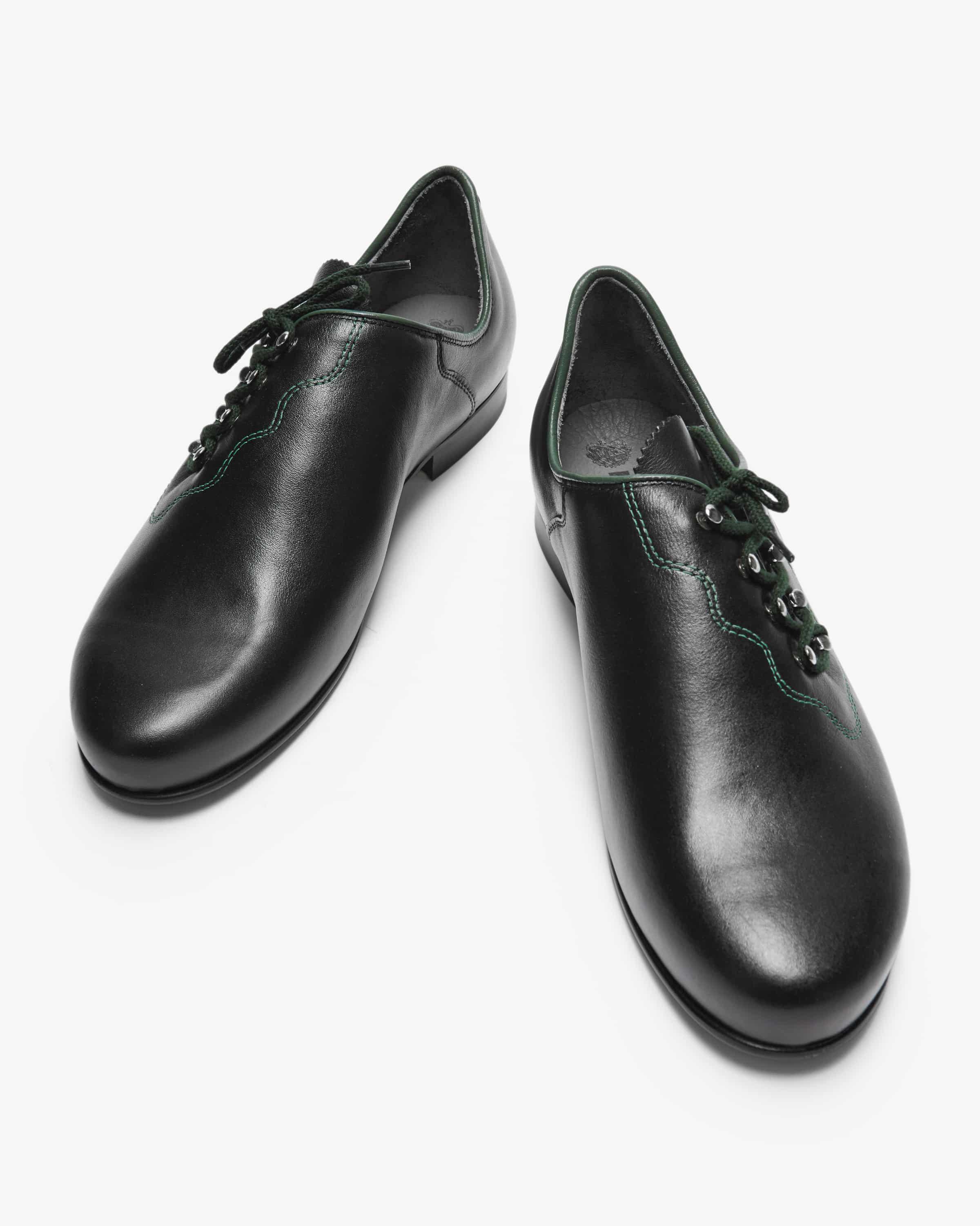 Haferl shoes Gaufest for men from Meindl in black. The traditional The traditional design of the shoes made from fine Boxcalf smooth leather is elegantly with dark green shoe laces and the piping elegantly enhances the upgraded. The inside also offers a high level of comfort thanks to the anatomically shaped leather insole. sole offers a high level of comfort.