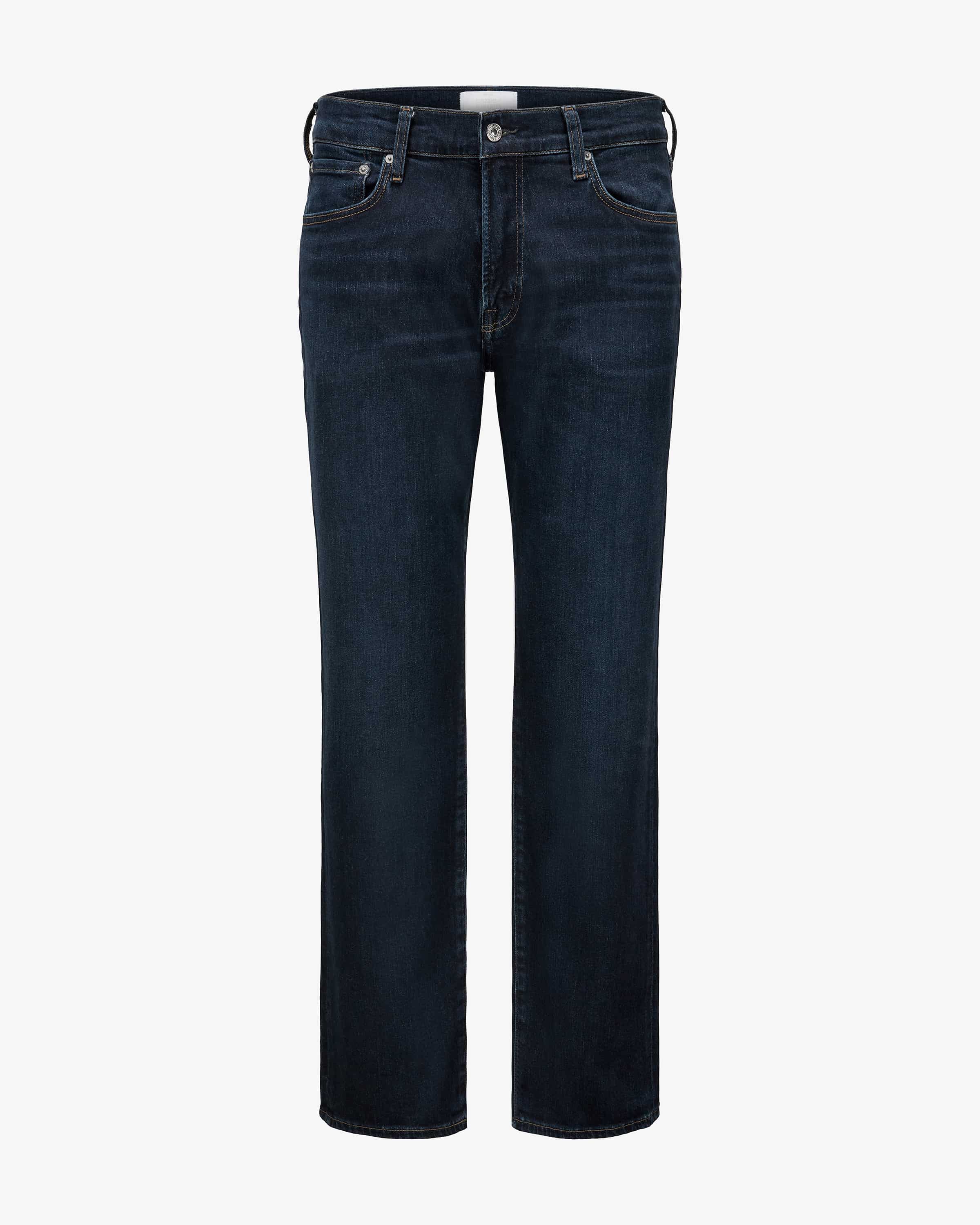Elijah Classic Straight jeans for men from Citizens of Humanity in dark blue. This model from the label founded in Los Angeles has a modern character thanks to the dark rinsed rinsed wash with a modern character, while the cashmere content ensures a soft feel. soft feel - a classic jeans companion for every day.