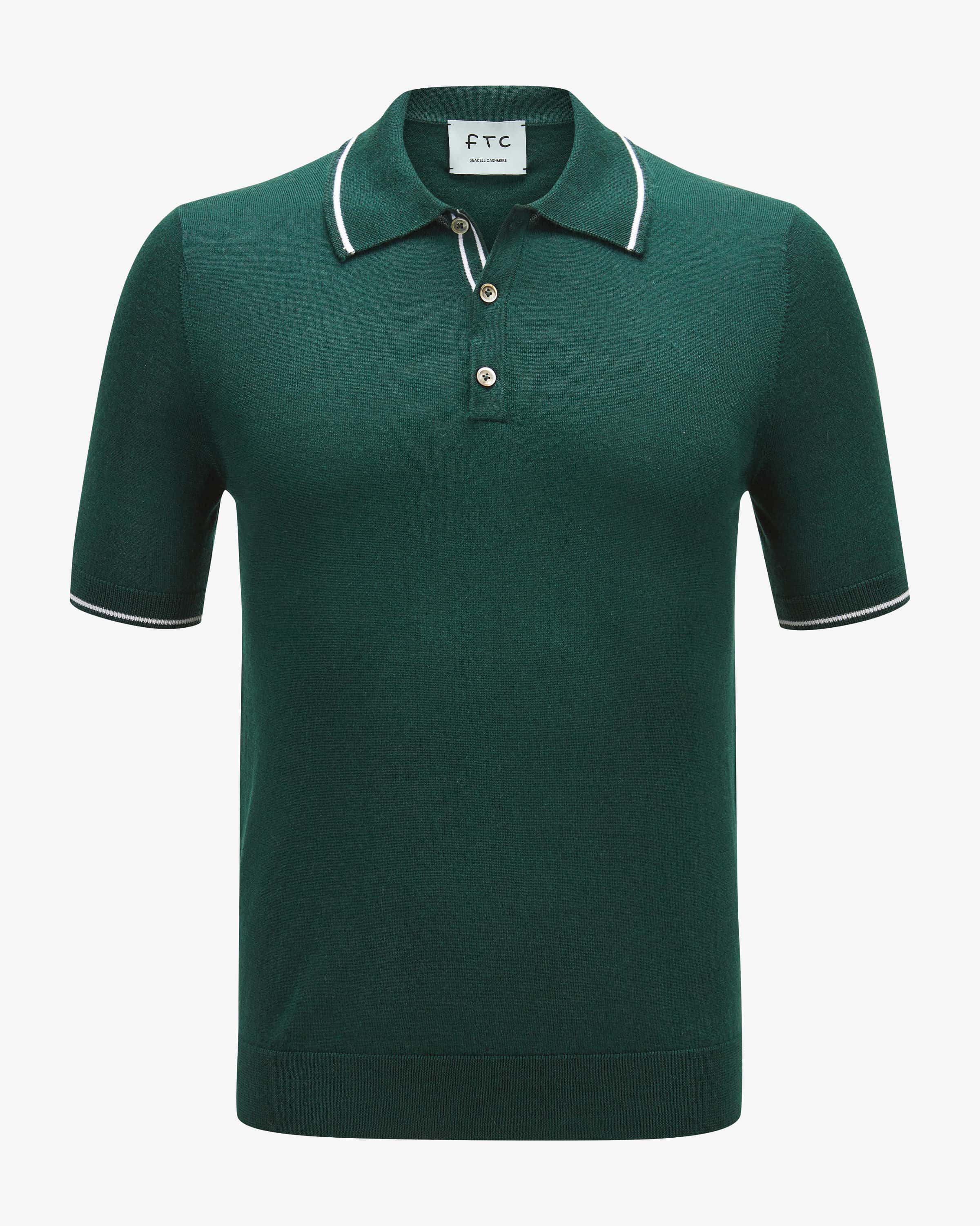 Knitted polo for men from FTC in dark green. The fine knit pattern and simple the simple design create a versatile everyday companion with a sense of style for style, while the high-quality cashmere blend promises a pleasant feel.