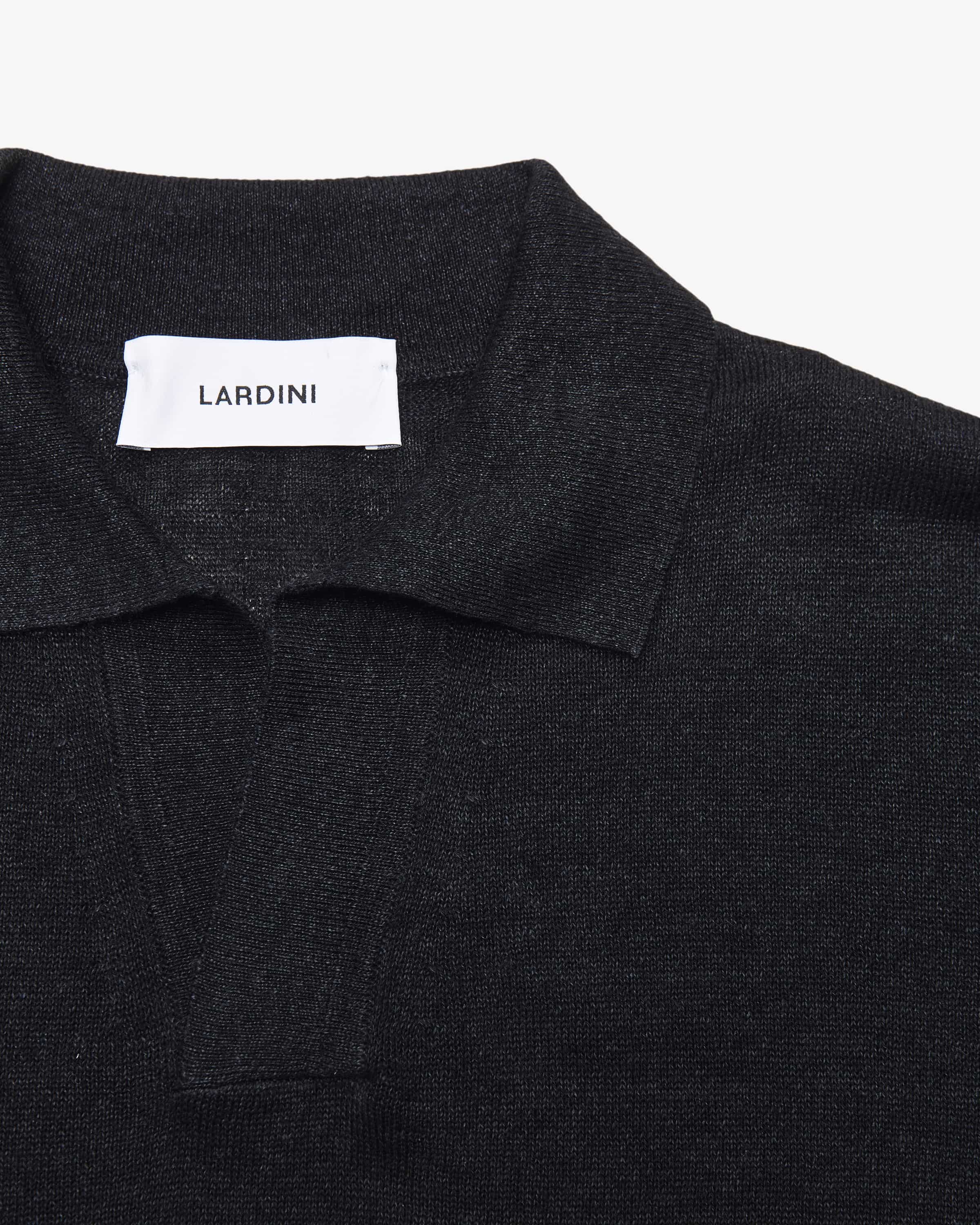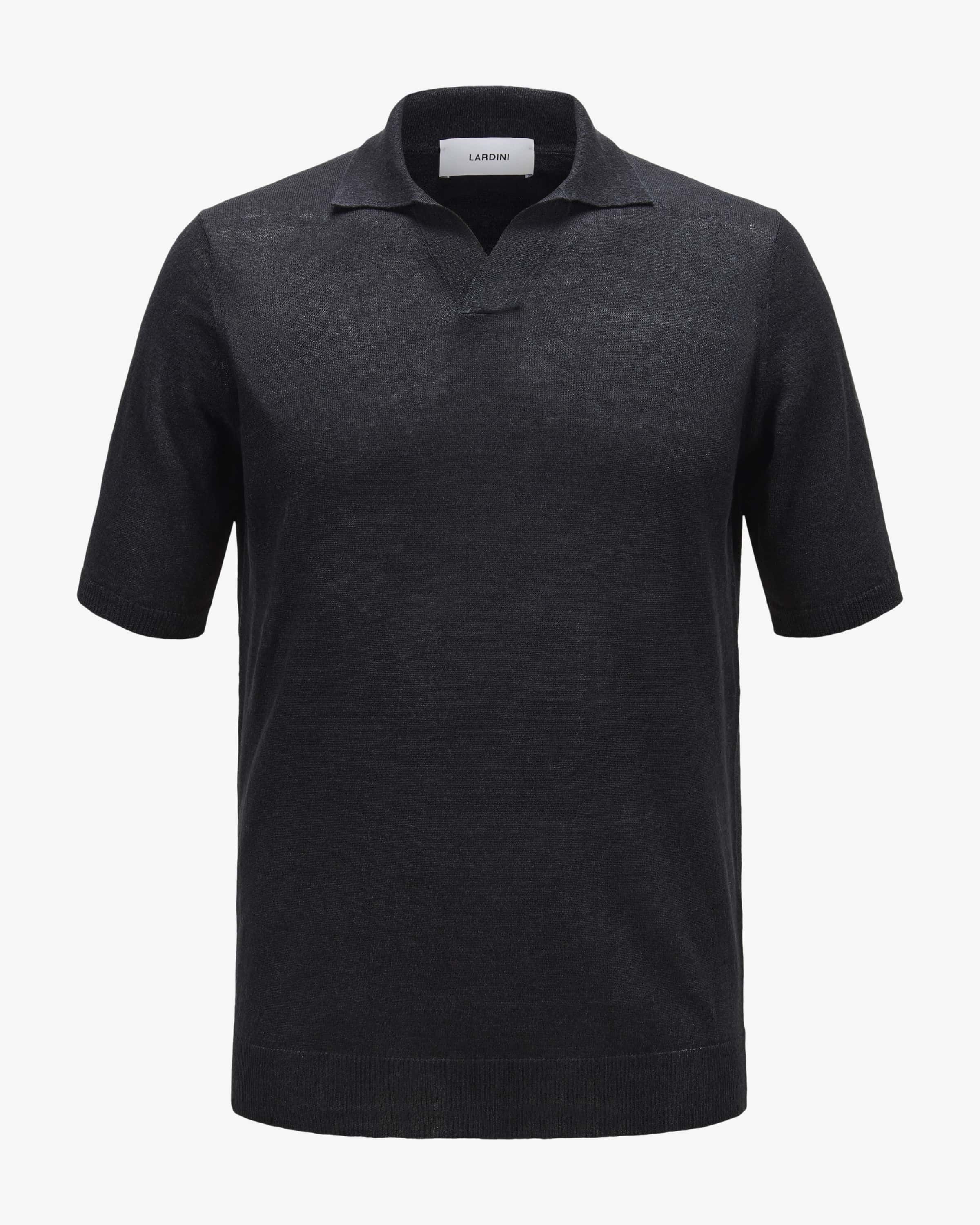 Knitted polo for men from Lardini in black. The fine knit pattern and the simple simple design create a versatile everyday companion with a sense of style, while the style, while the high-quality linen-cotton blend promises a pleasant feel and breathability. and breathability.