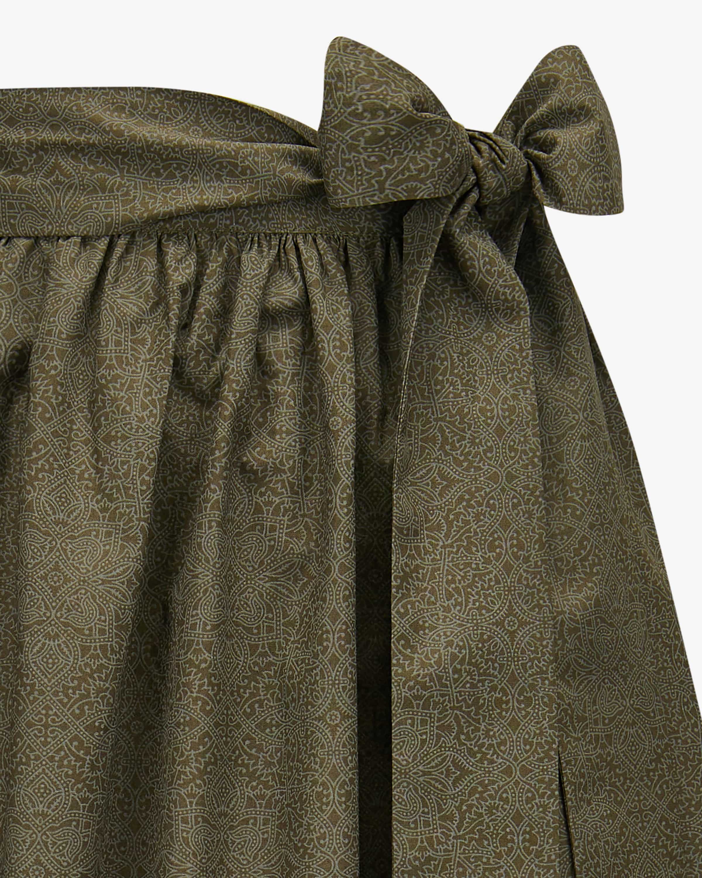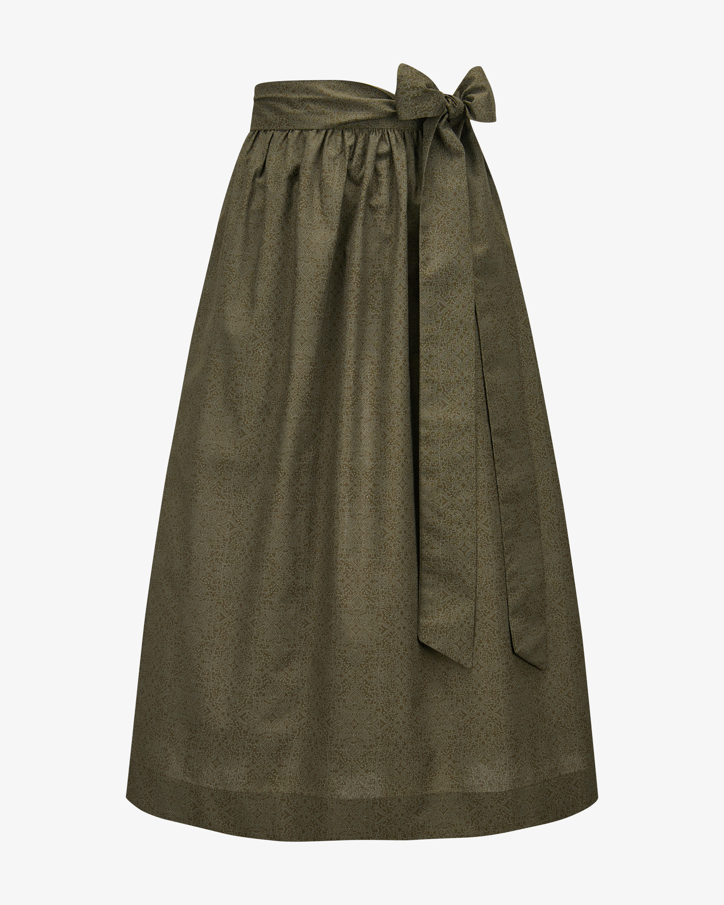 Long dirndl apron for women from LODENFREY in olive. The model presents itself with cotton quality and a fine ornamental pattern - a feminine feminine companion for versatile traditional looks.