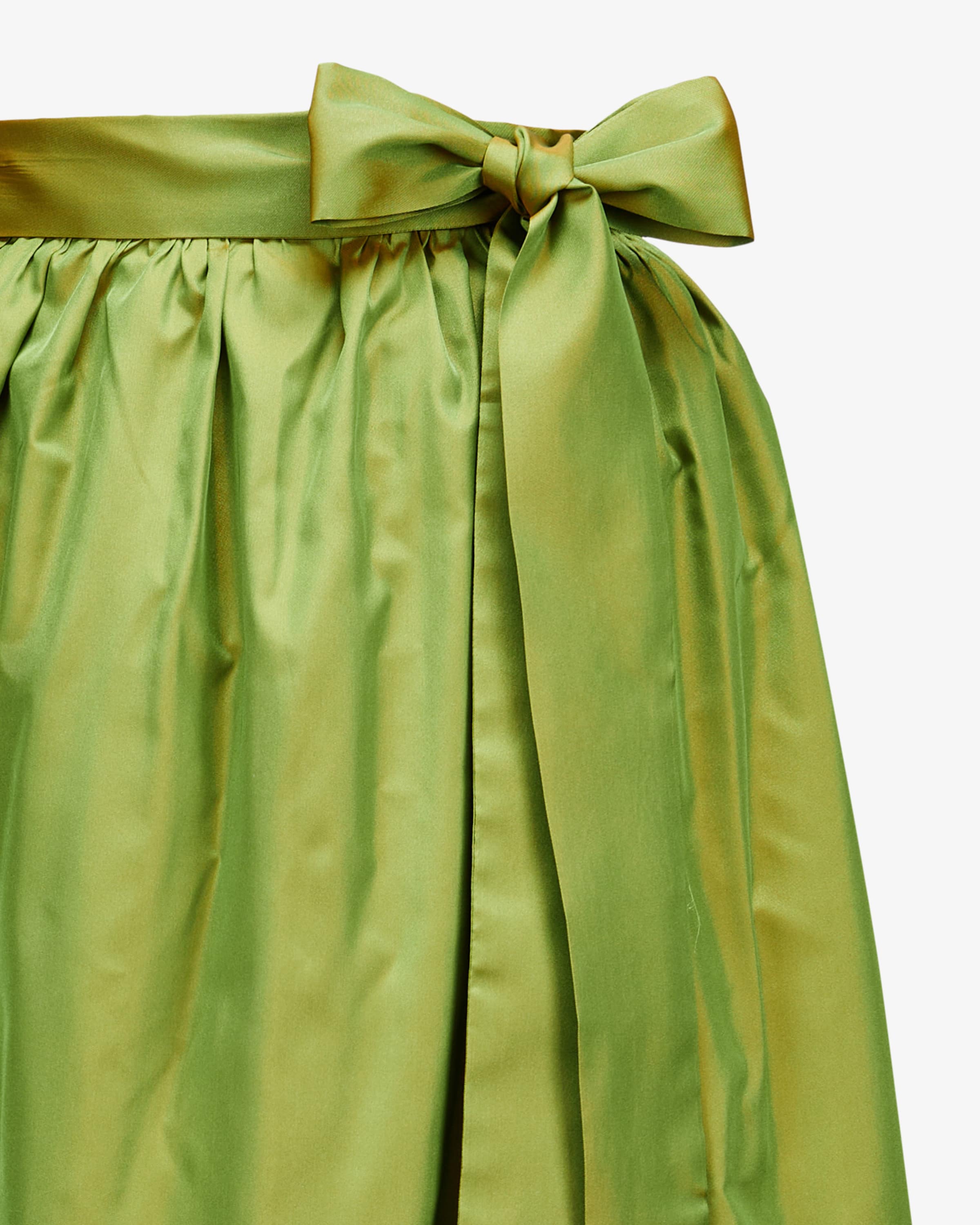 Long dirndl apron for women from LODENFREY in sage. The model presents itself with with a subtly iridescent silk blend that guarantees an elegant guaranteed. Classic traditional details harmoniously round off this lightweight model.